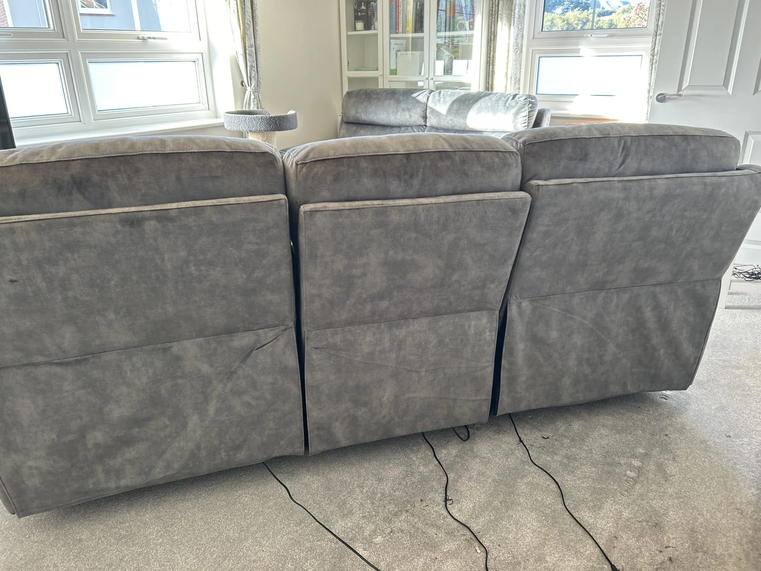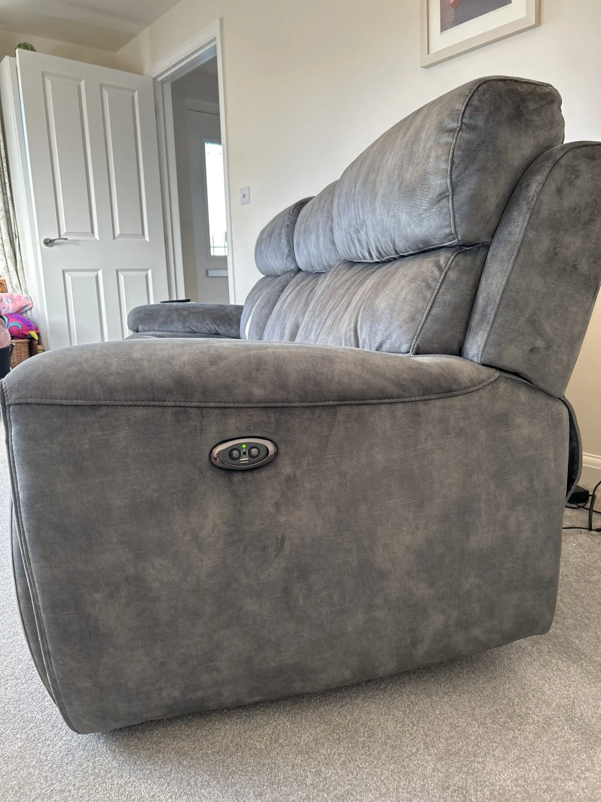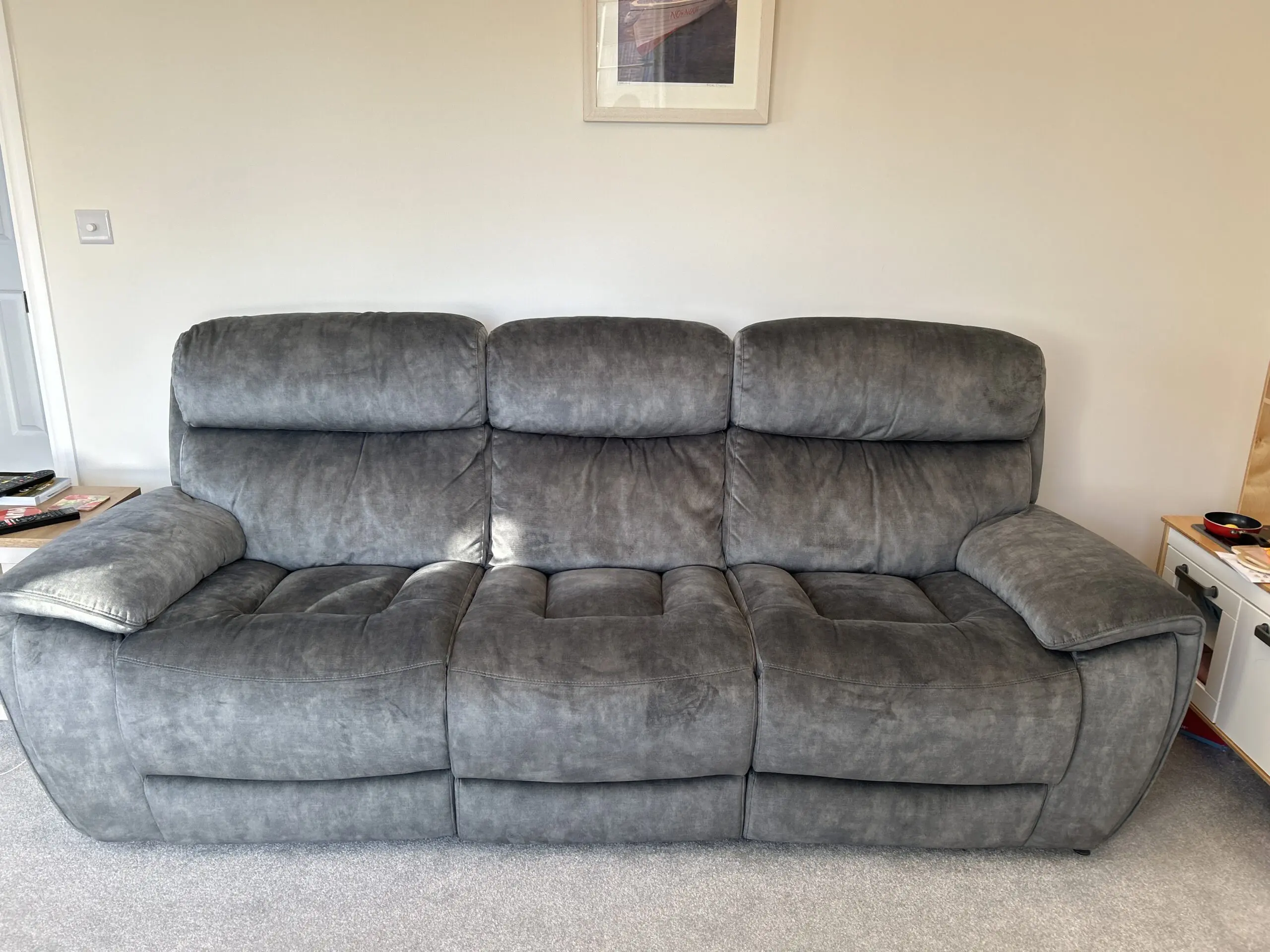 Sofology Radleigh velvet grey 3 seater sofa with 3 electric reclining chairs