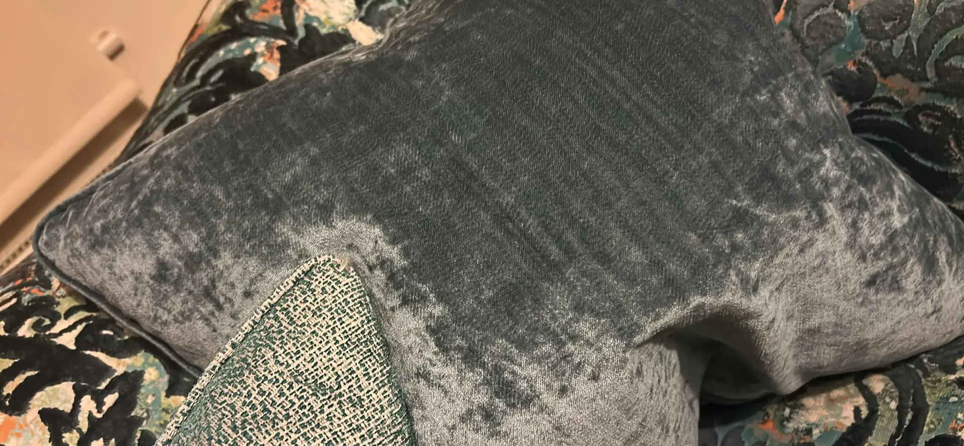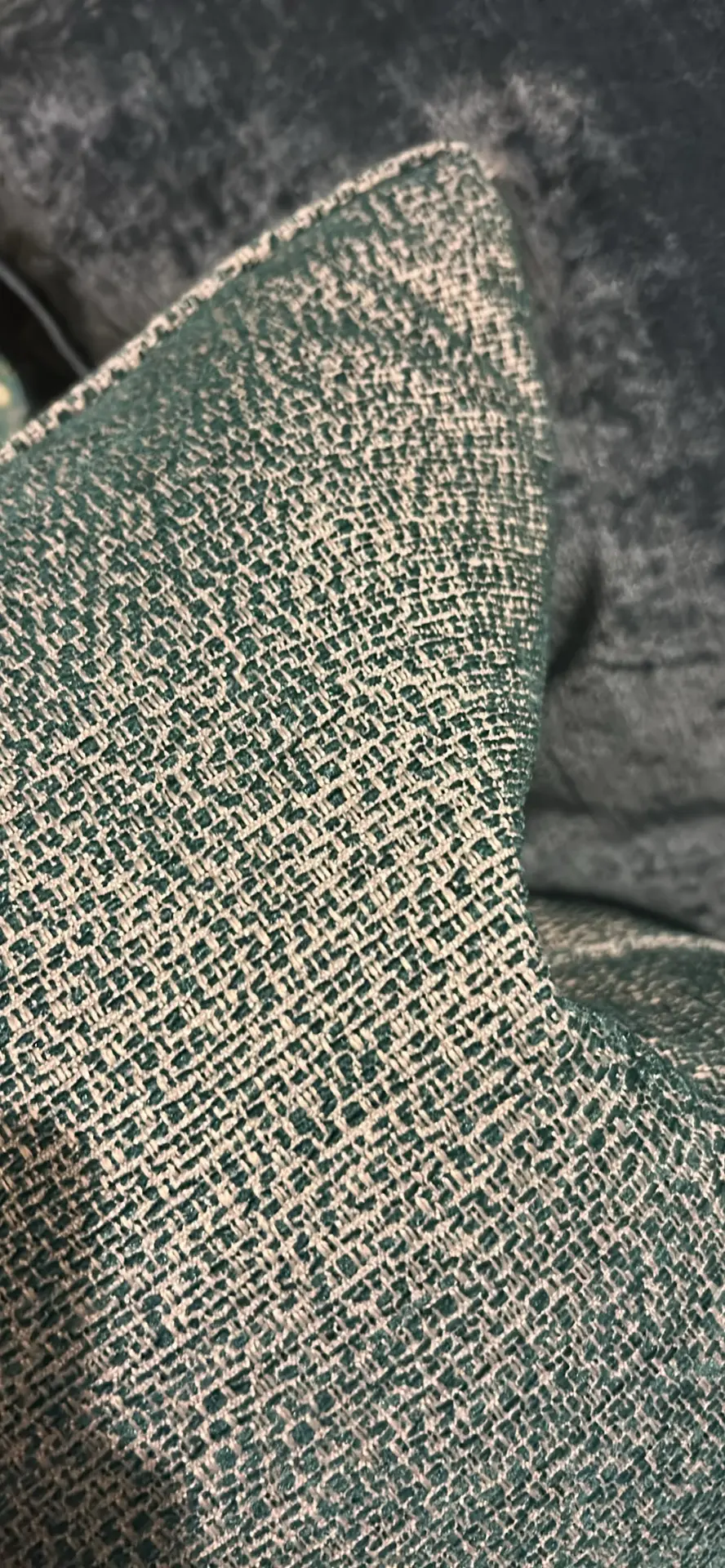 Beautifully crafted by Sofology with textured, velour overlay detailing. From a pet free and smoke free home. Only selling due to downsizing. All cushions included – down filling. Very deep for getting cosy on; comfort and luxury in one. Care kit included.