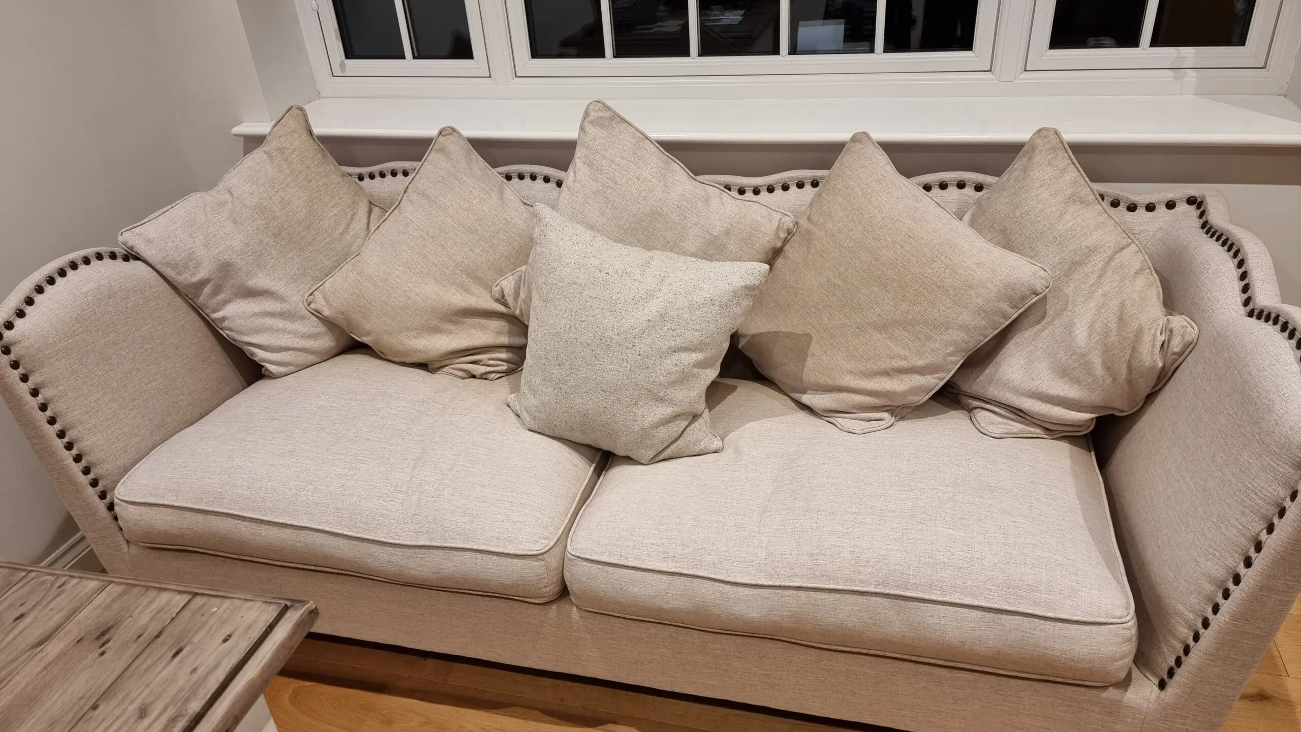The sofa remains very comfortable with supportive cushions and a solid, well-built frame. Structurally excellent with no sagging, tears, or damage, and plenty of life left.
