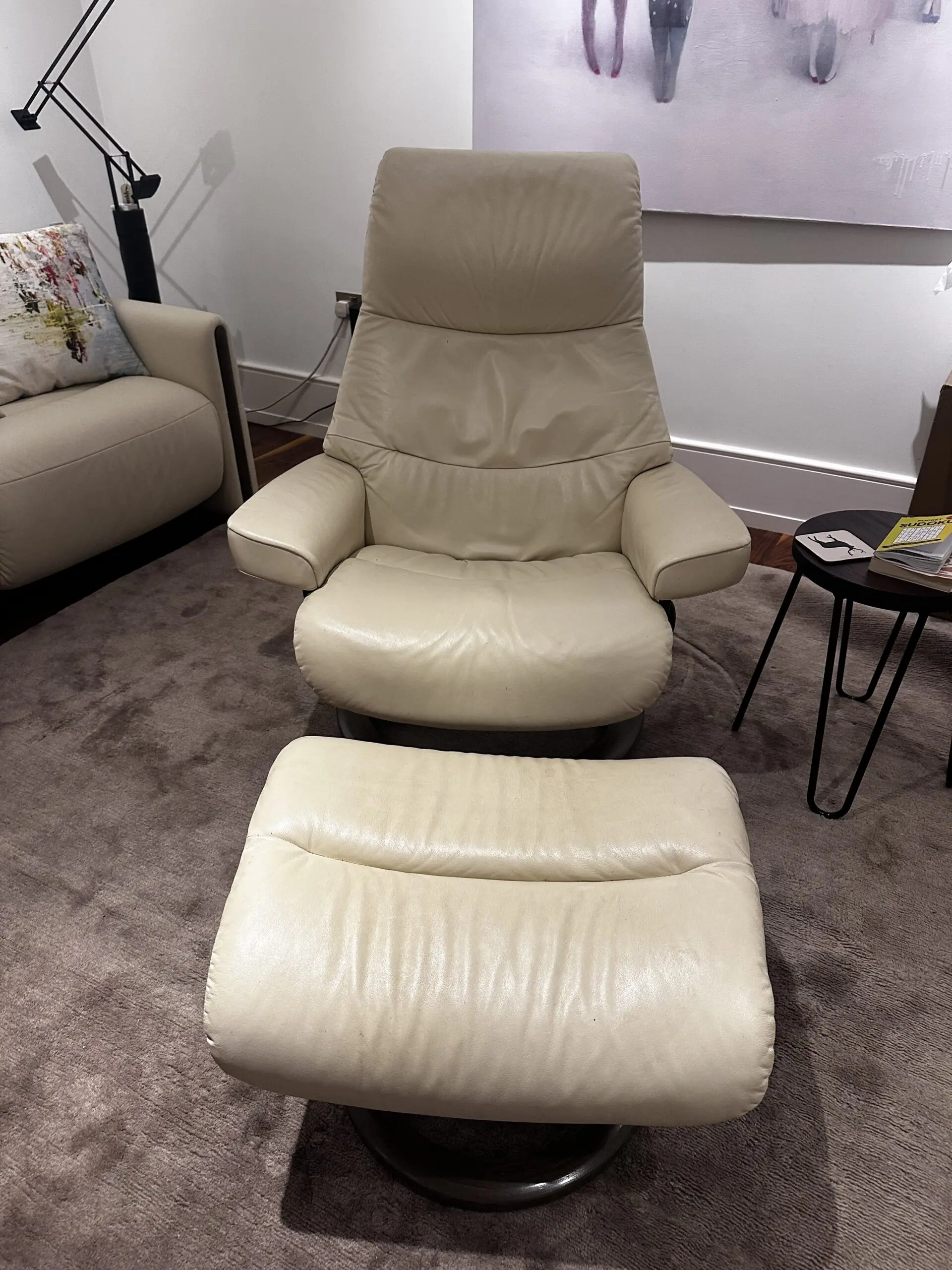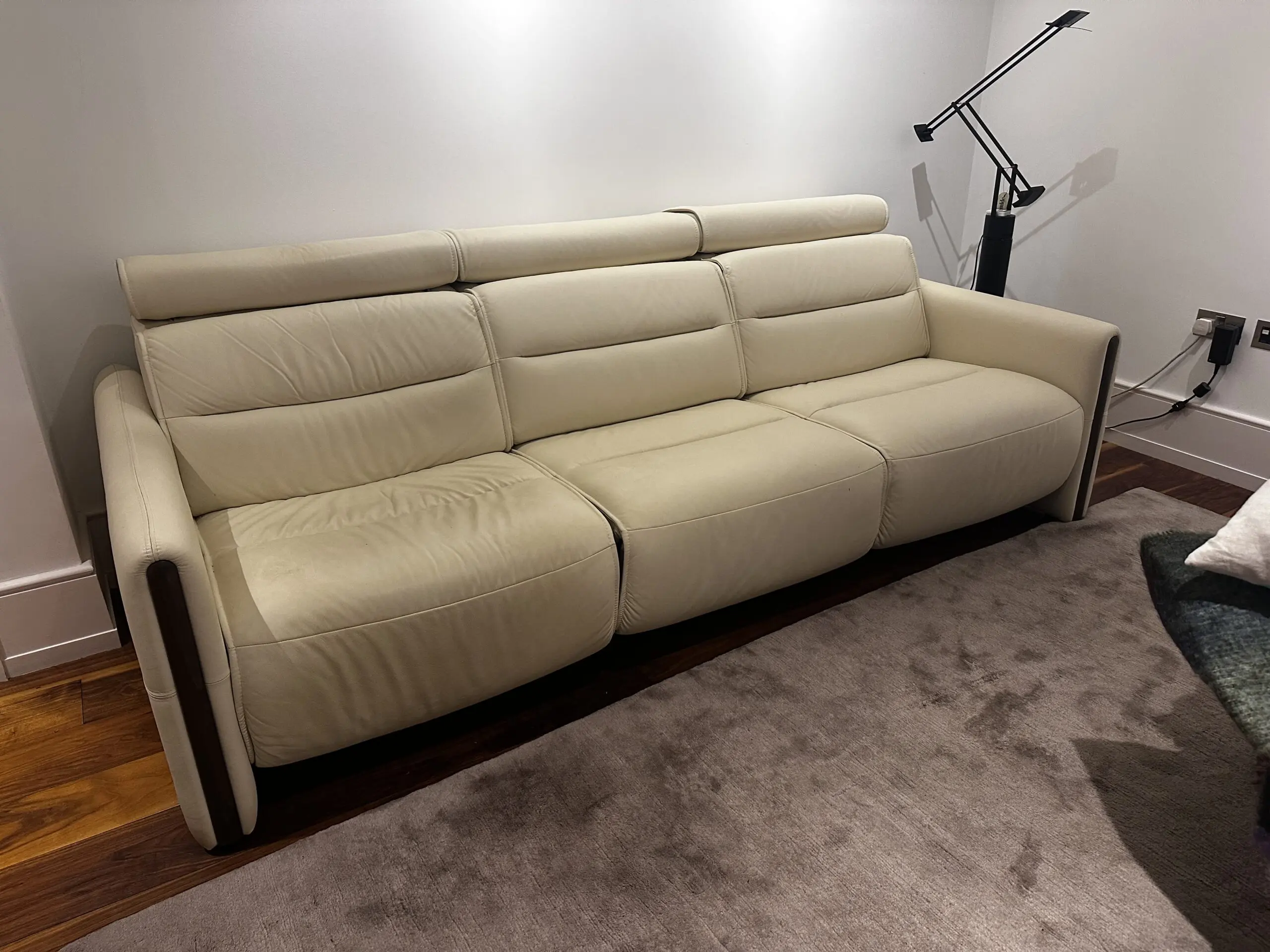 Stressless motorised reclining sofa with motorised built in foot rest + Stressless armchair and footstall