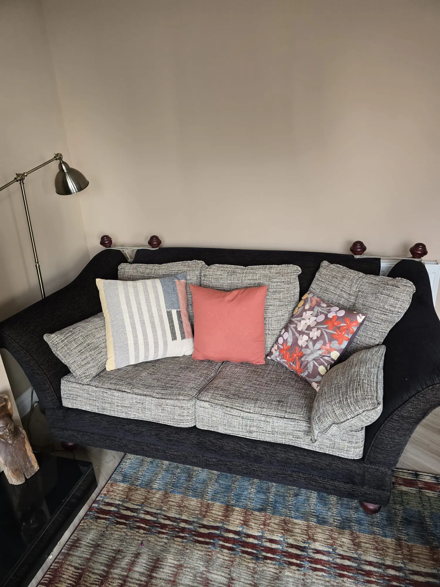 Two knowle sofas with drop down arms. Seats three comfortably. Good condition. Cost c £1500 new