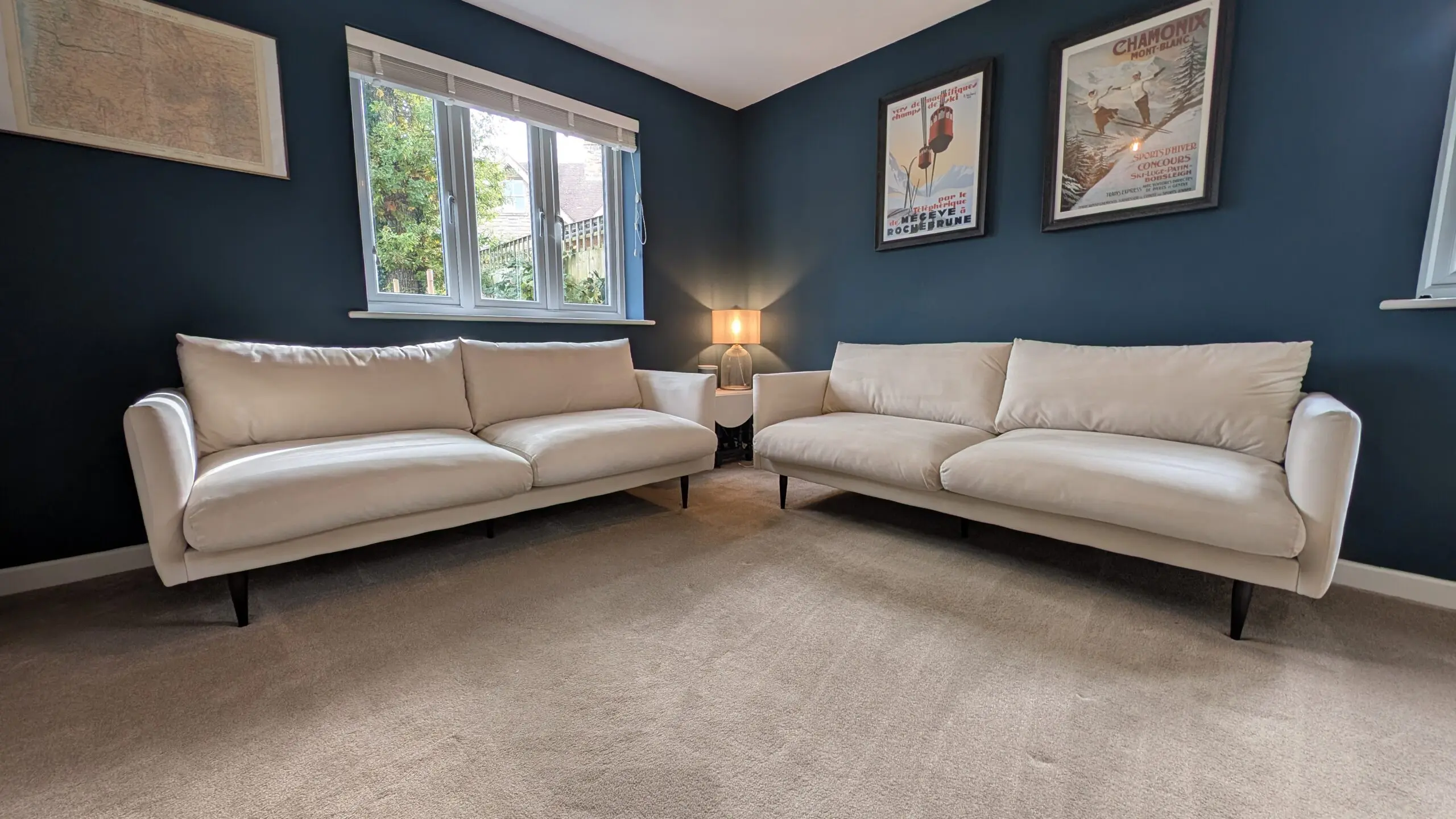 We’re reconfiguring our living room and switching to a corner sofa. This is one of two matching sofas we are selling — please see our other listing if you’re interested in buying both. This is the right hand sofa from the pair.