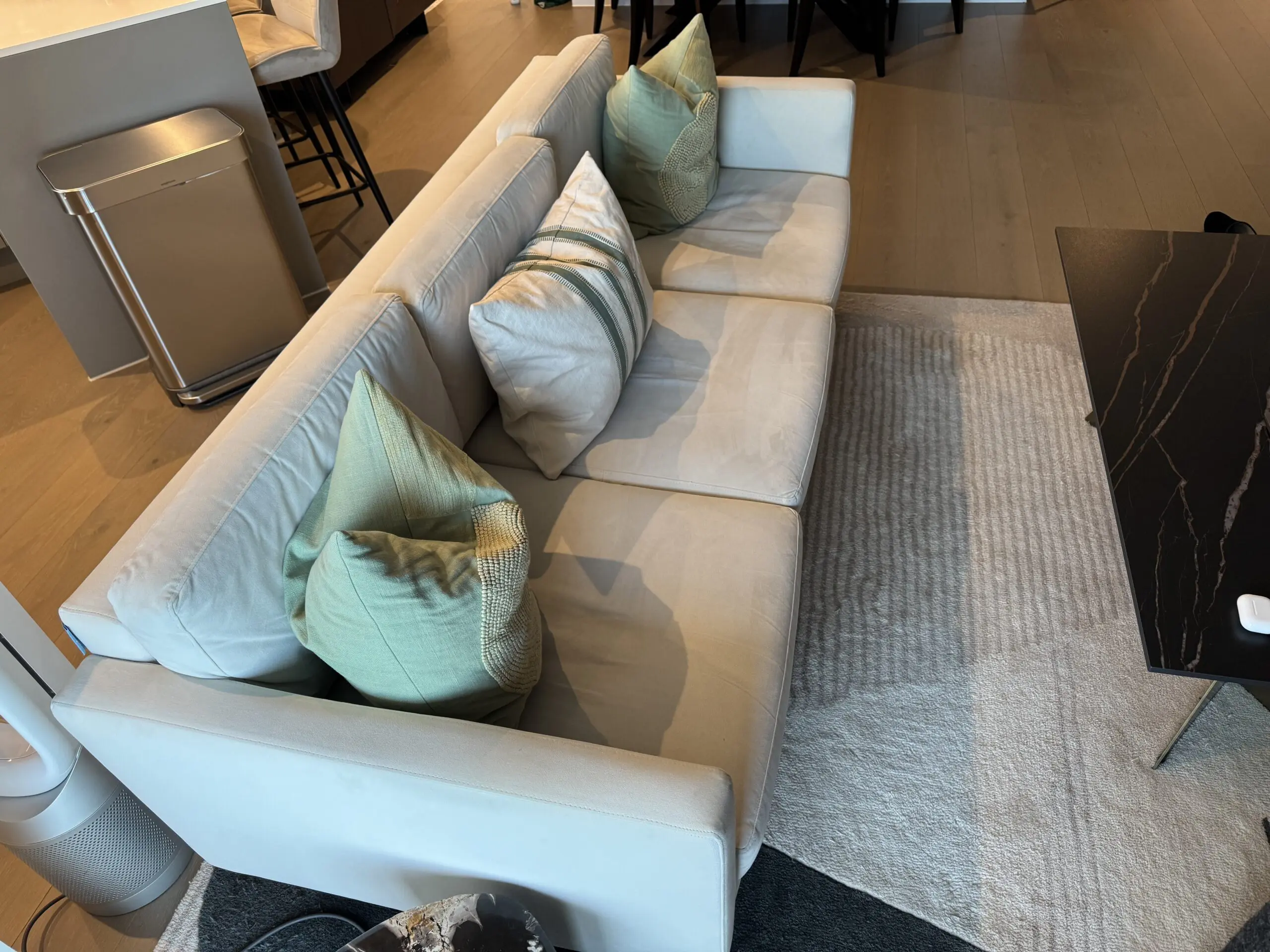 This is a very good quality 3-seater sofa in velvet fabric. It is in really good condition, kept in a home that has taken great care of it and selling it only because of an upgrade. The sofa comes together in a very easy tool-free assembly and is extremely sturdy. Included with the sofa will be the Guardsman Protection certificate which is valid until February 2028 and it covers food or drink spills and accidental damage plus tears, burns, rips, etc.