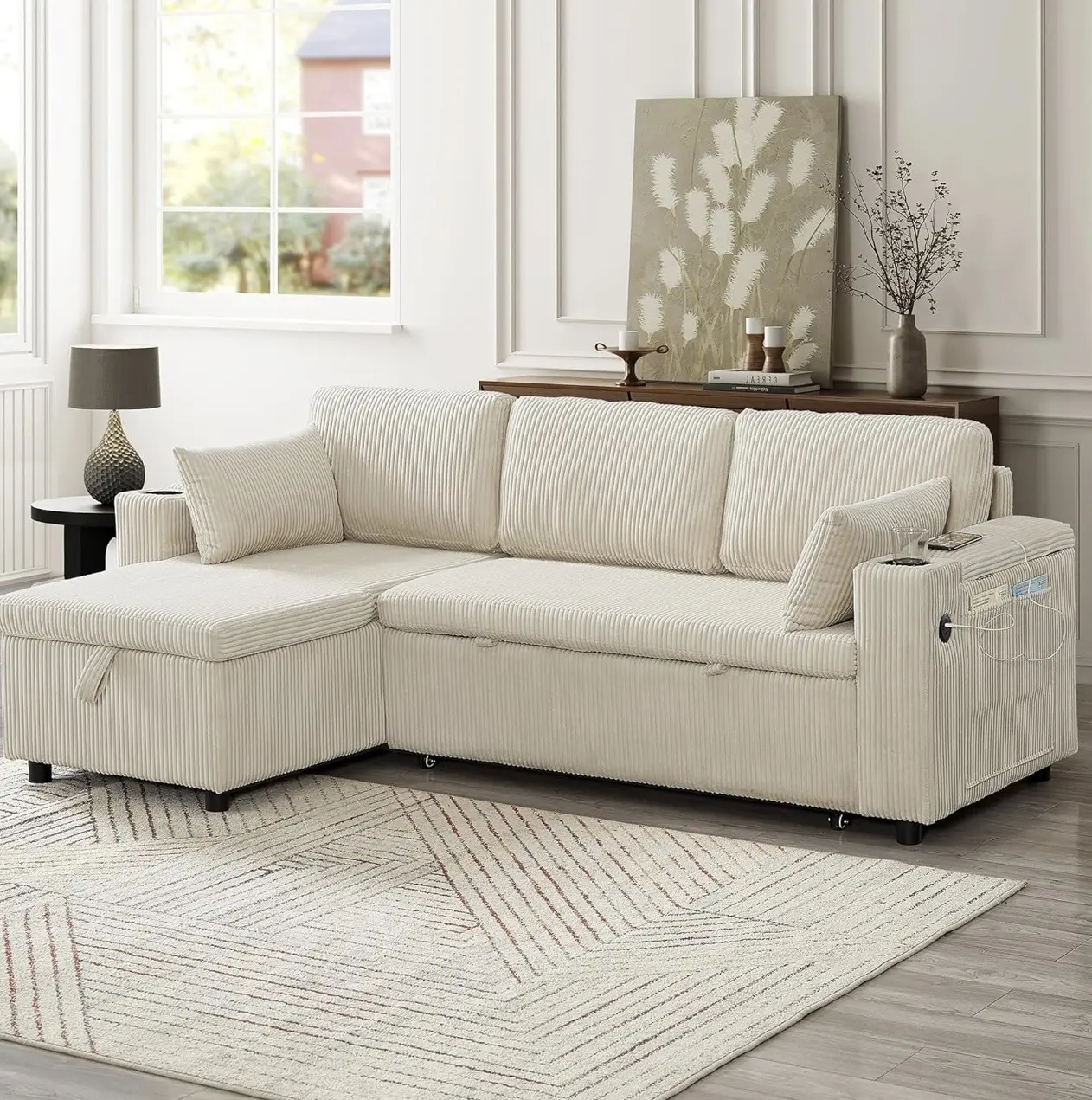 • Removable cushion covers for easy cleaning Perfect for: Families needing flexible seating that doubles as guest accommodation, small spaces requiring multi-functional furniture, or anyone wanting a comfortable sofa with am torage solutions.