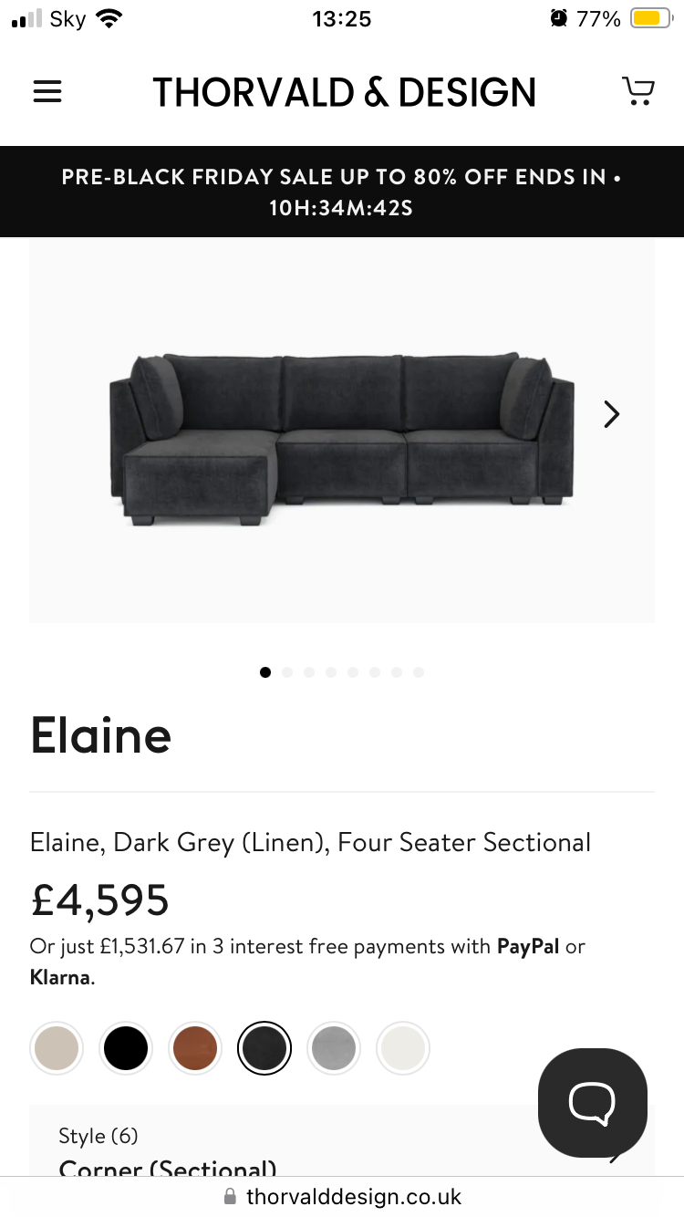 We purchased from Thorvald Design a week ago and the colour looks a lot darker in the website images, it doesn’t go with the rest of the living room, the back is too low for us and they won’t issue a full refund and we have to pay for shipping costs.