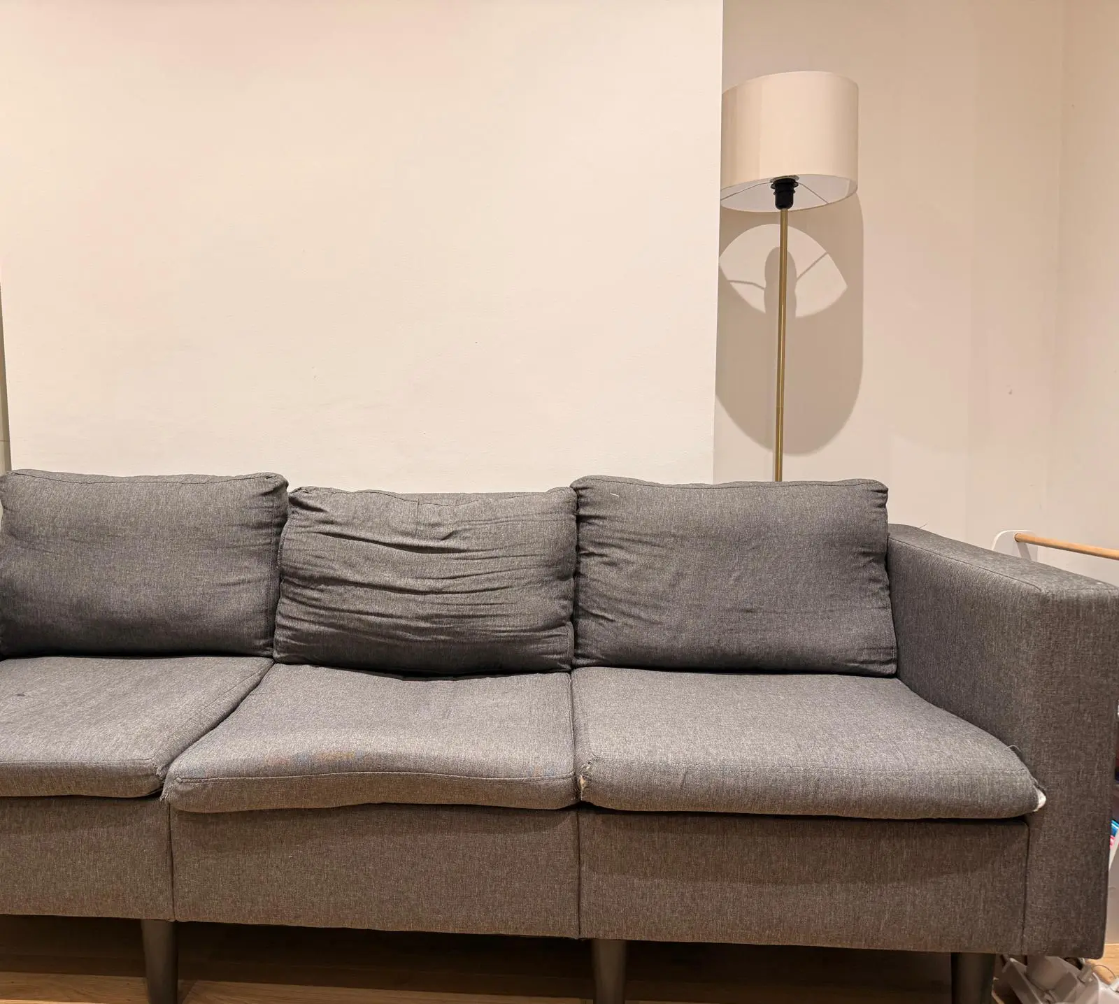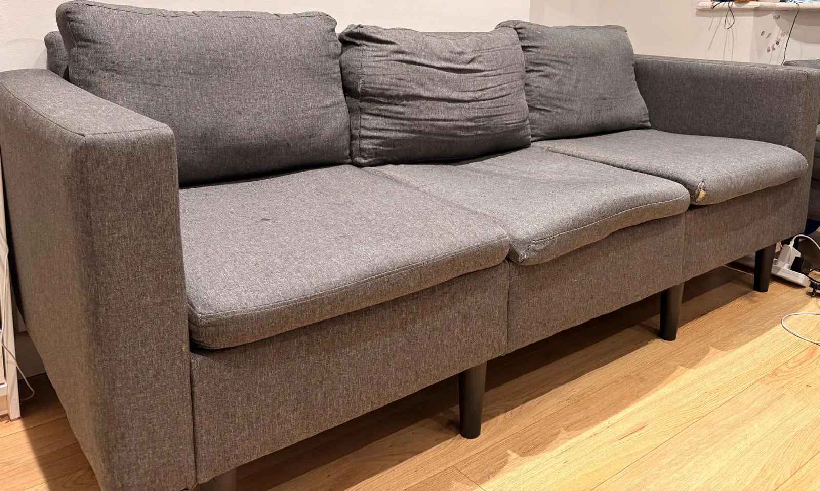 FREE Three Seater Sofa with fully strong structure. Sofa Cushions needs replacement or cover.