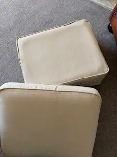 Both sofas and footstall have loose washable covers which were replaced by Plumbs four years ago along with the back sofa cushions.