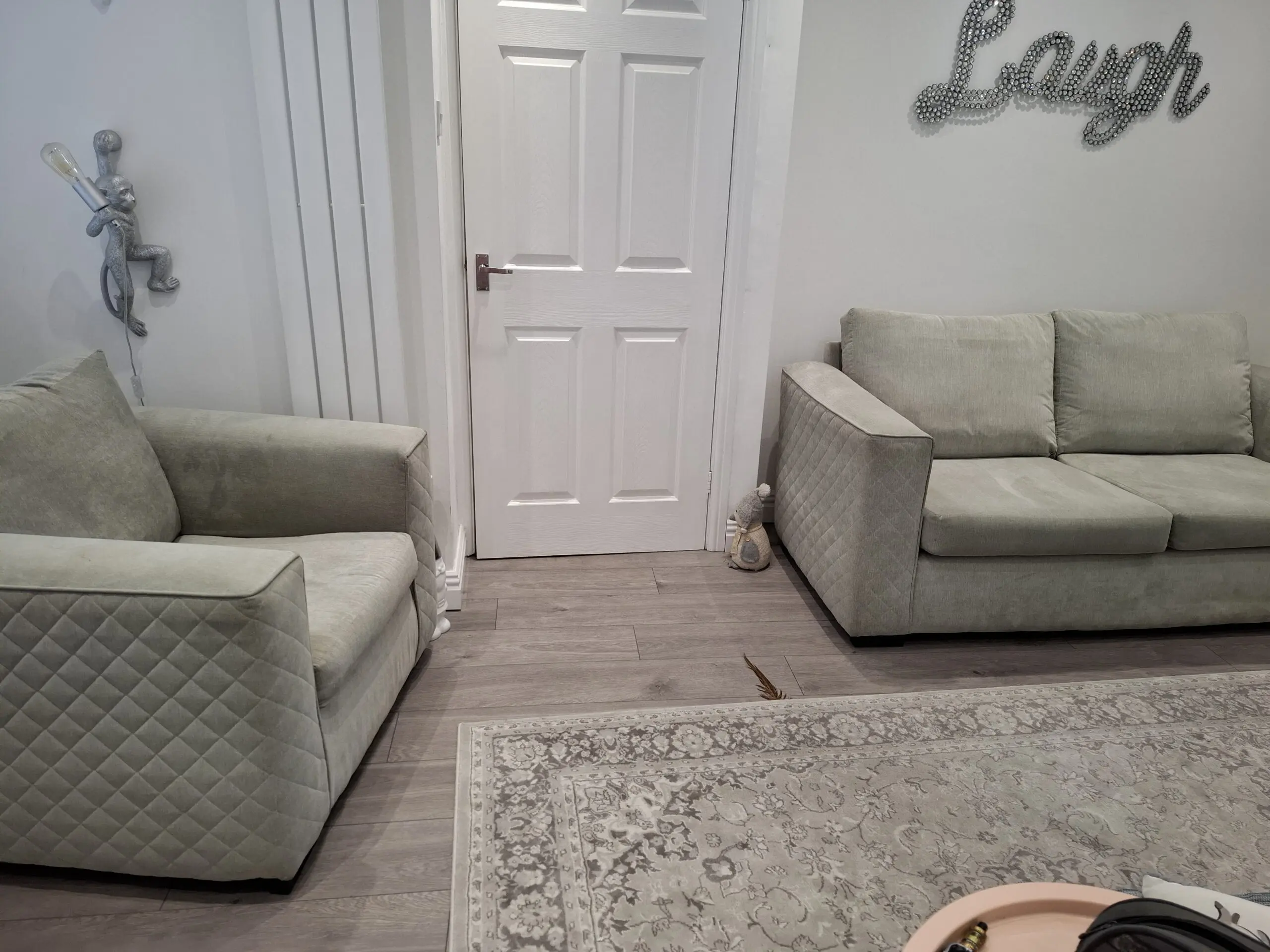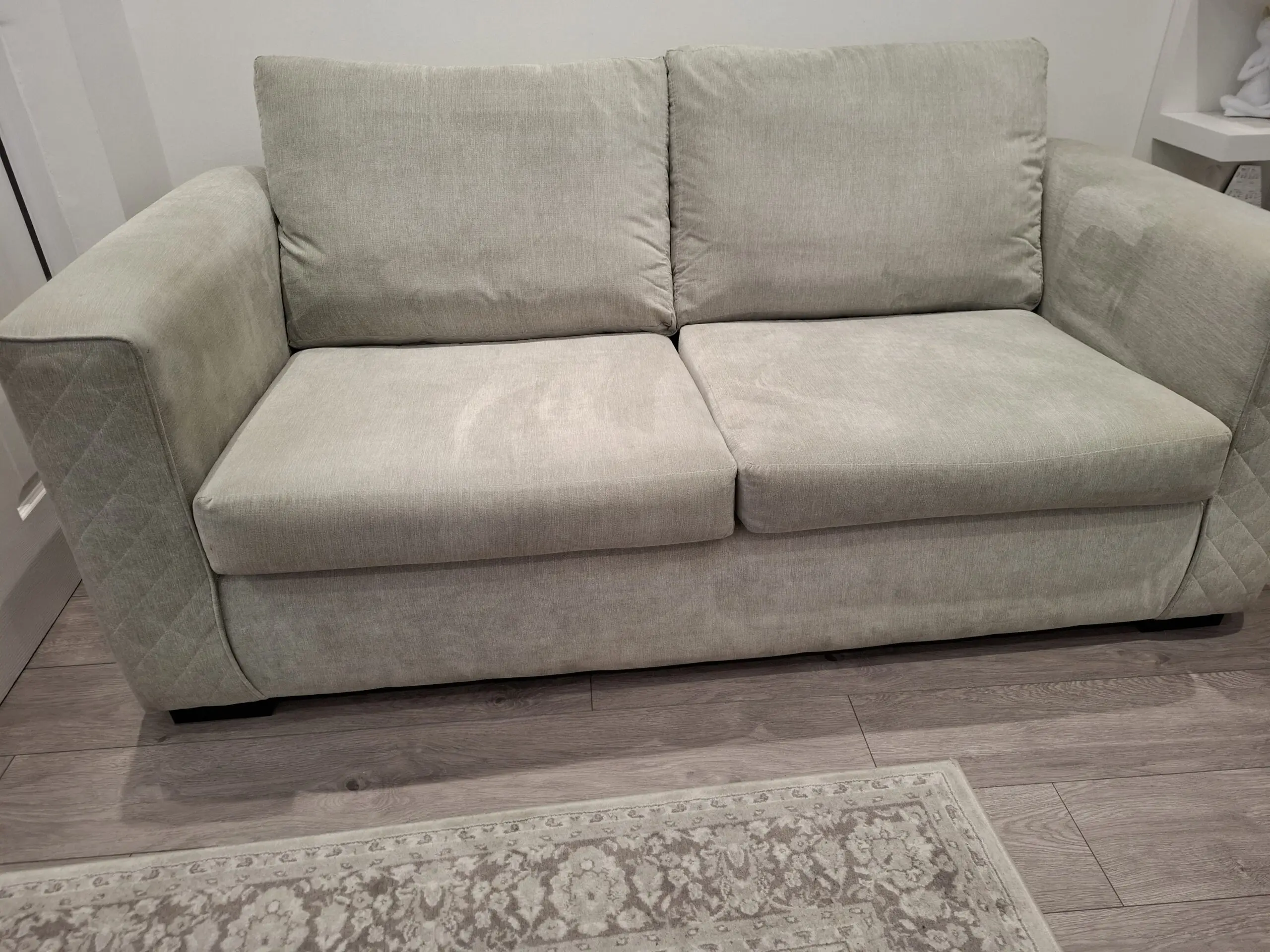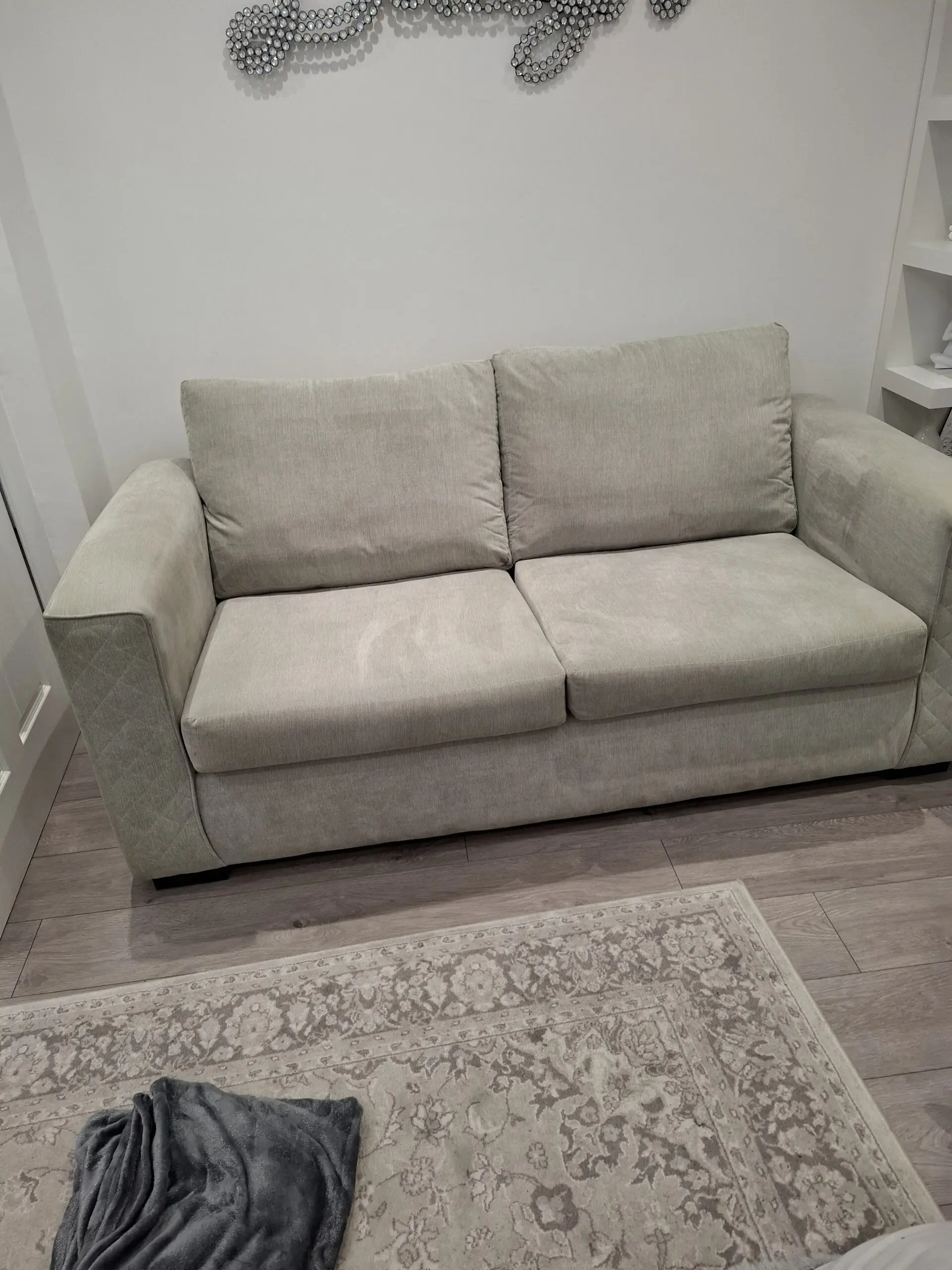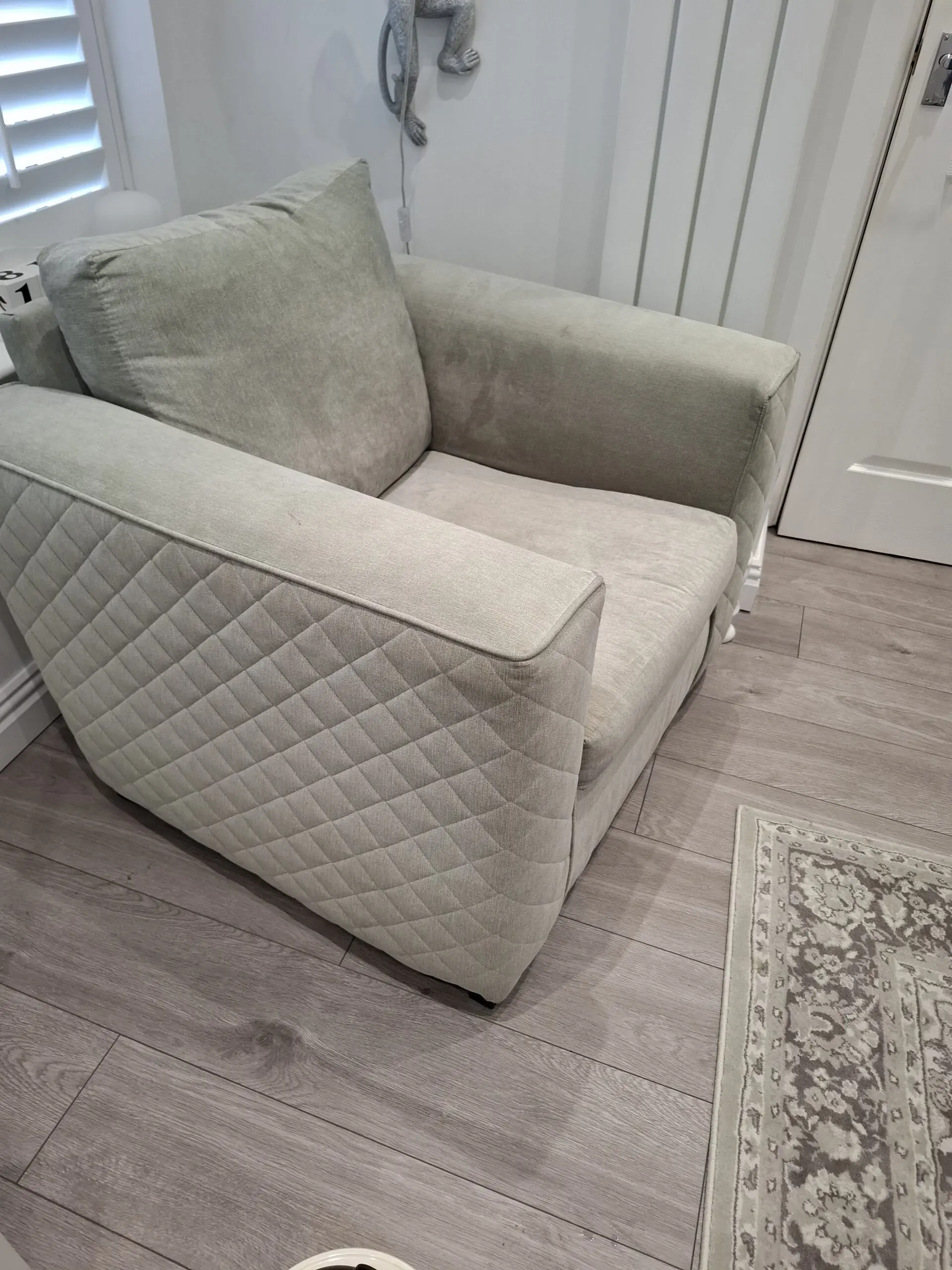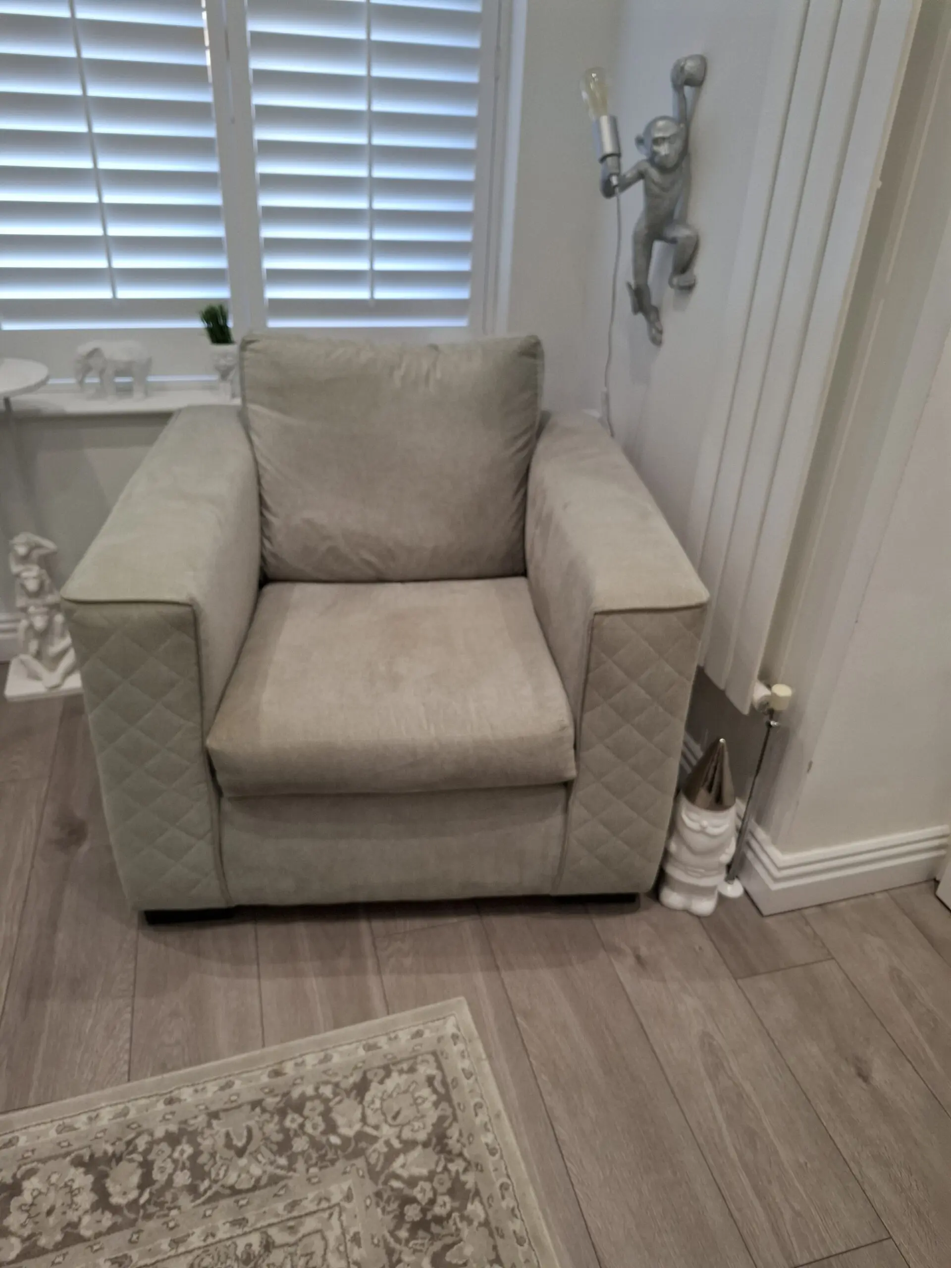 Bought from very. Light grey/beige. 3 seater sofa and armchair. Very comfy. Change of colour scheme forces sale