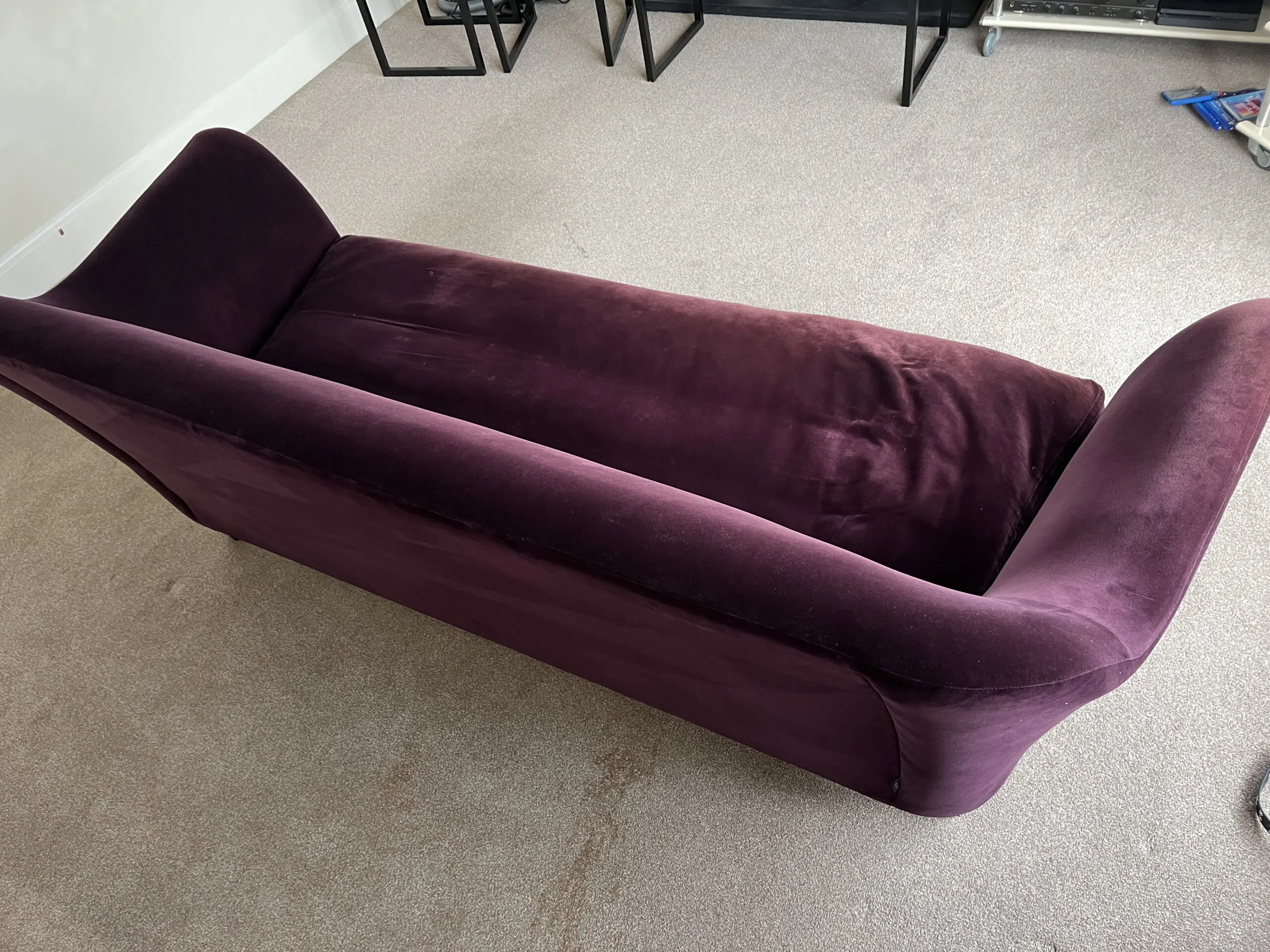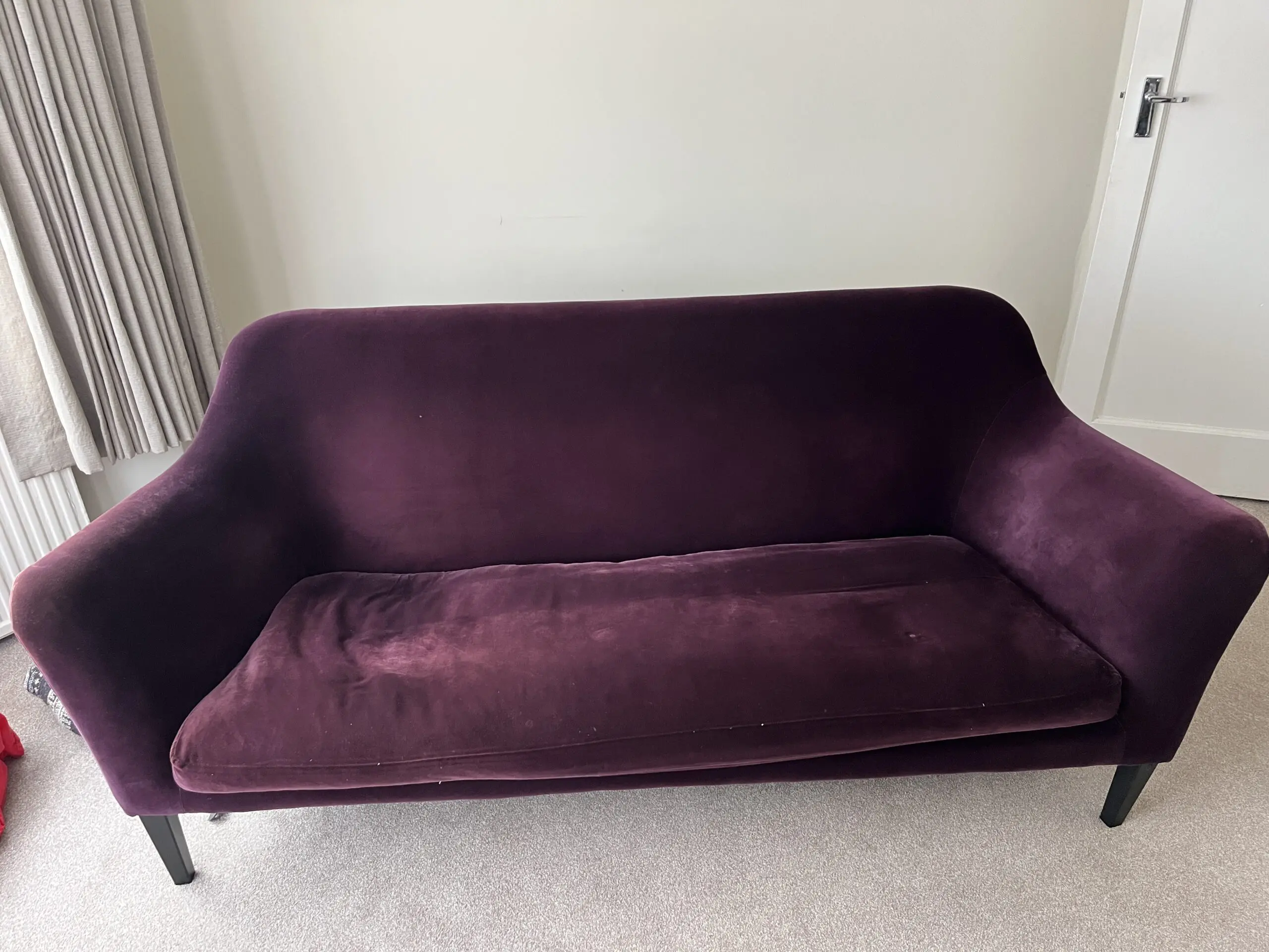 A luxe velvet purple sofa in a very good condition