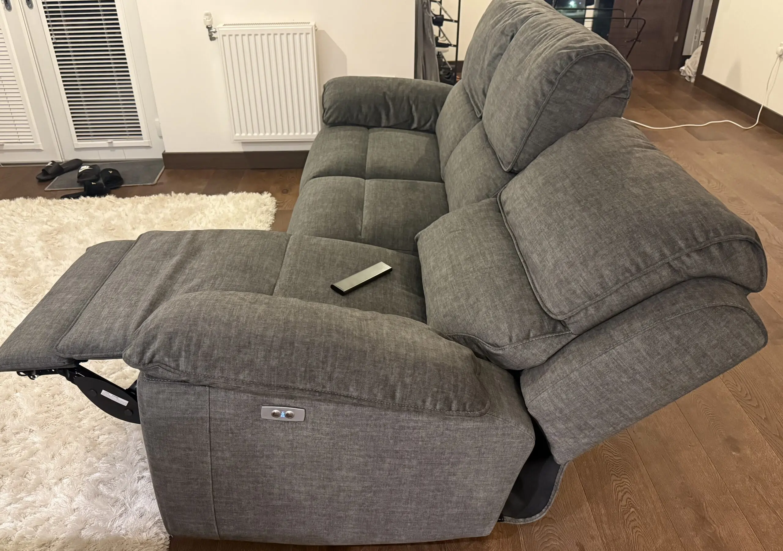 Immaculate condition only had for 8 months. Need gone as moving out a flat and can’t take it with me. No marks/stains still looks good as new. Recliner seats and charging ports at the sides. Bought from Oakland furniture for £1,199.00. Selling for £375 , absolutely nothing wrong with it and in excellent working order, hardly sat on. If you are interested message me. Pet/smoke free home.