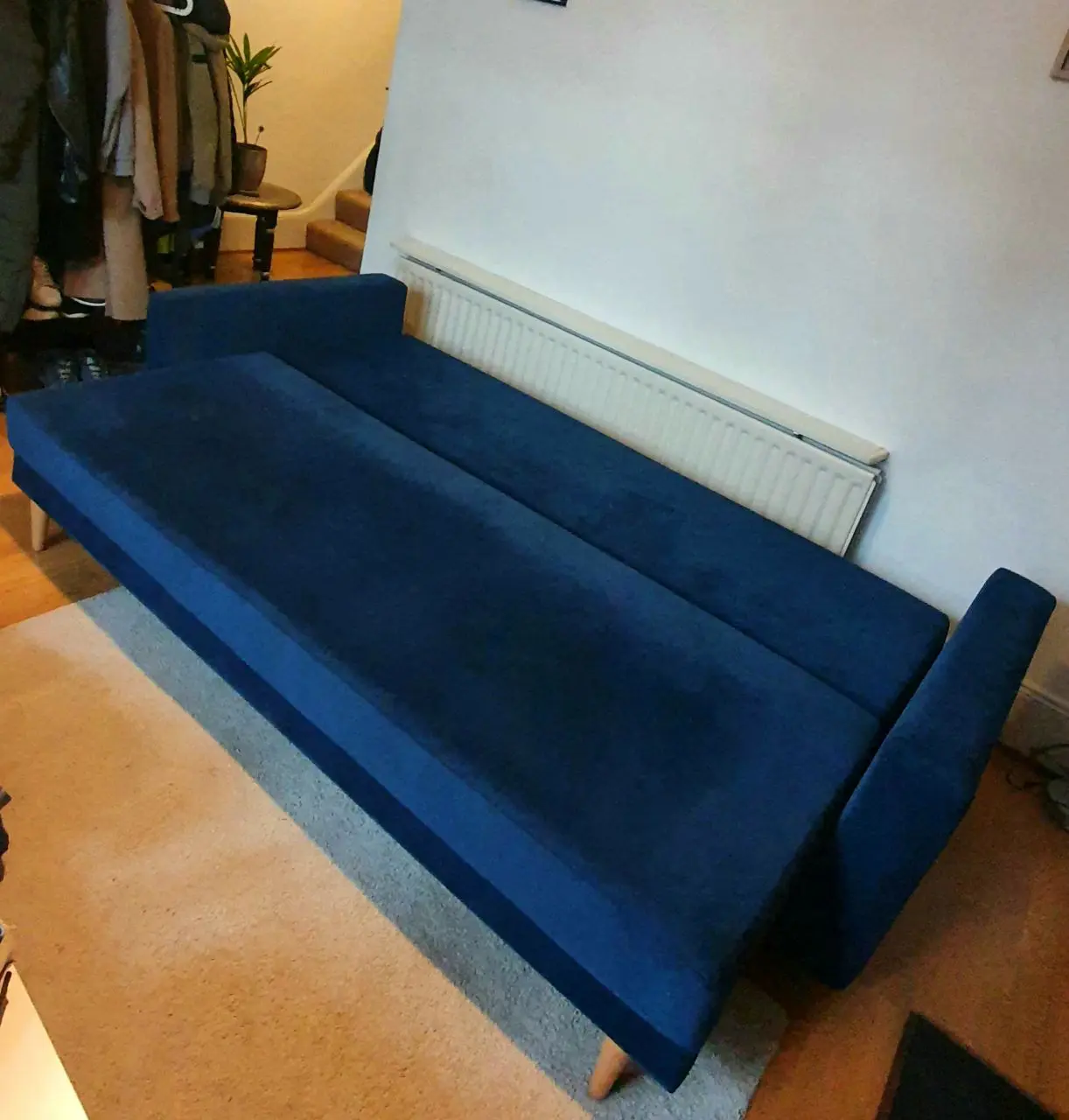 A stylish and spacious velvet sofa bed from Canora Grey, originally purchased from Wayfair (RRP ~£780). The sofa has been gently used in a smoke‑free home and remains structurally solid, comfortable, and modern in appearance.