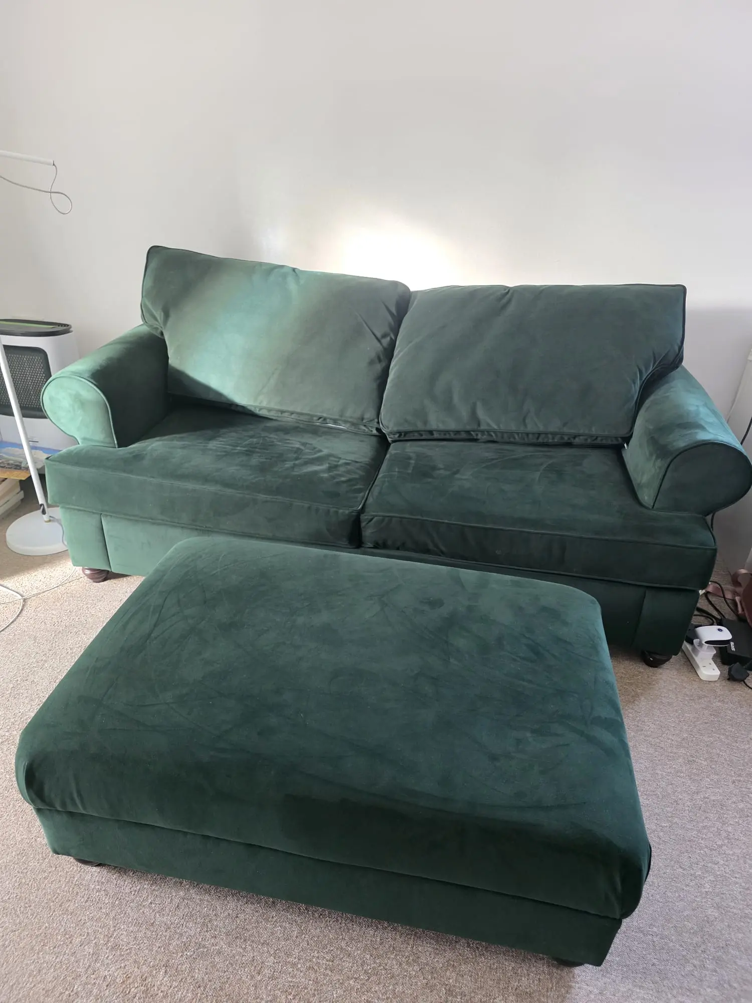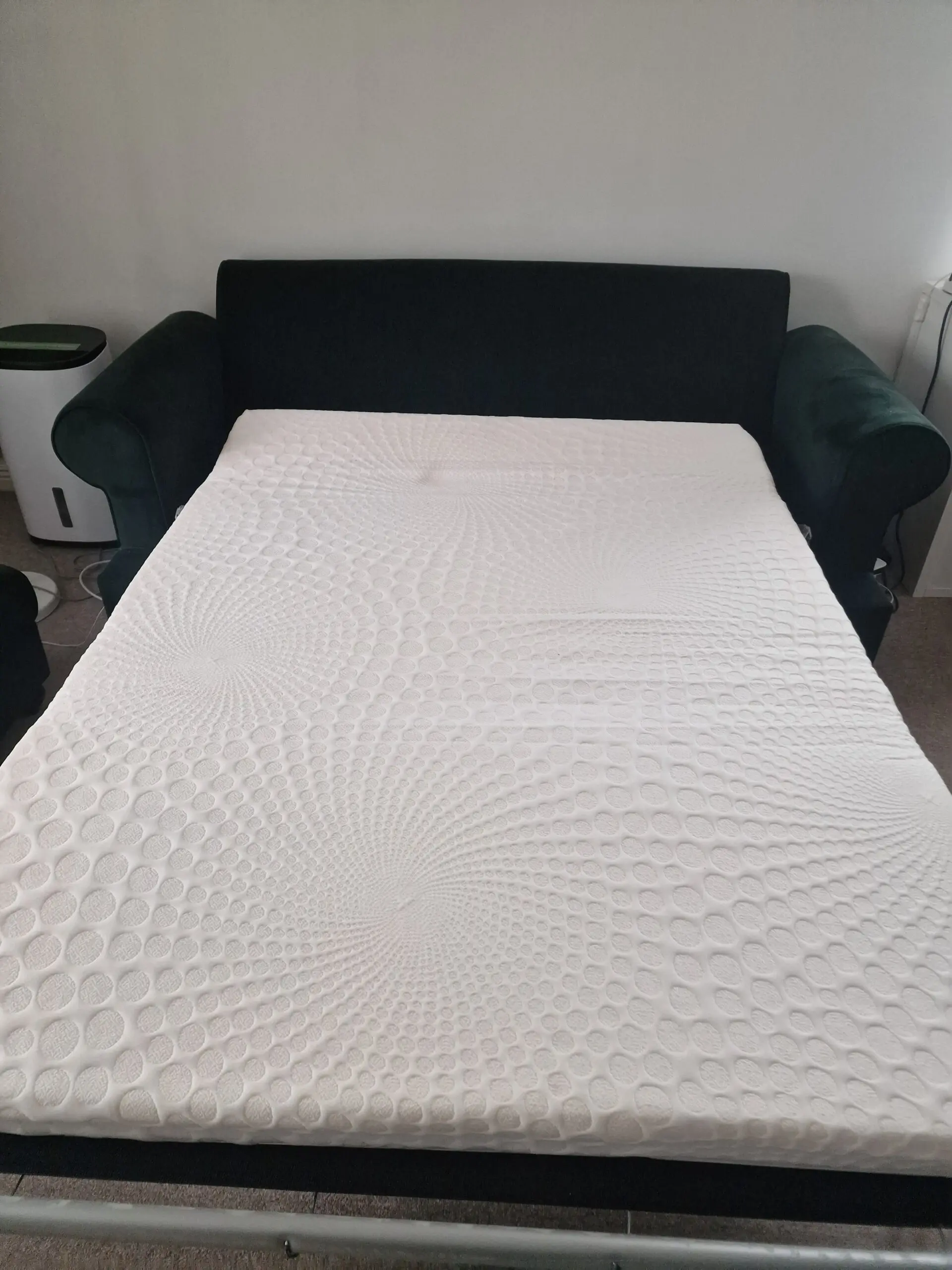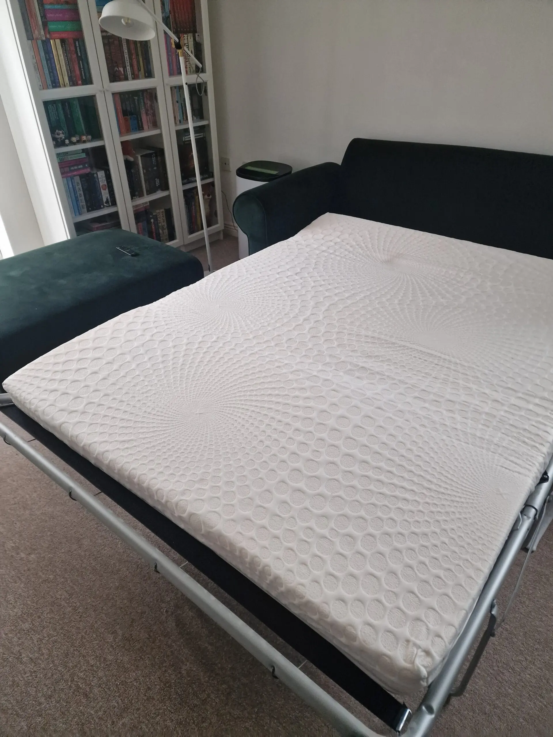 Comfortable Willow&Hall Buttemere sofa bed filled with memory foam. Used for one year, never slept in. Cadley large footstool in the same colour included. Originally bought for £1,977.00 incl. VAT.