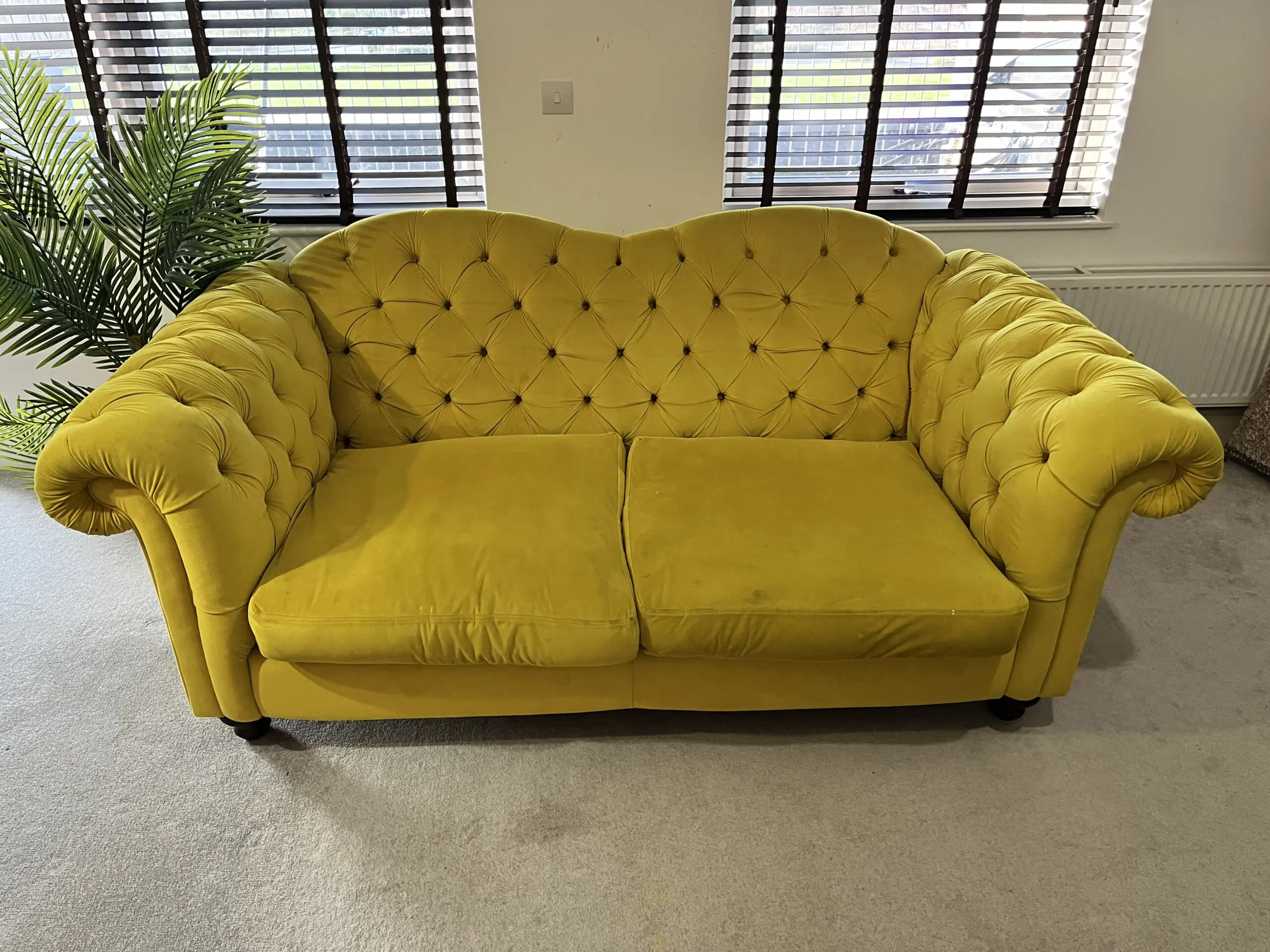 Hi there. We love this fab sofa but it’s time she finds a new home. We have been maintaining it by having it professionally cleaned. We are open to negotiation.