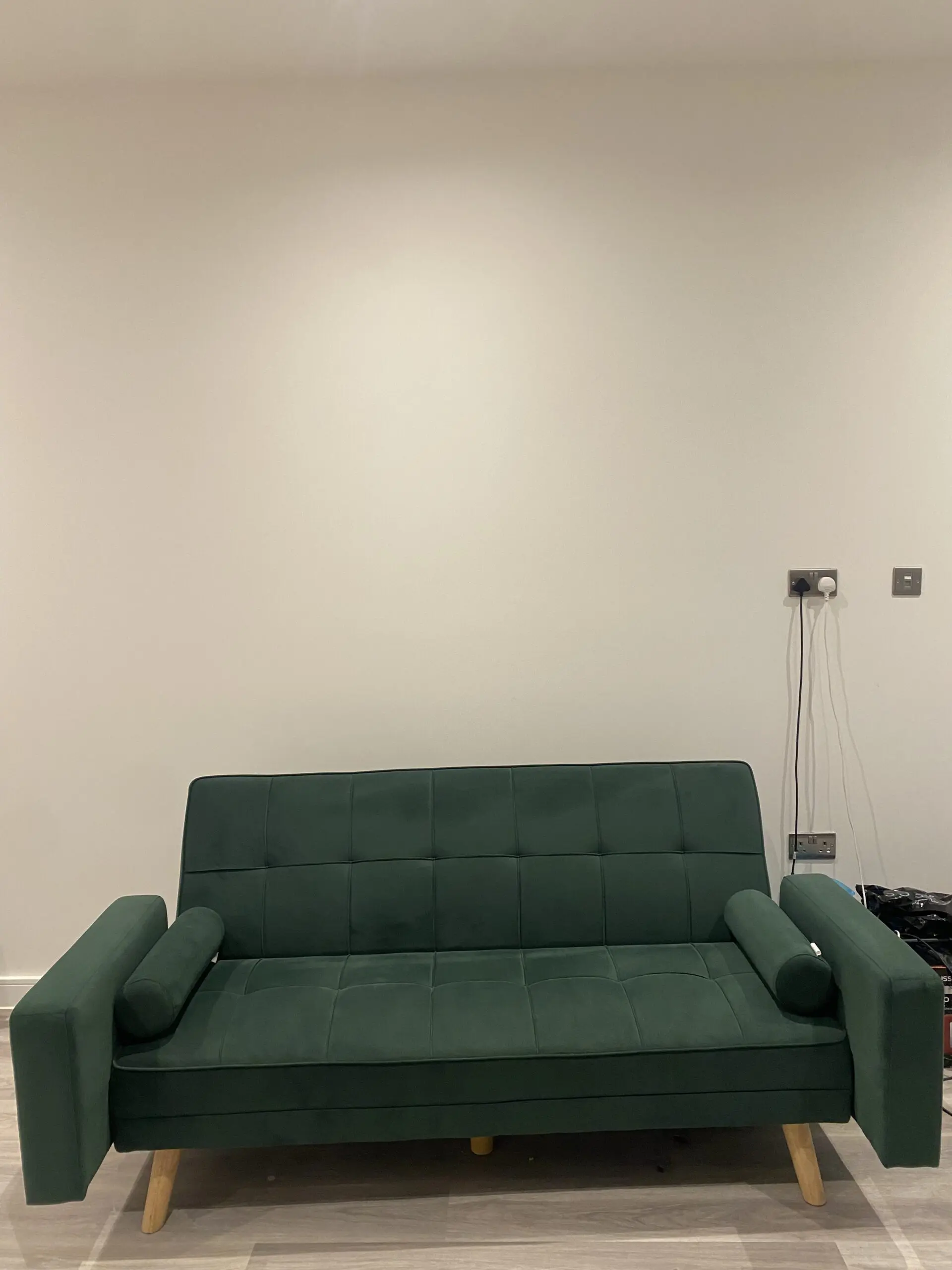 Selling my Yaheetech Green Velvet 3-Seater Convertible Sofa Bed (with armrests and two matching bolster pillows). I bought it about 3 months ago and it’s been lightly used in a clean, smoke-free, pet-free home.