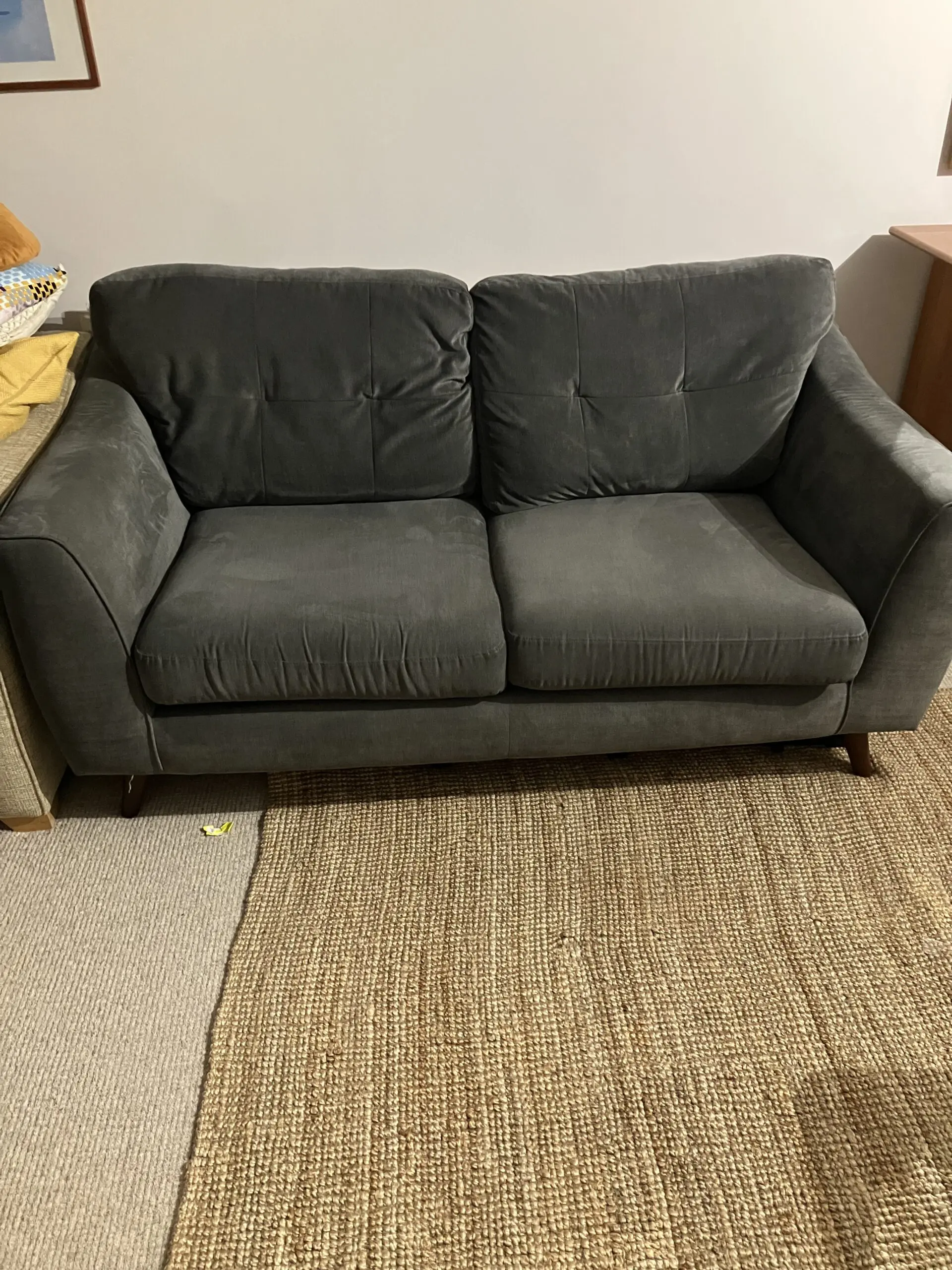 Elevate your living space with this stylish gray two-seater sofa, perfect for cozy gatherings or relaxing evenings at home.