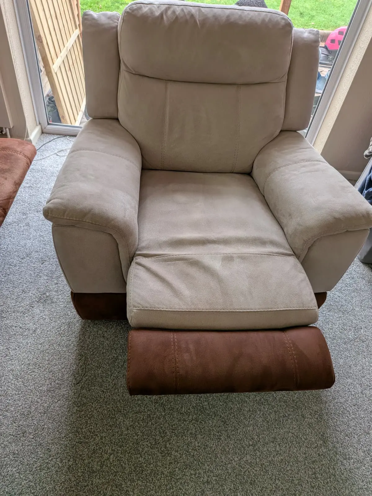 The sofa and chair I bought was as described by the seller - excellent condition. Delivery was quickly arranged and without any incidents. I was kept well informed of the delivery time on the day. Highly recommended.