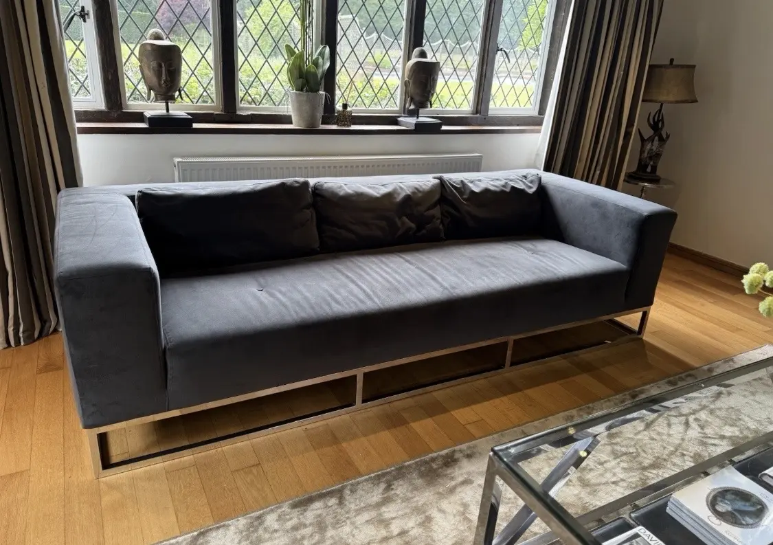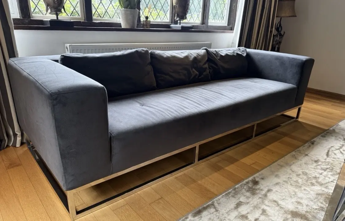 A large 4 seater modern velvet touch sofa by high end brand Andrew Martin.
