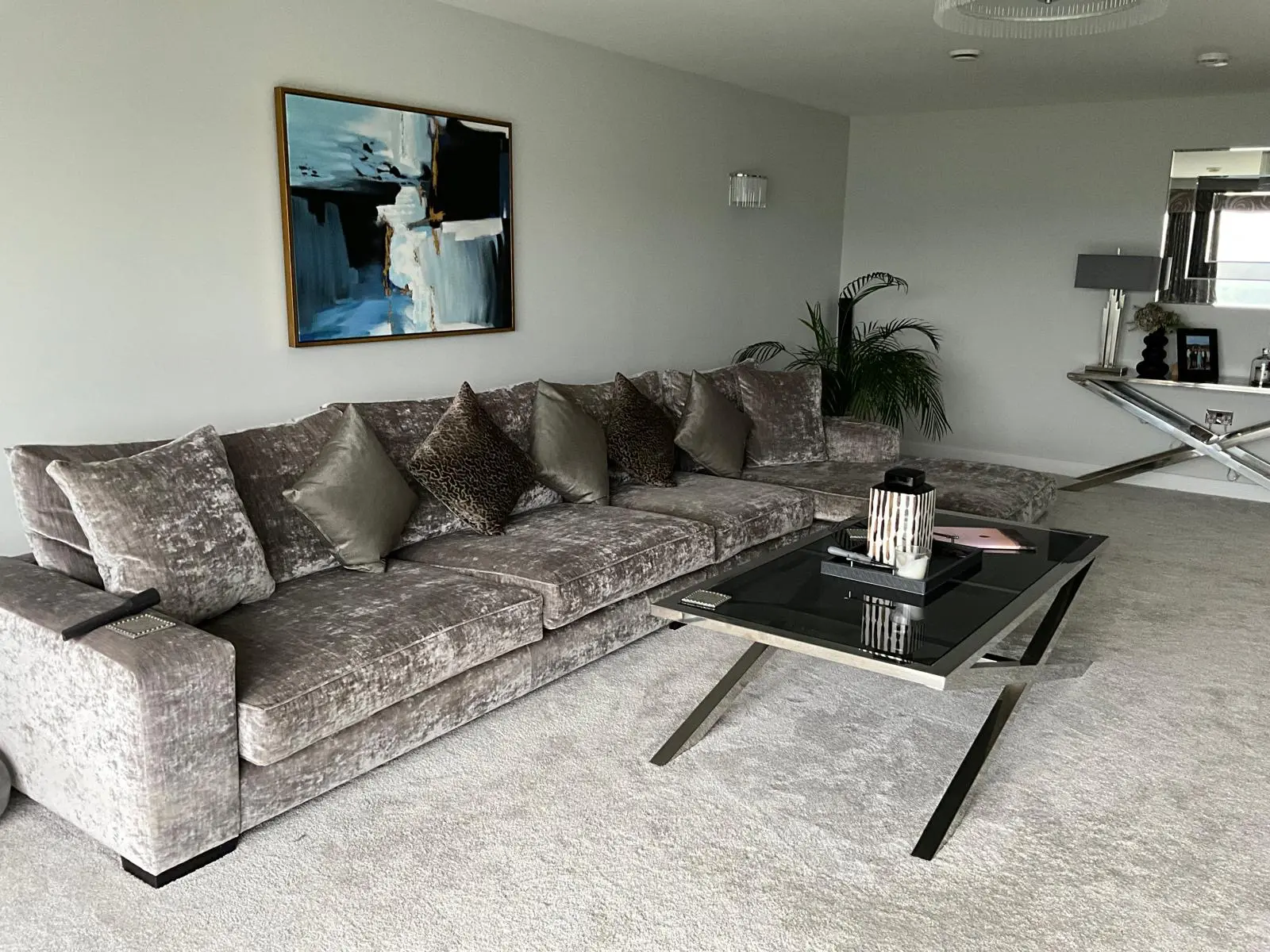 4 seater sofa with end chaise on right hand side.