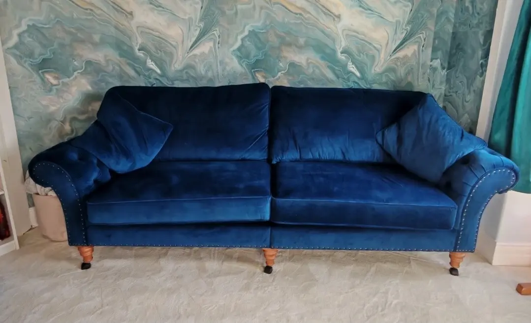Beautiful large settee that comfortably seats 4 people. lmmaculate condition, like new. From a pet & smoke free home. Been used in an occasional room and hardly used.It comes apart in 2 halves for ease of transport and has legs on wheels for easy movement but the wheels can be removed.was expensive so grab a bargain.