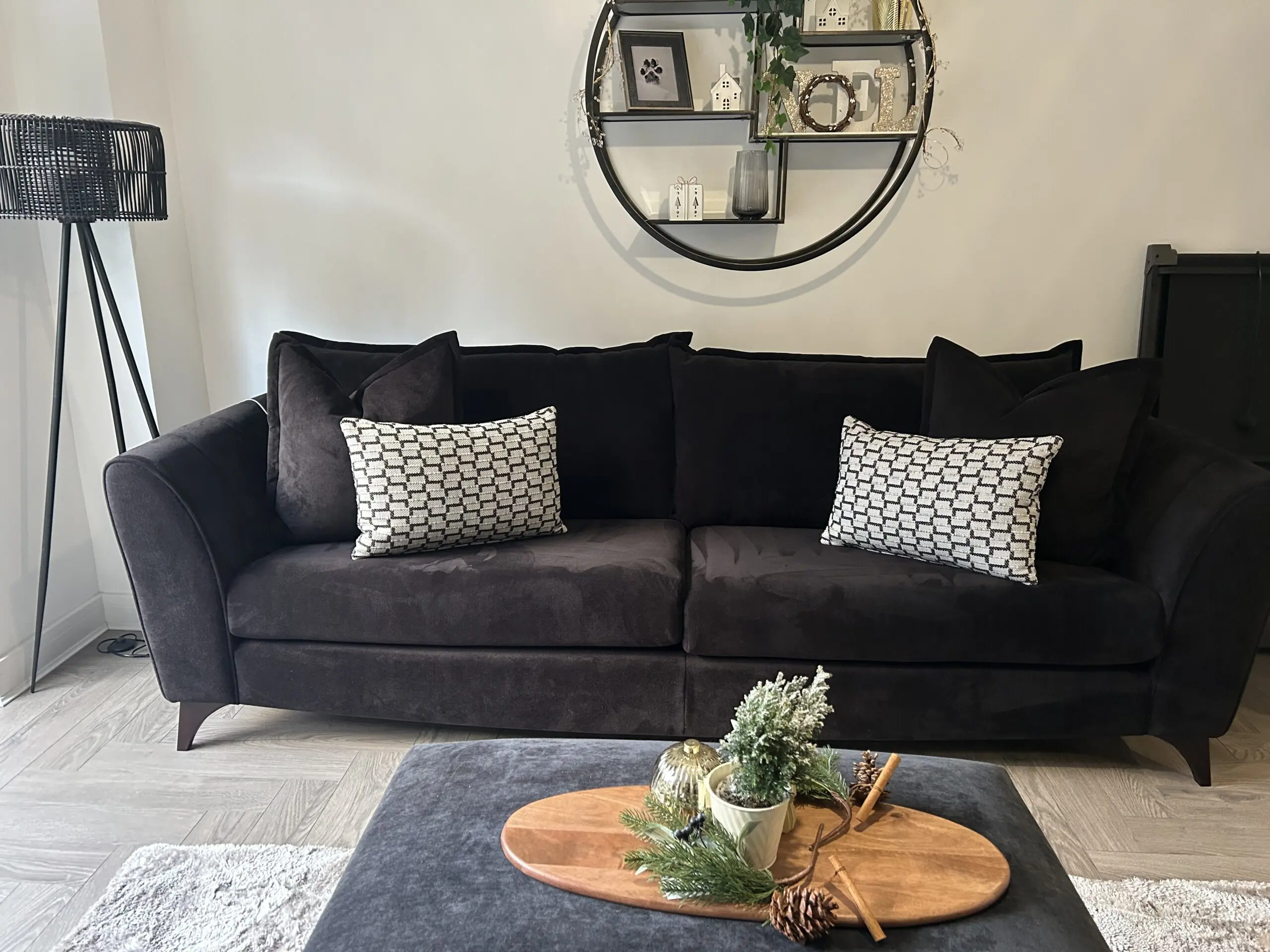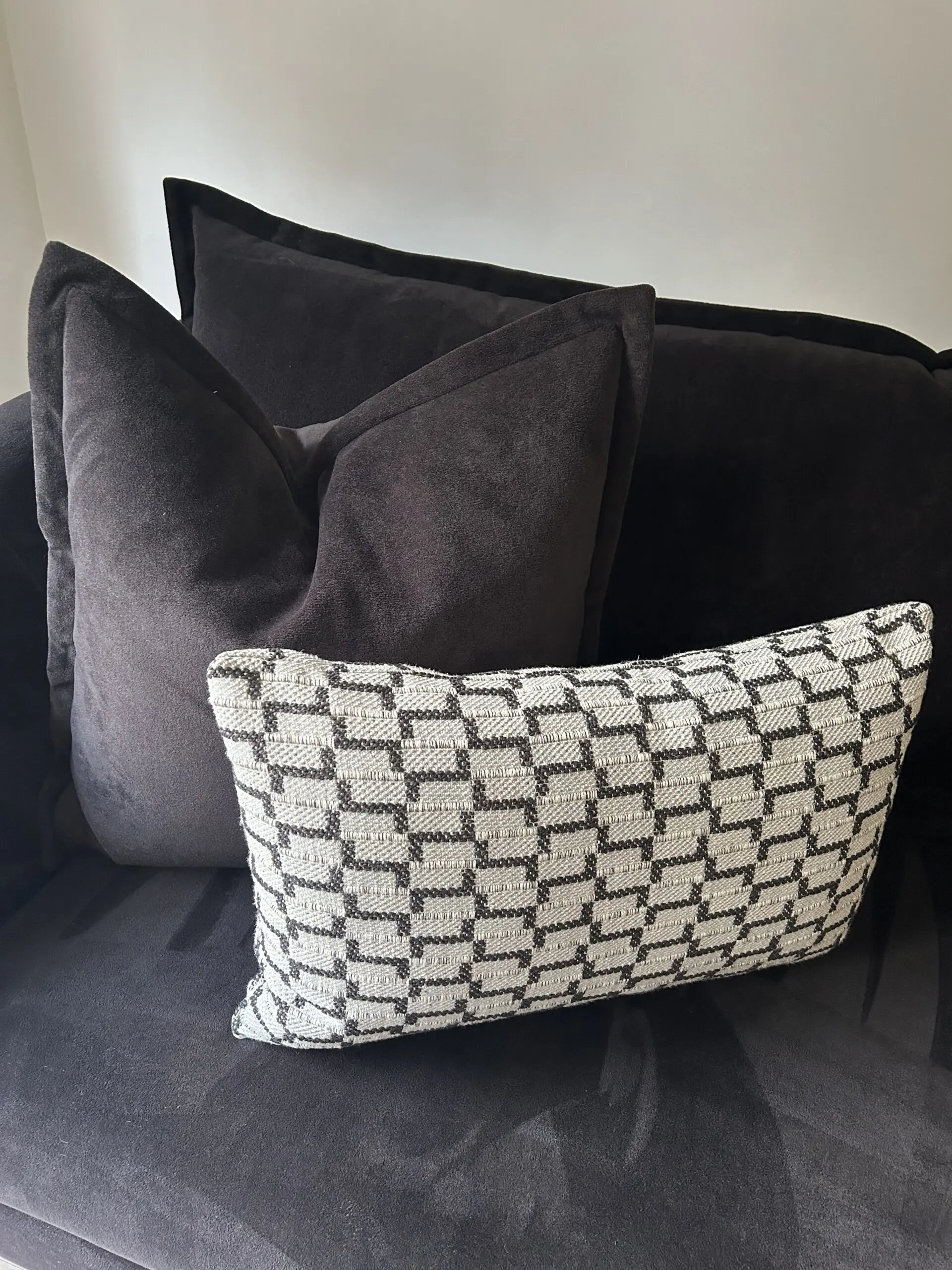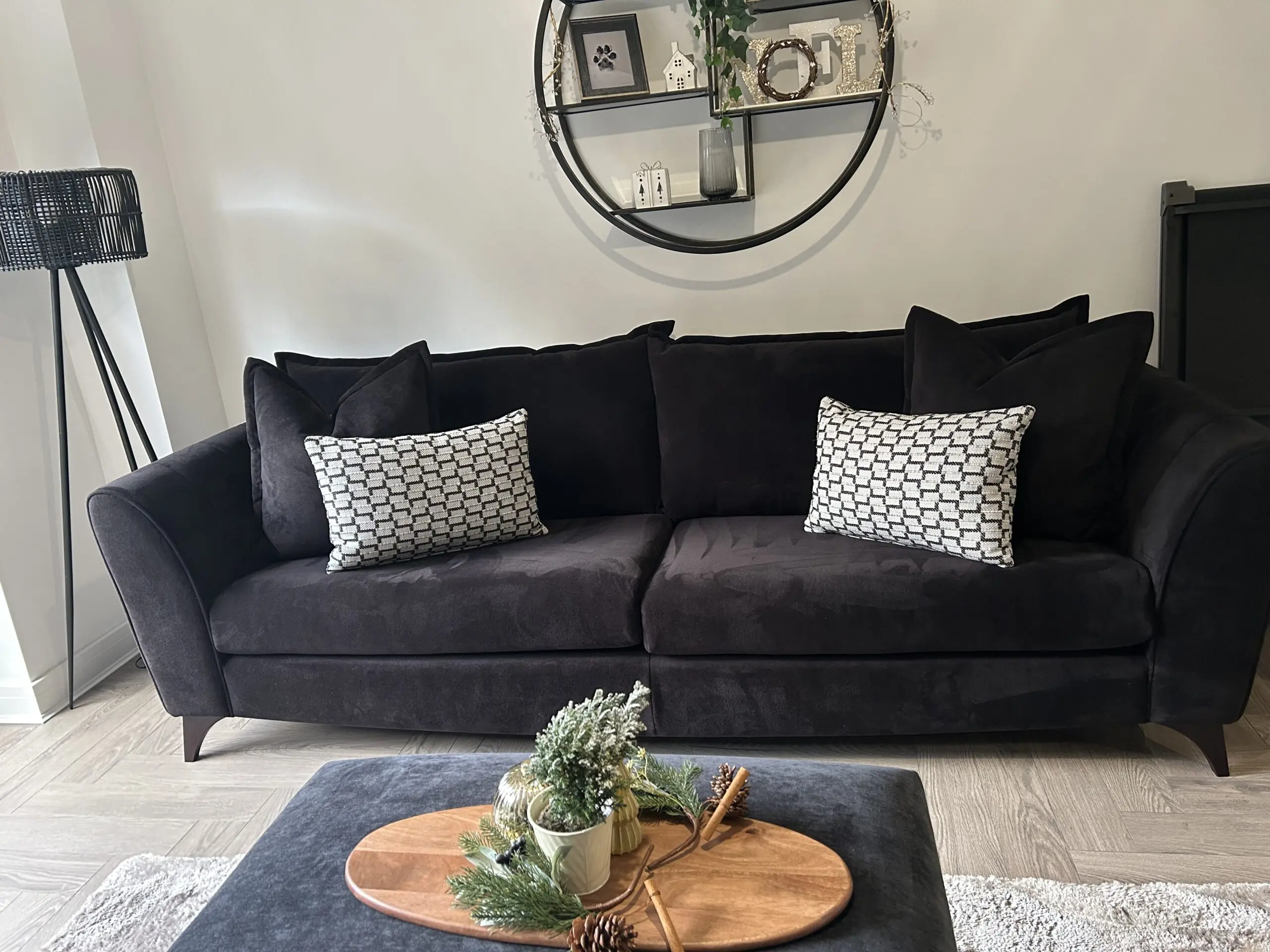 Black chenille material with foam seat cushions with a Dacron wrap for extra comfort.