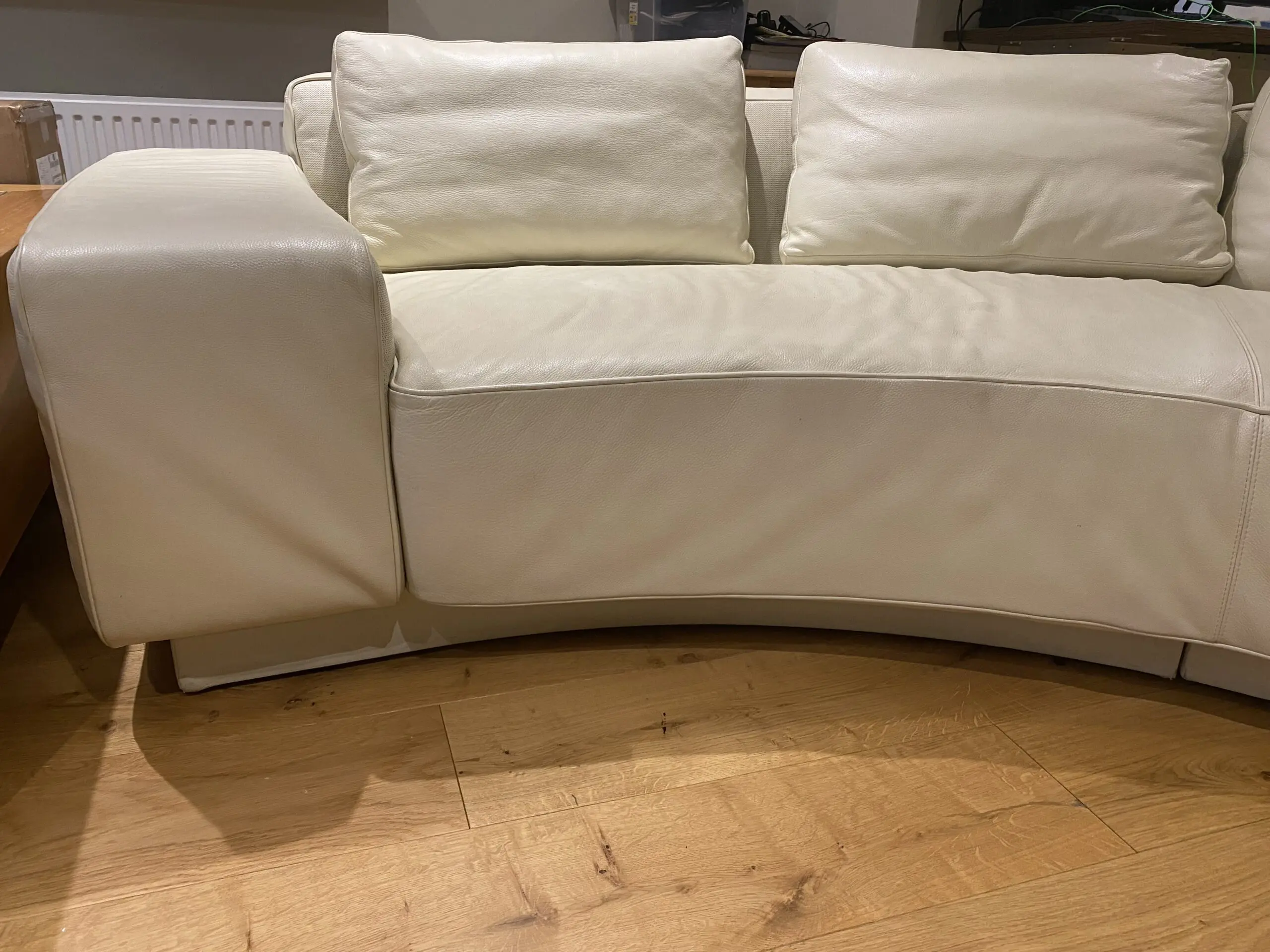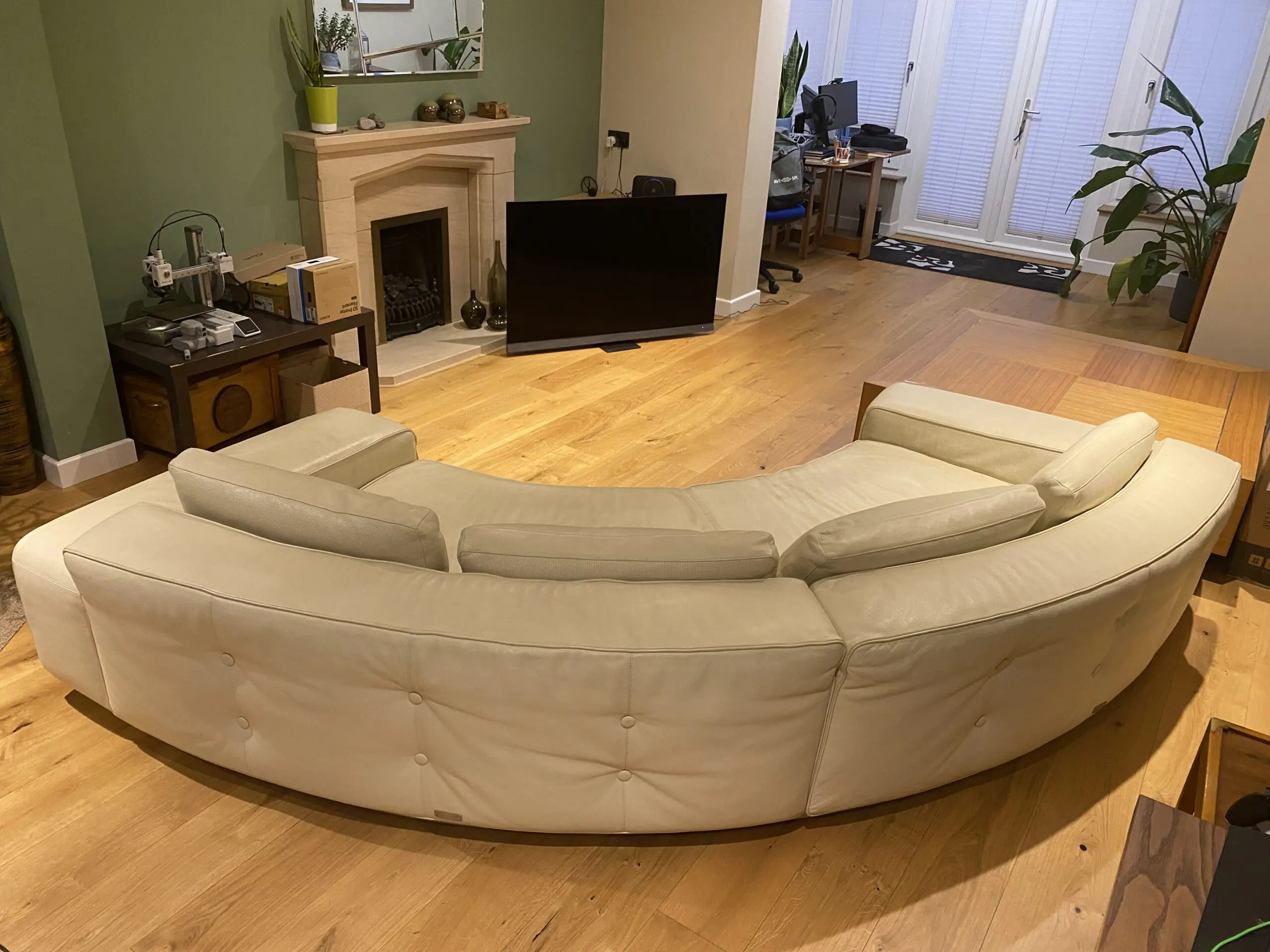 Stunning contemporary curved sofa brings sophistication and comfort to any large living space.