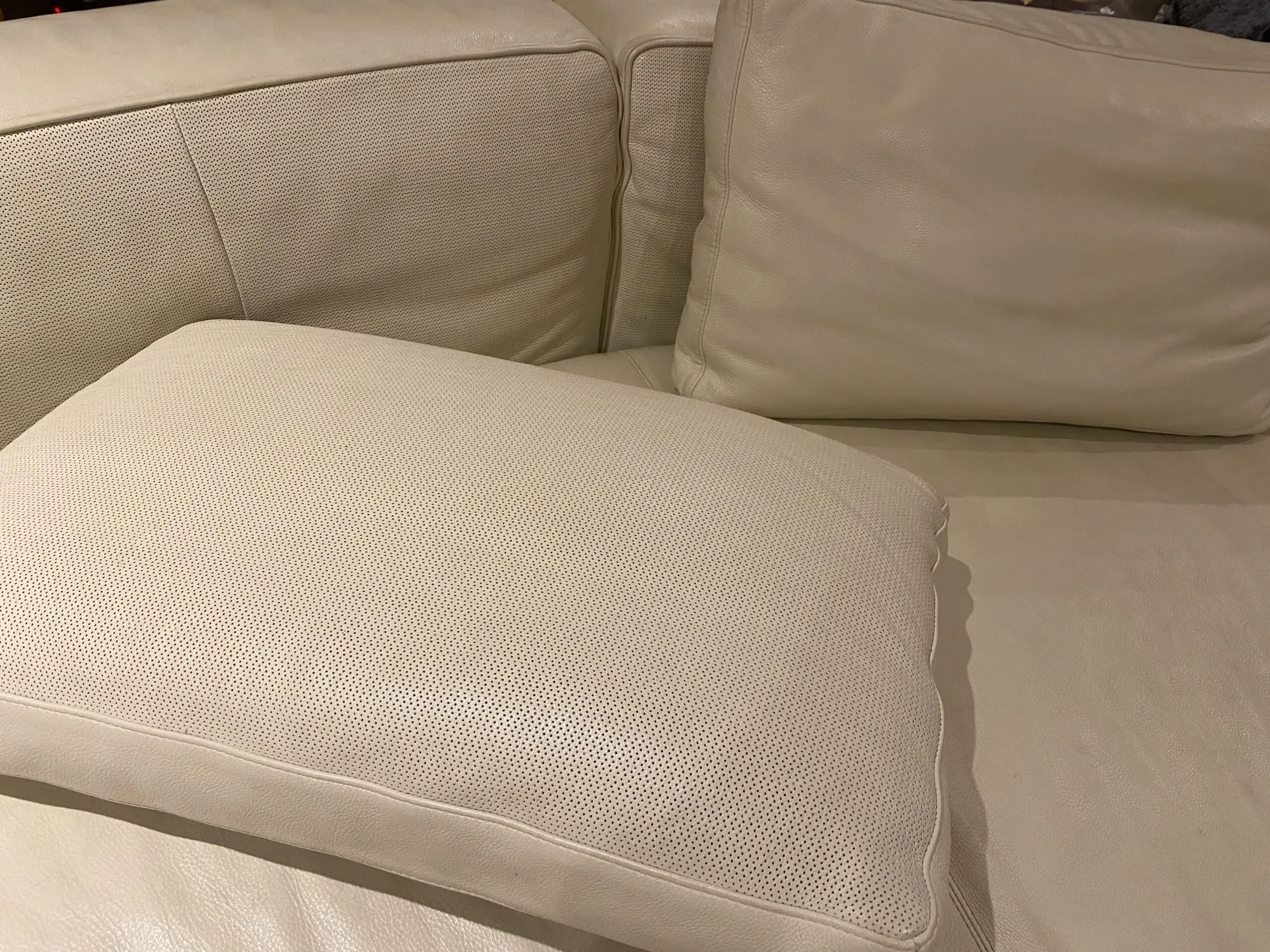 Leather is soft yet hard wearing. Suitable for family life. There are a few marks as you would expect from a preloved sofa. Sofa is easy to clean using a leather cream cleaner.