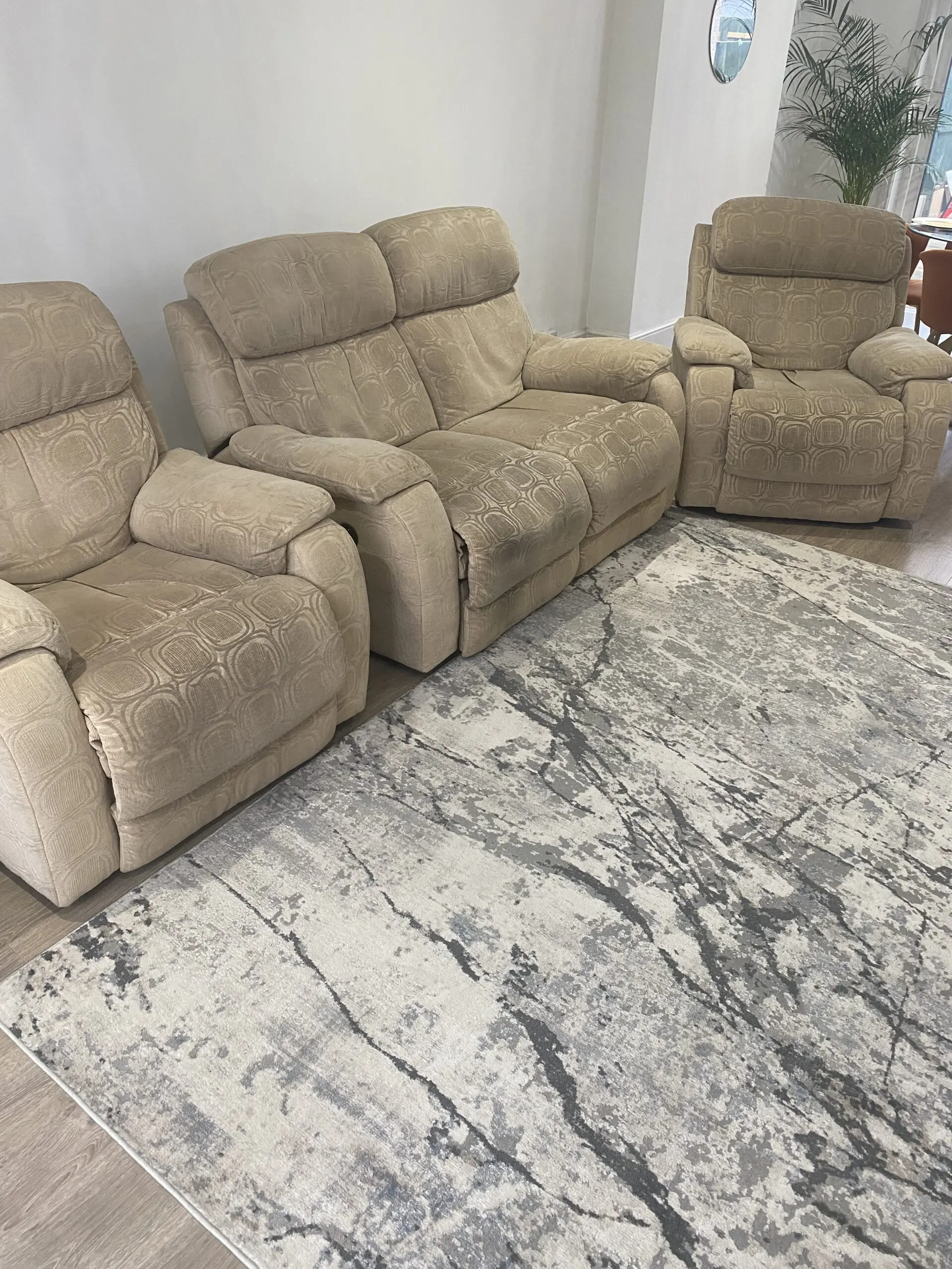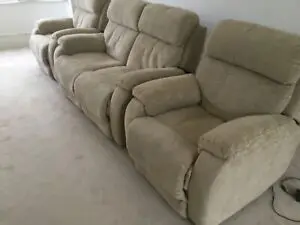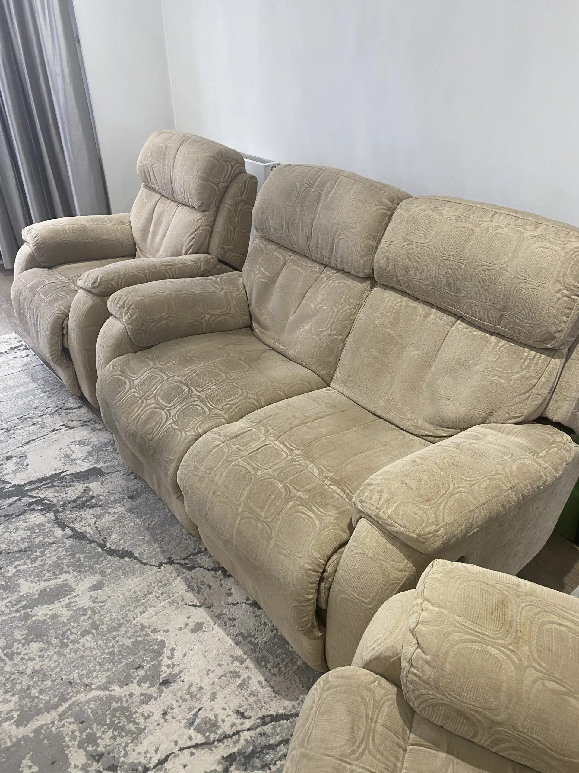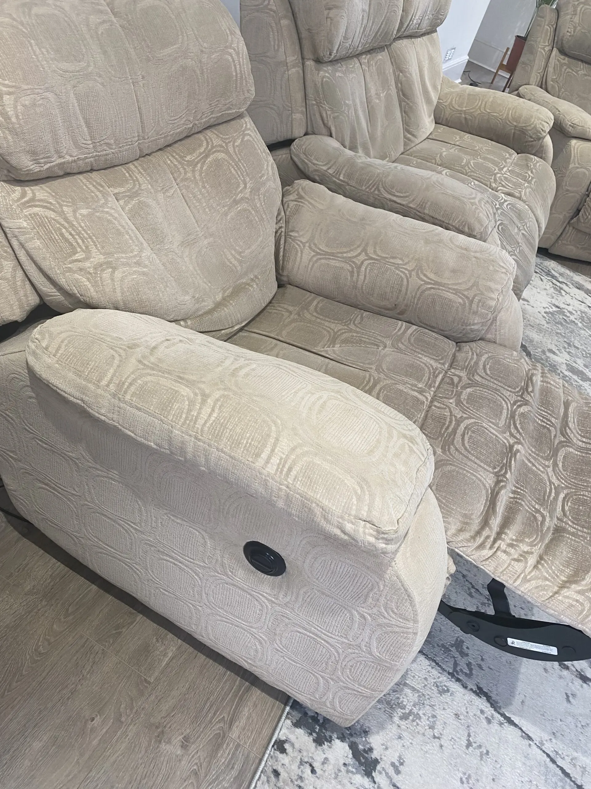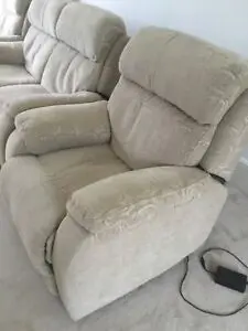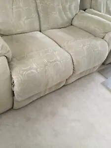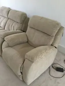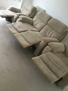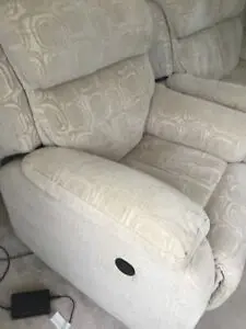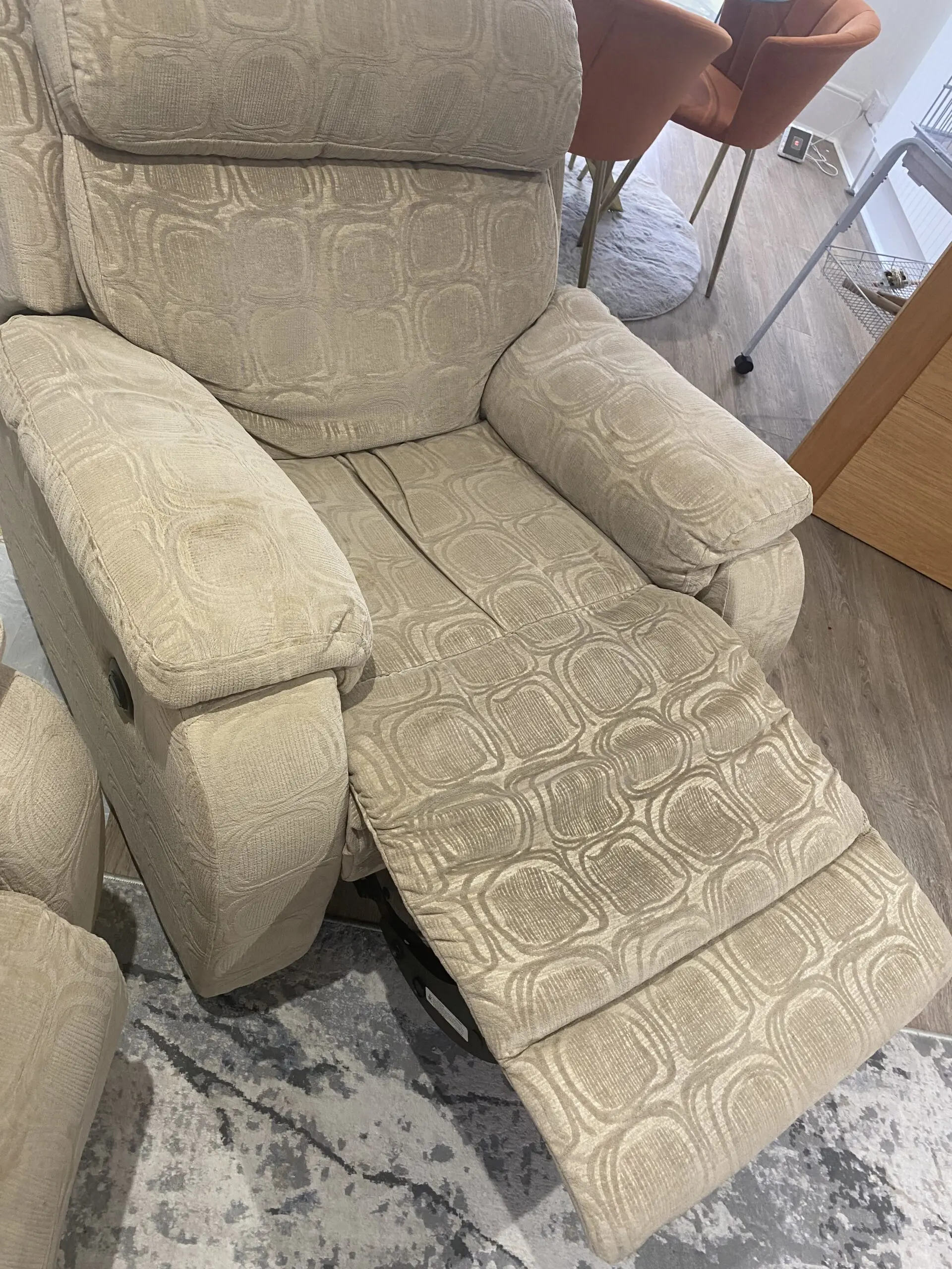 DFS electric recliners will become your go-to seat when you want to relax – whether that’s watching TV or unwinding with your favourite book. The high back and overstuffed arm pads ensure generous support for your upper body and the sumptuous seat will encourage you to lean back and get comfy. RRP £2,800. A few small stains but can be washed away (may be visible in last photo). The leg paddings from the 2 seater are a bit deformed when declining downwards (would require the pads to be pushed out slightly when finished declining).