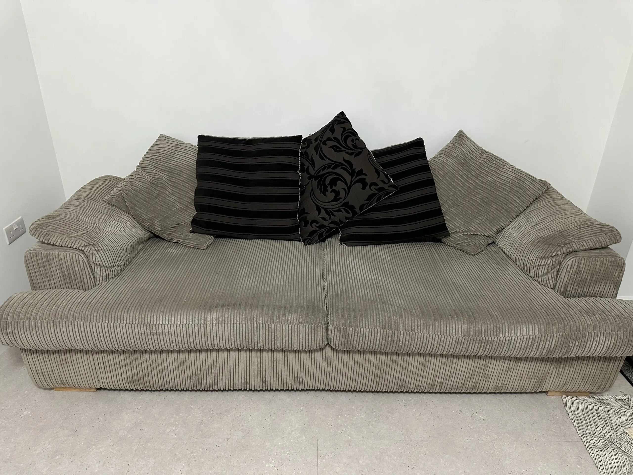 Dfs sofa. Around 4 years old. Couple of small tears in the cushions. Sofa is in really good condition. Doesn’t fit up the stairs in new house