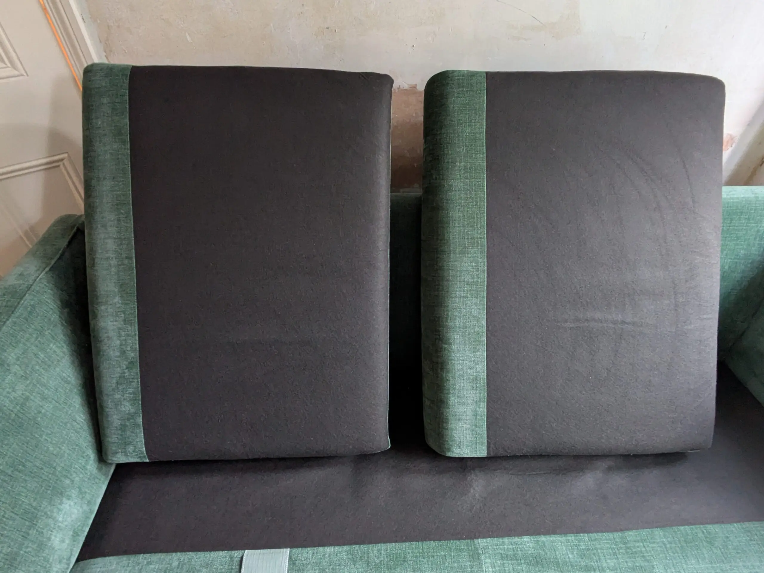 Condition: Excellent. No marks, stains, or tears in the fabric. Seat cushions remain firm and have retained their shape well.