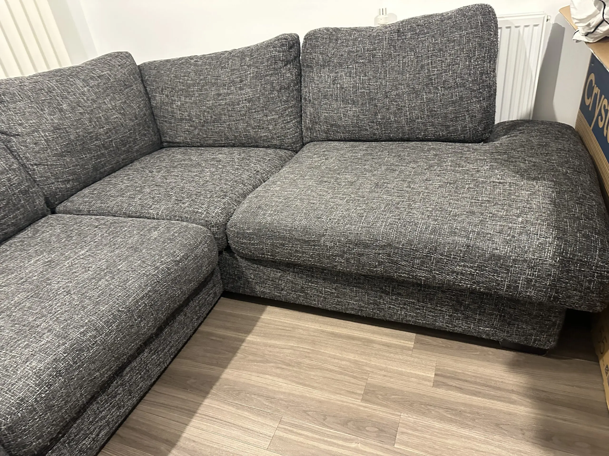 This spacious corner sofa is ideal for family gatherings and entertaining guests. The L-shaped design maximises seating whilst making excellent use of corner space in your living room. Featuring plump, comfortable cushions and a contemporary style that will complement modern interiors. The generous proportions provide ample seating for the whole family to relax together. A practical and stylish addition to any home that combines comfort with smart space-saving design.