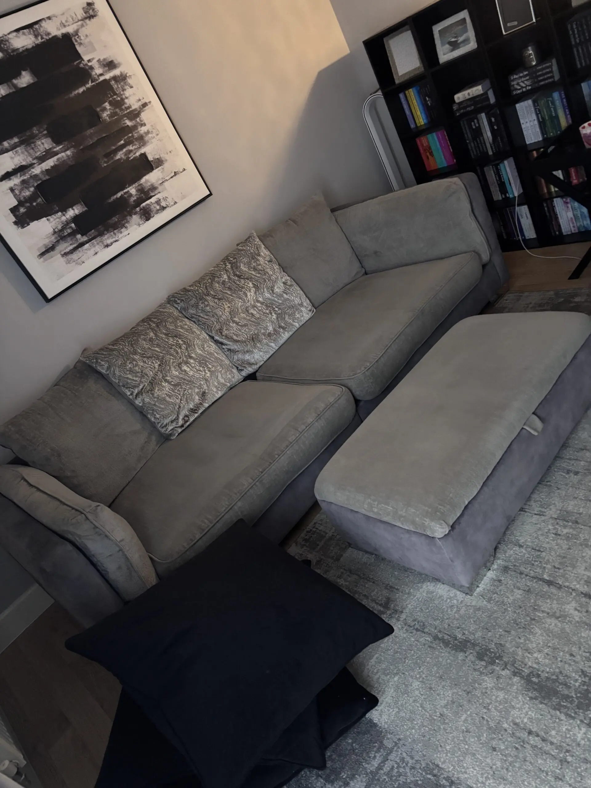 Comes with the black cushions (they are not from DFS – I just added them)