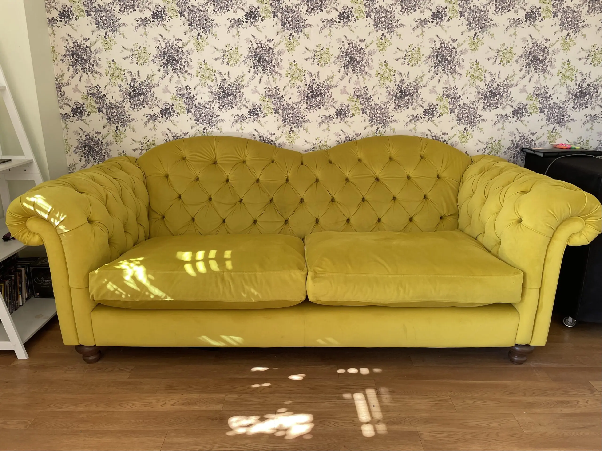 DFS Yellow Windsor Velvet 4 Seater Sofa