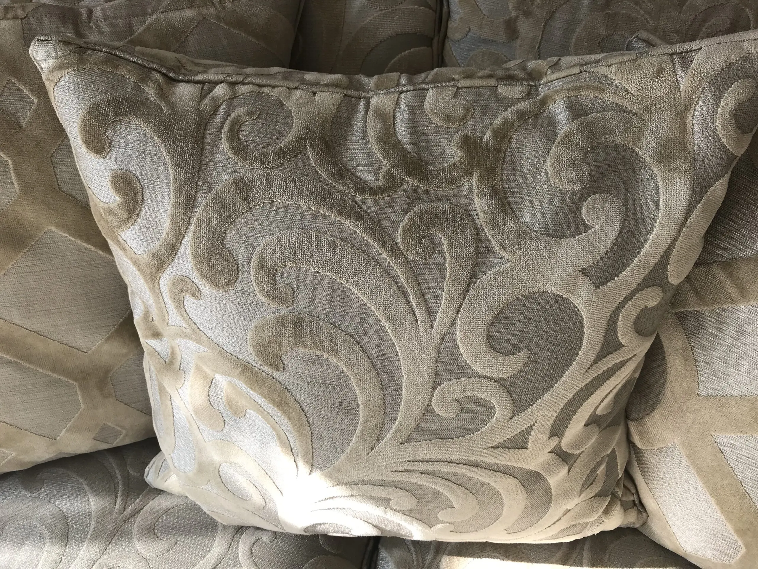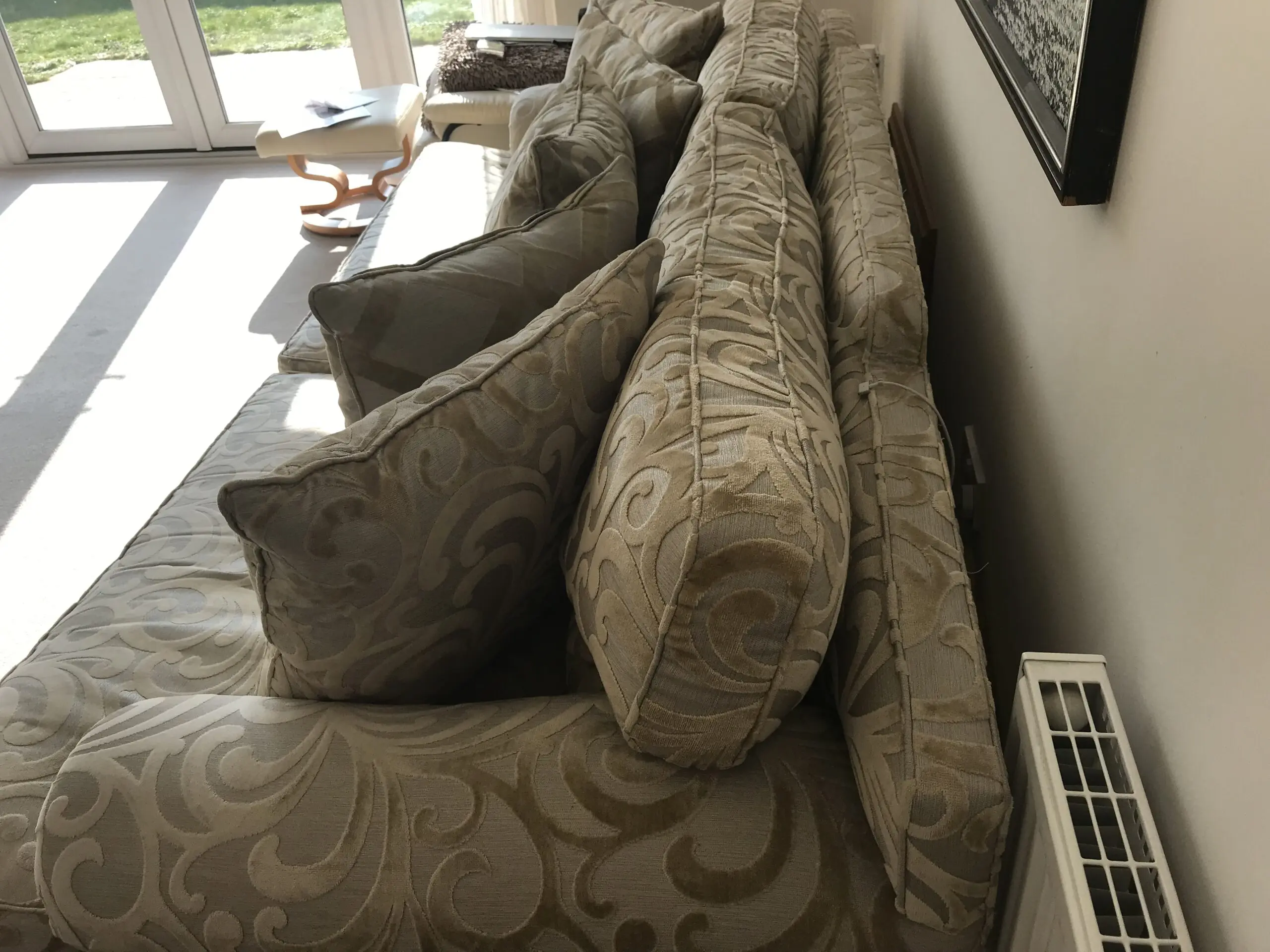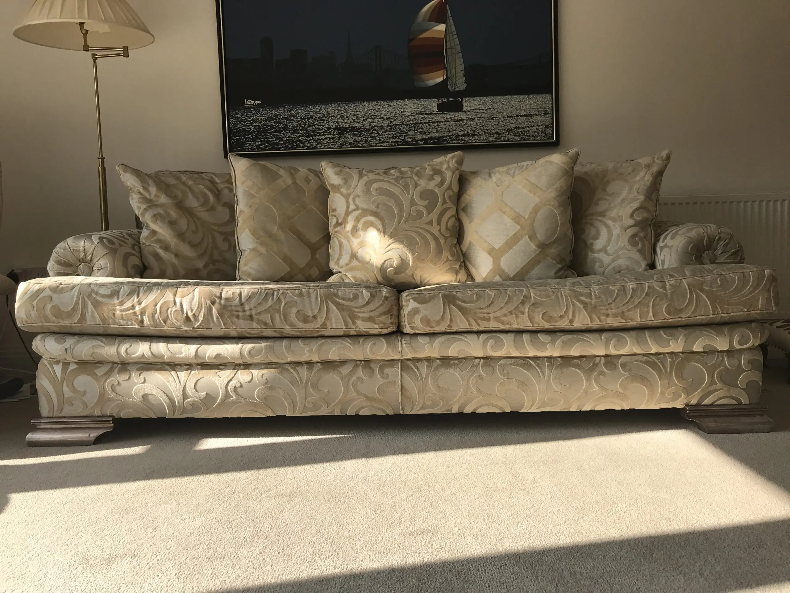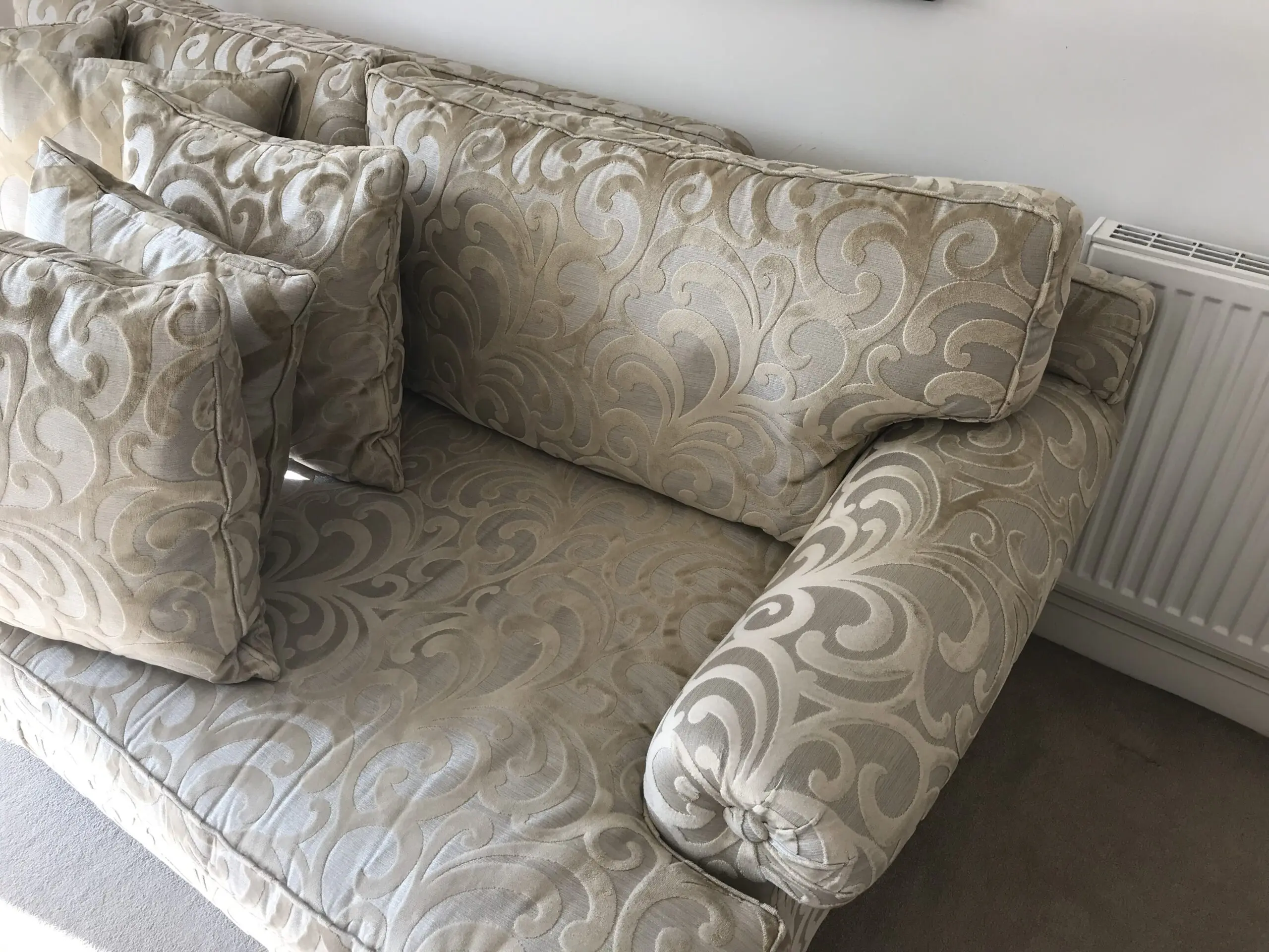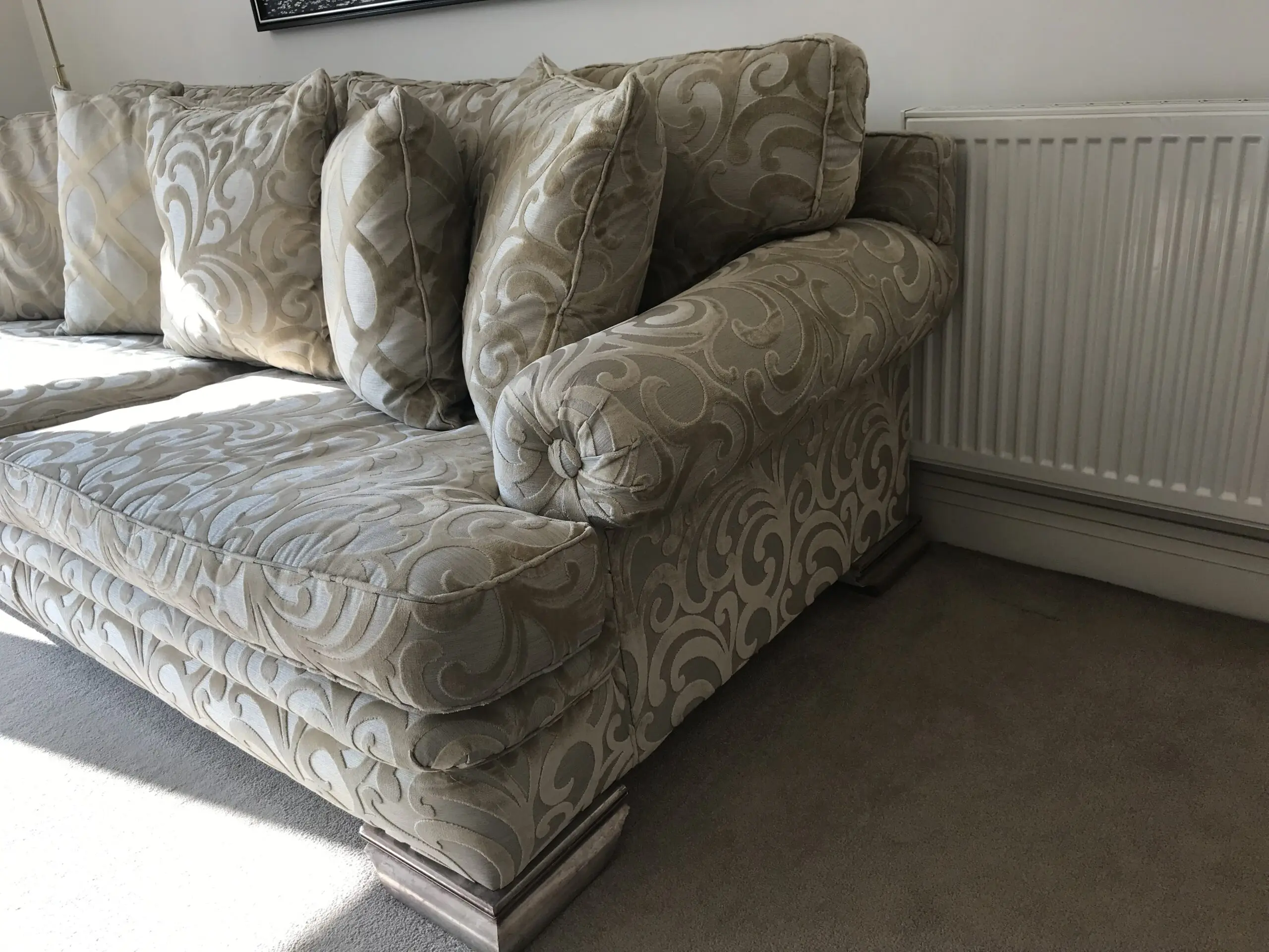 Top of range sofa. Originall RRP over £8000.00. In excellent condition. Silk embroidered with feather filling.