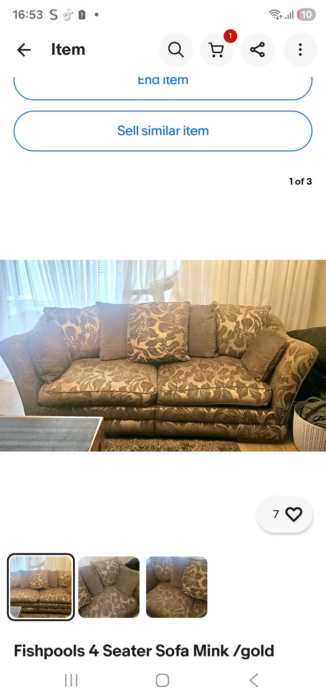 The sofa and chair I bought was as described by the seller - excellent condition. Delivery was quickly arranged and without any incidents. I was kept well informed of the delivery time on the day. Highly recommended.