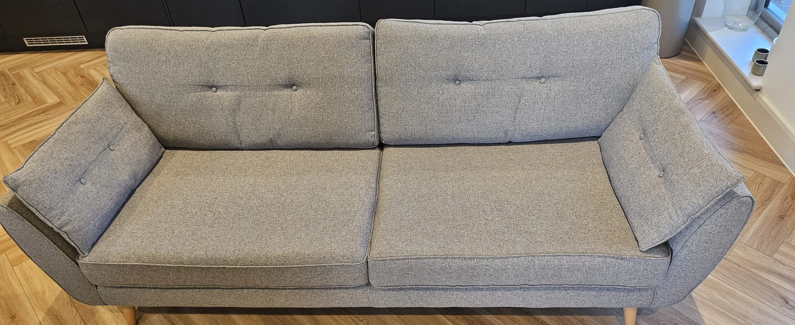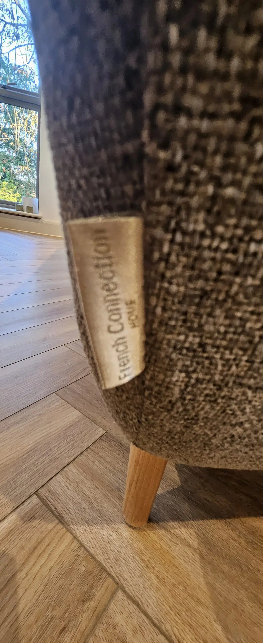French Connection Zinc 3 piece sofa sofa with light feet.