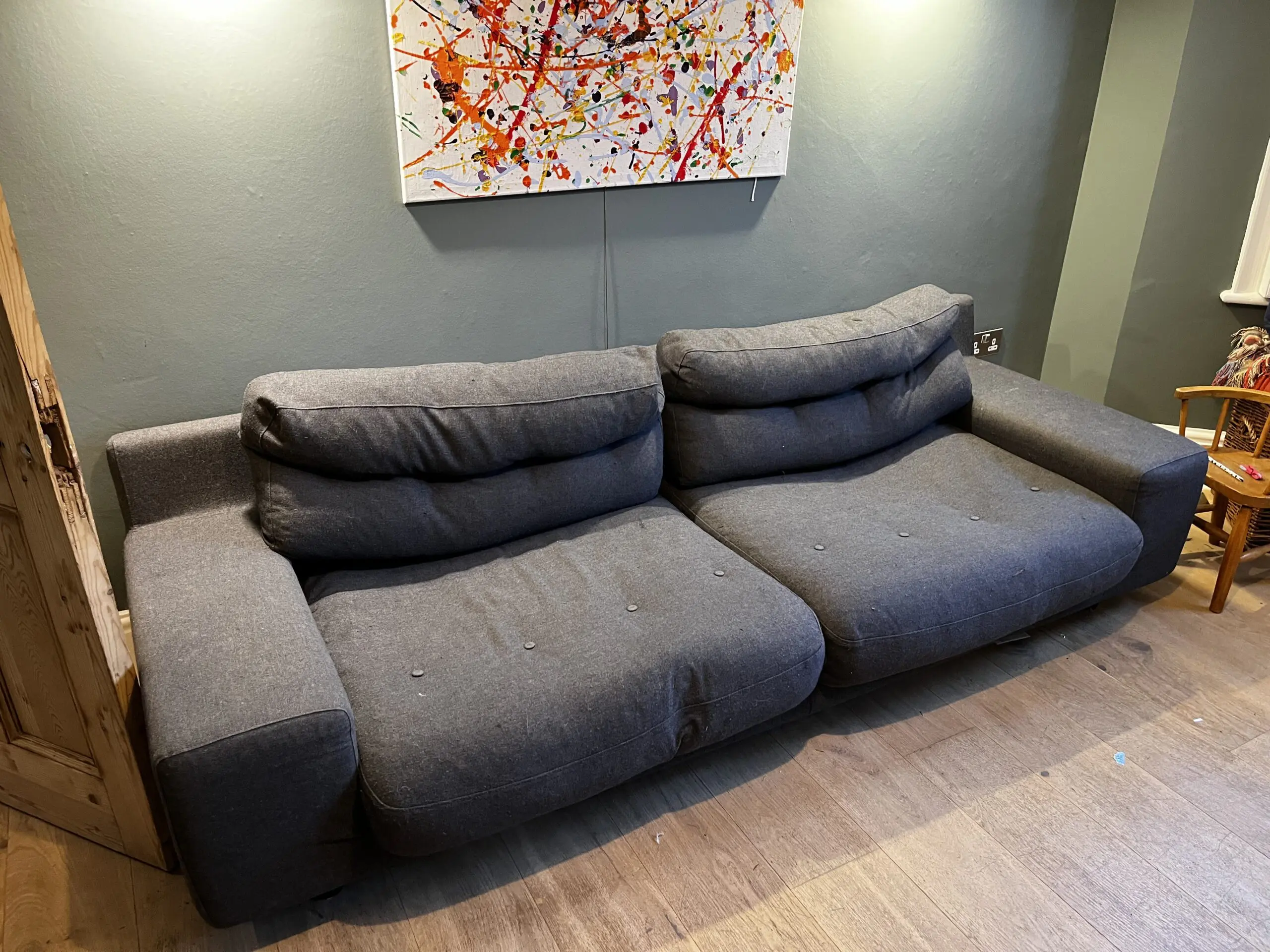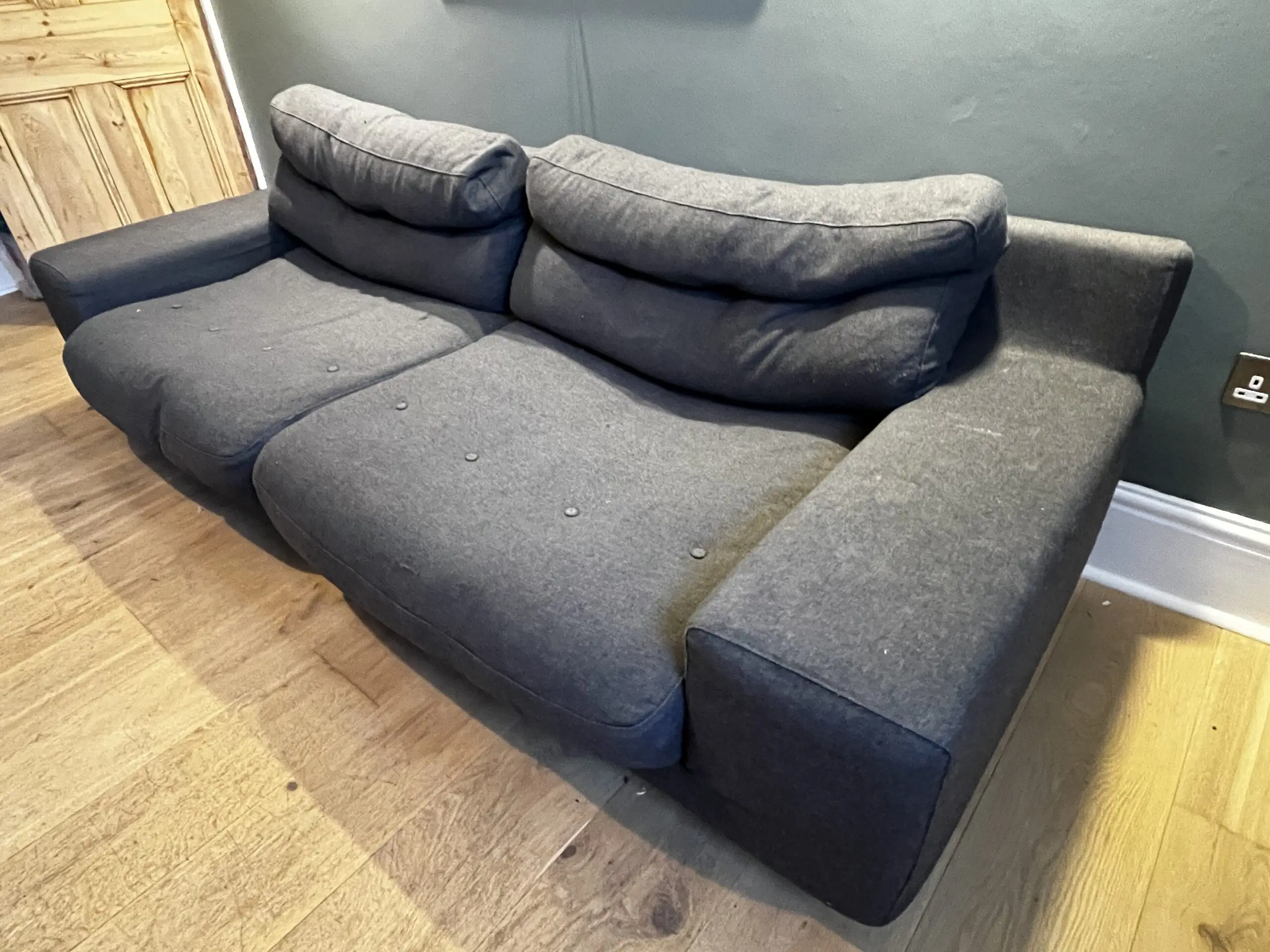 This is a Habitat Hendricks Charcoal Wool 4 seater sofa, purchased in 2017. Please note, the sofa is more like the size of the 4 seater Hendricks sofa that habitat now sell.