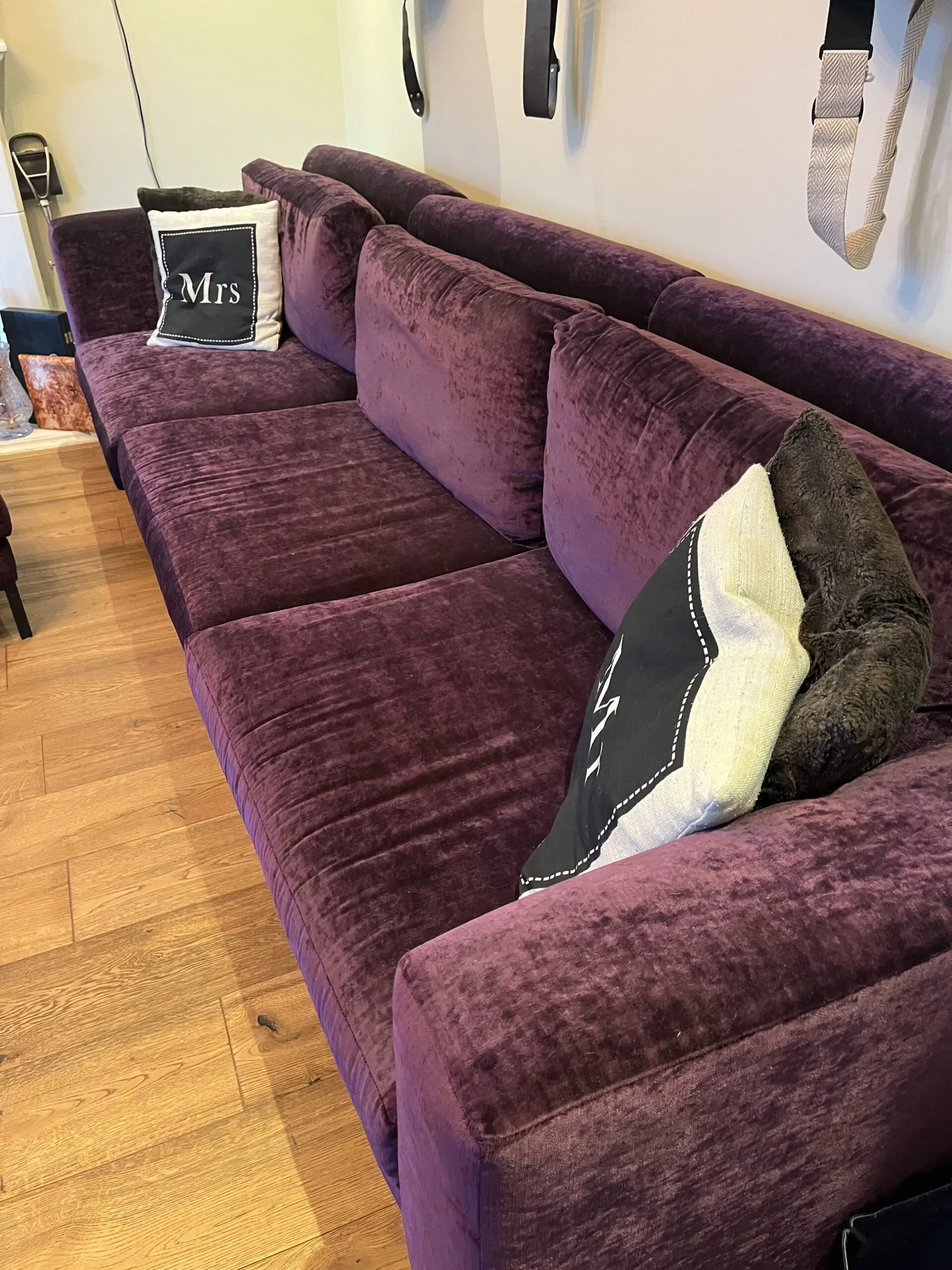 This beautiful hand made purple sofa is a fantastic statement piece of furniture.