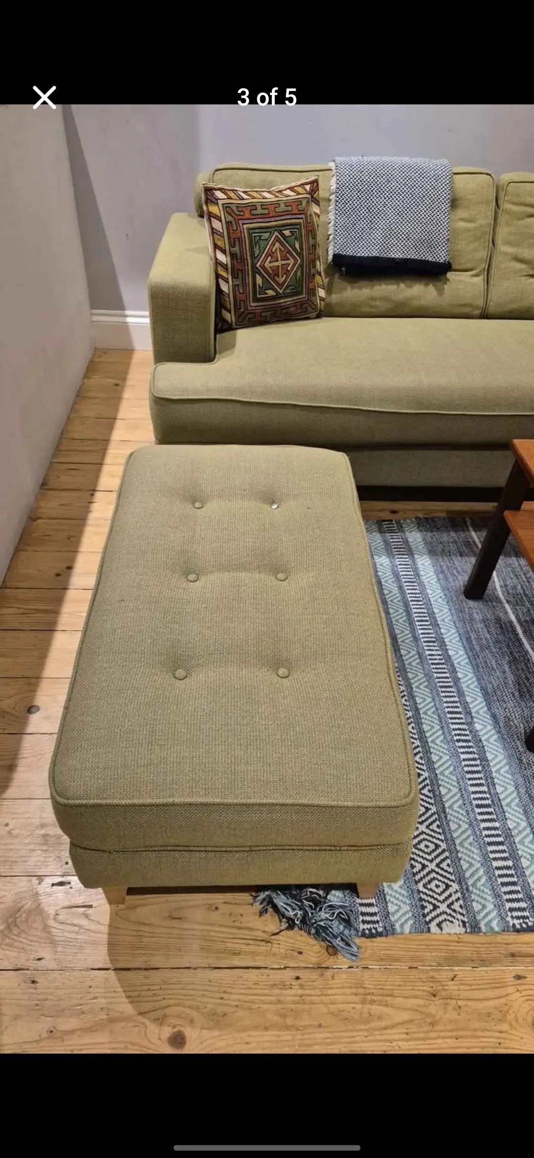 Beautiful green colour in fabric, great for a mid century style home. Selling as we need a sofa bed.