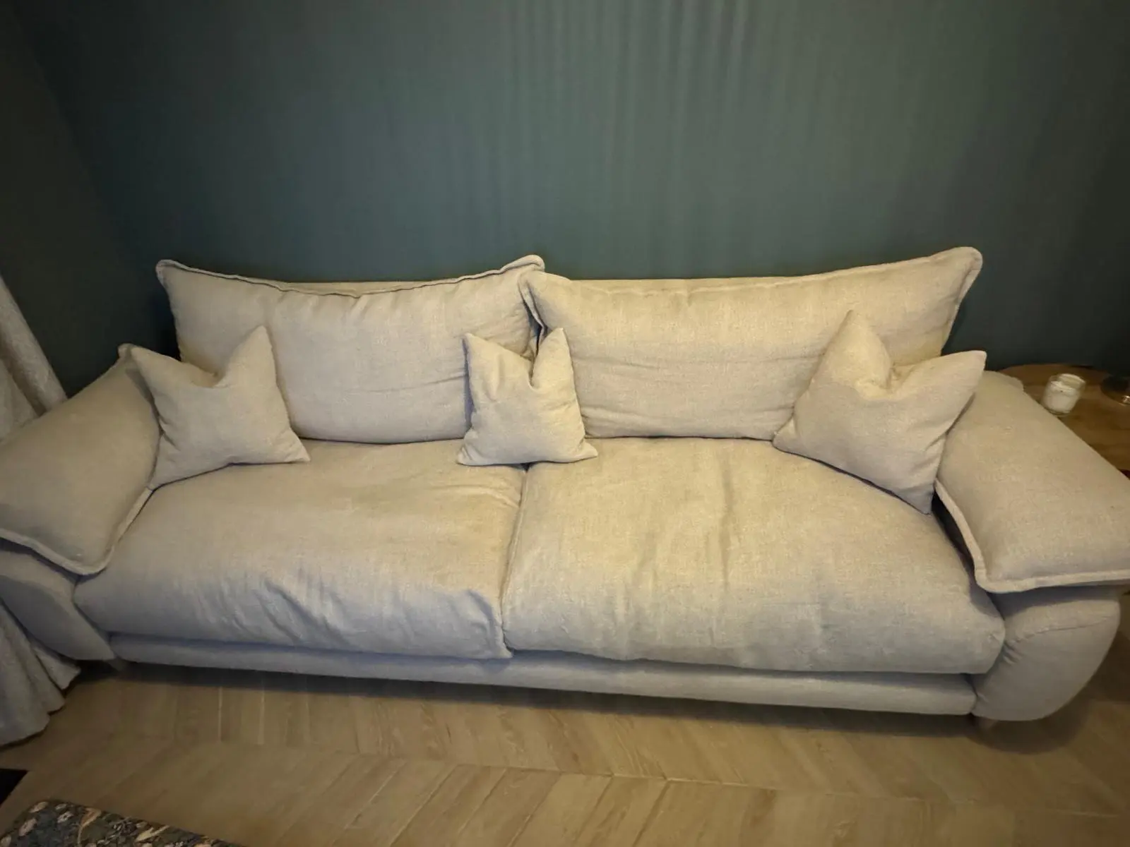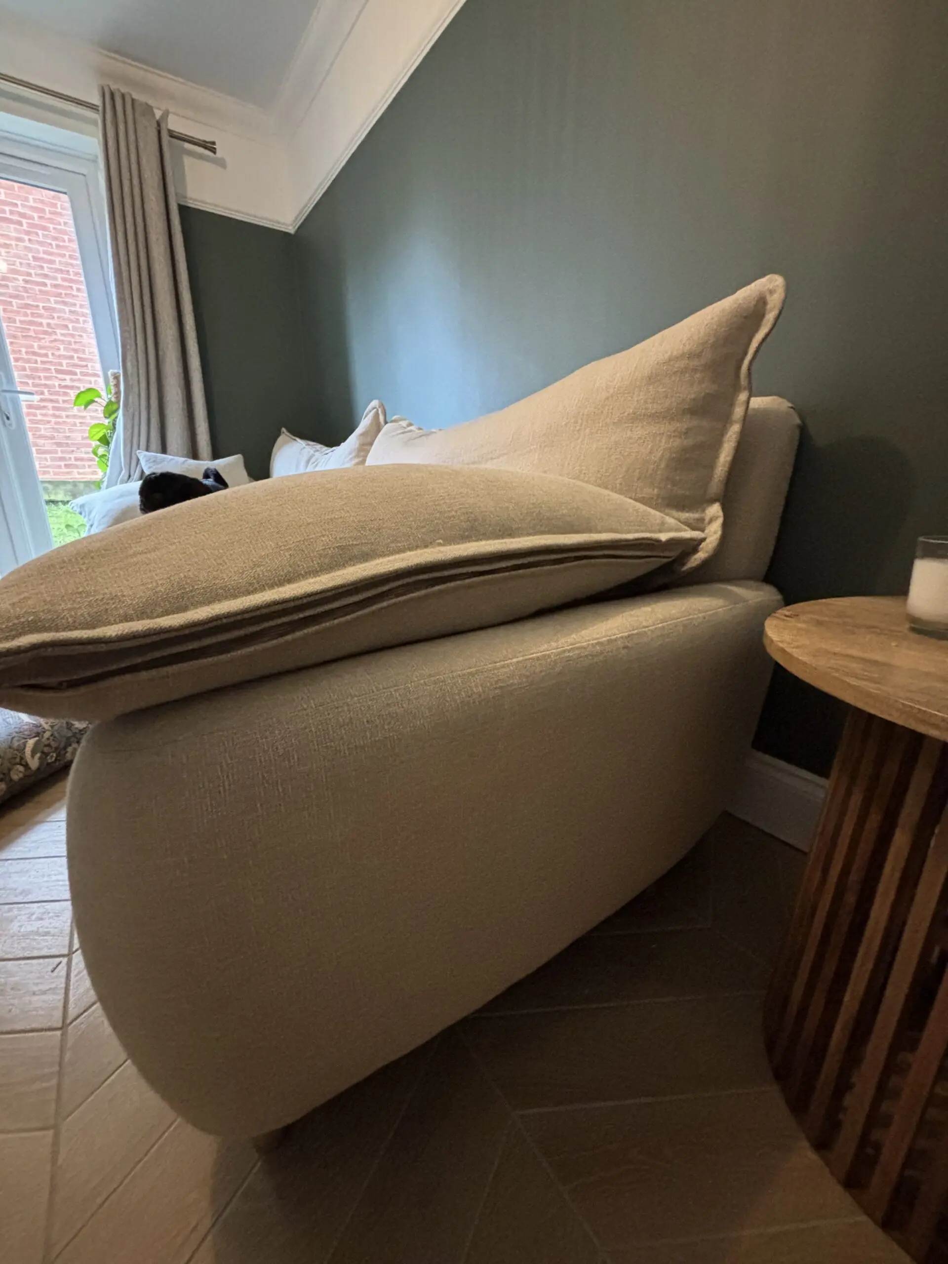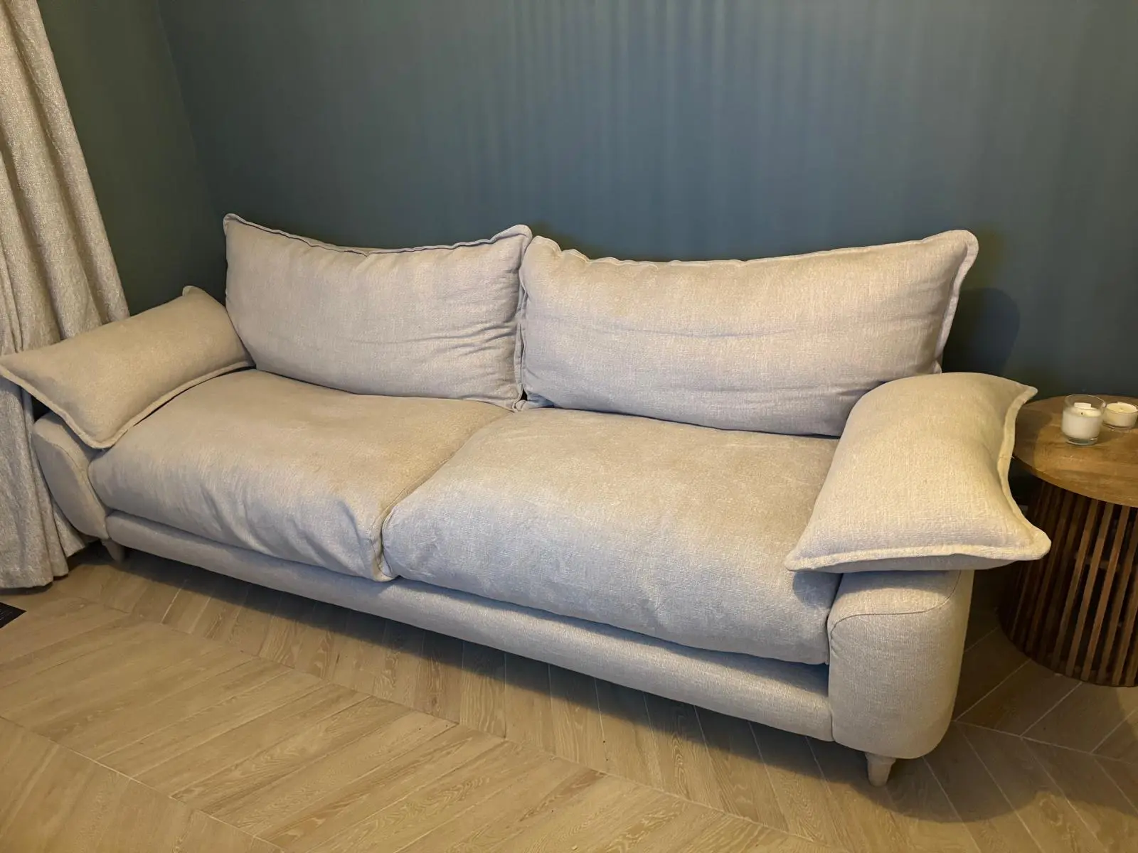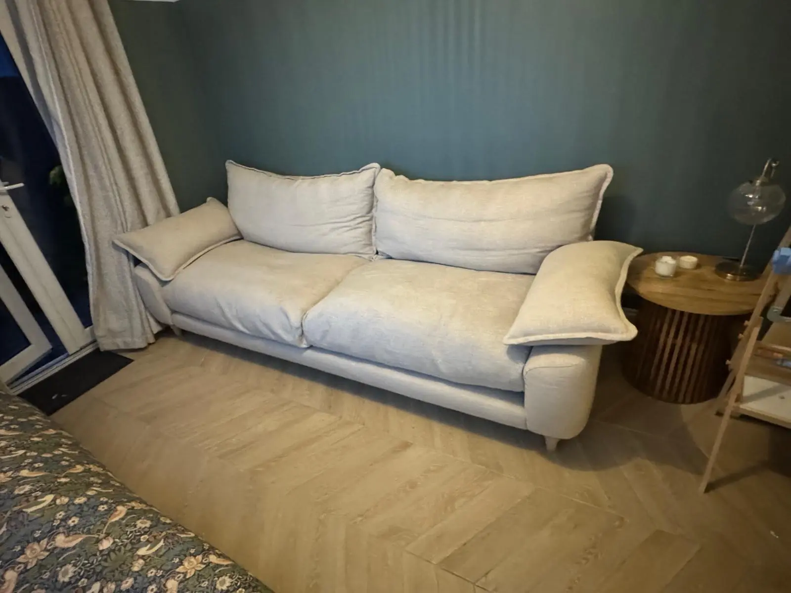 Beautiful Loaf Extra Large Bakewell sofa, just 2 years old and in excellent condition. This is the 4-seater version, upholstered in Breadcrumb (cream) in Loaf’s Clever Linen — a top-quality, spill-resistant linen made with recycled yarn, giving the fabric a soft, relaxed, lived-in tone while remaining practical and durable.