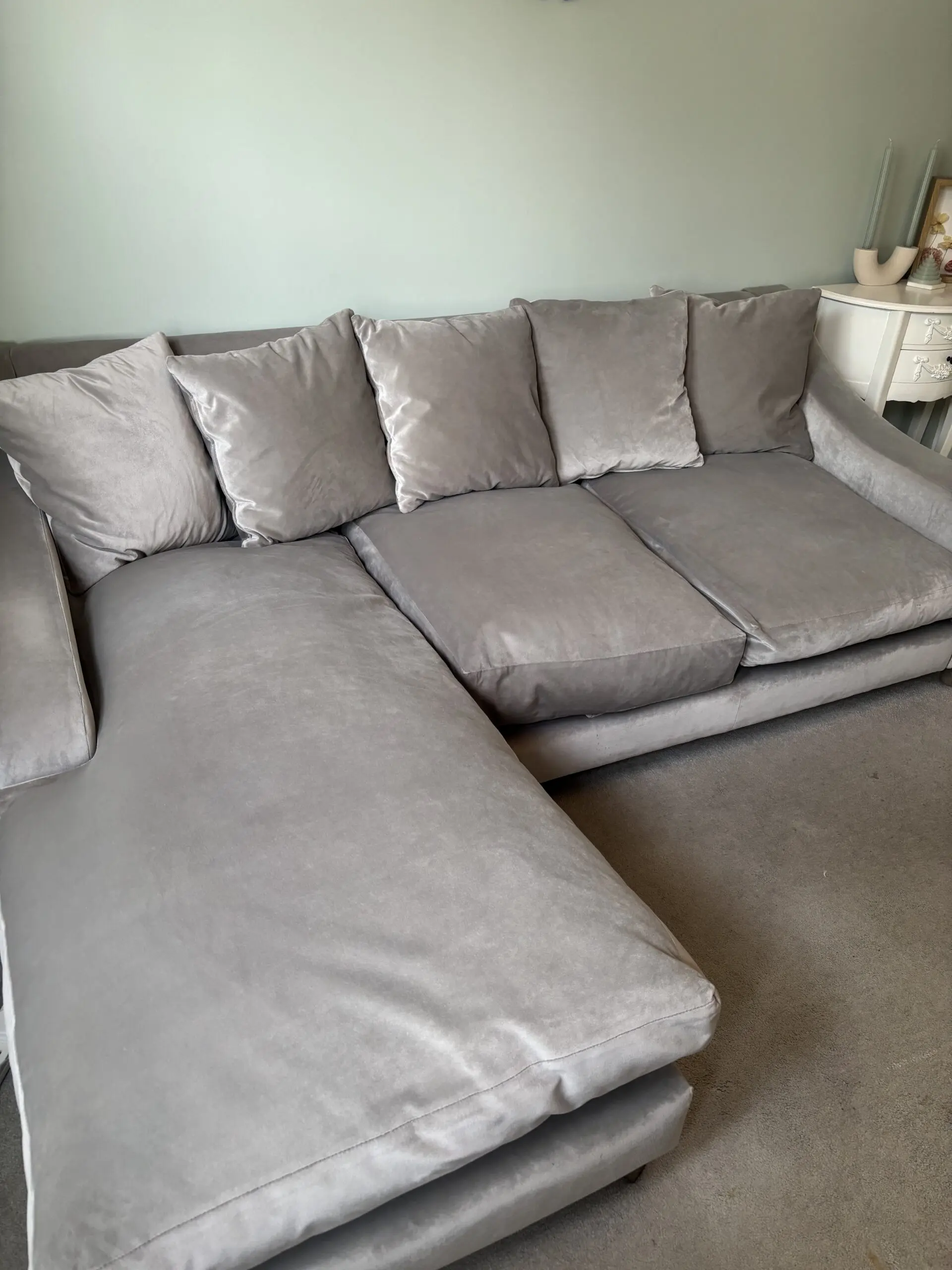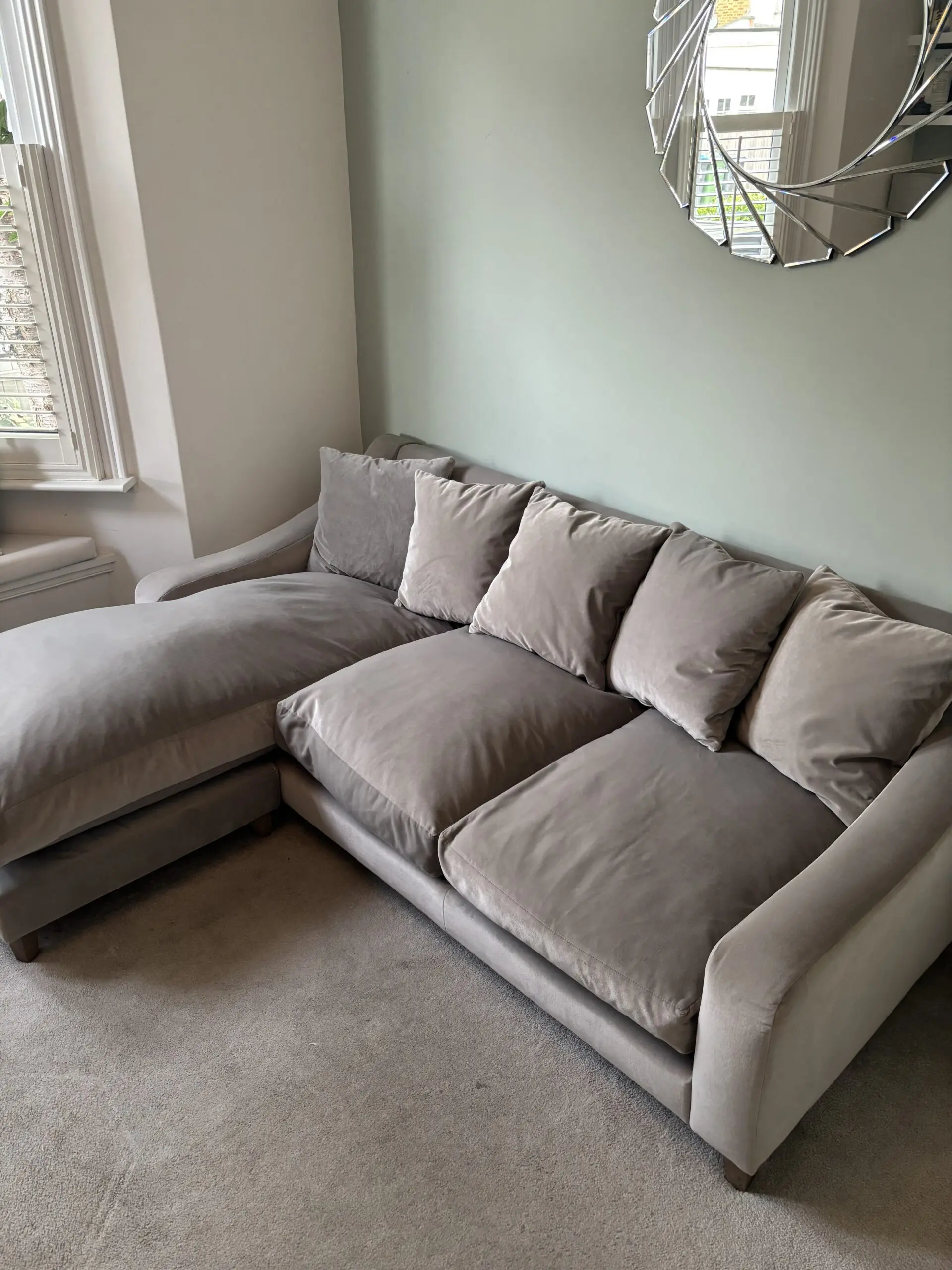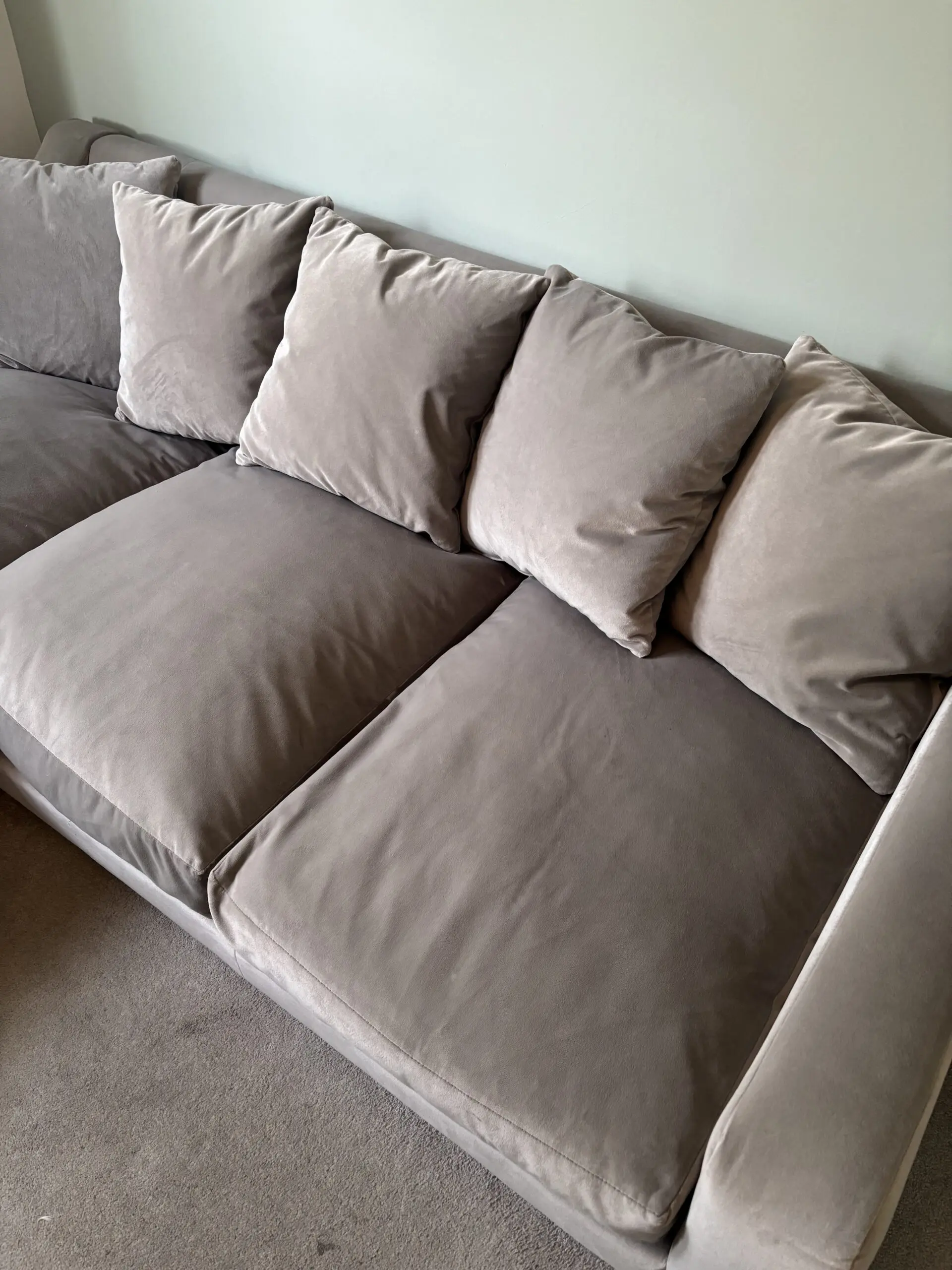 Loaf sofa, in great condition with just a few minor marks from use (pictured). Incredibly comfortable, feather-wrapped foam filling, in mouse grey velvet. Purchased from Loaf in 2019 for £2,440.
