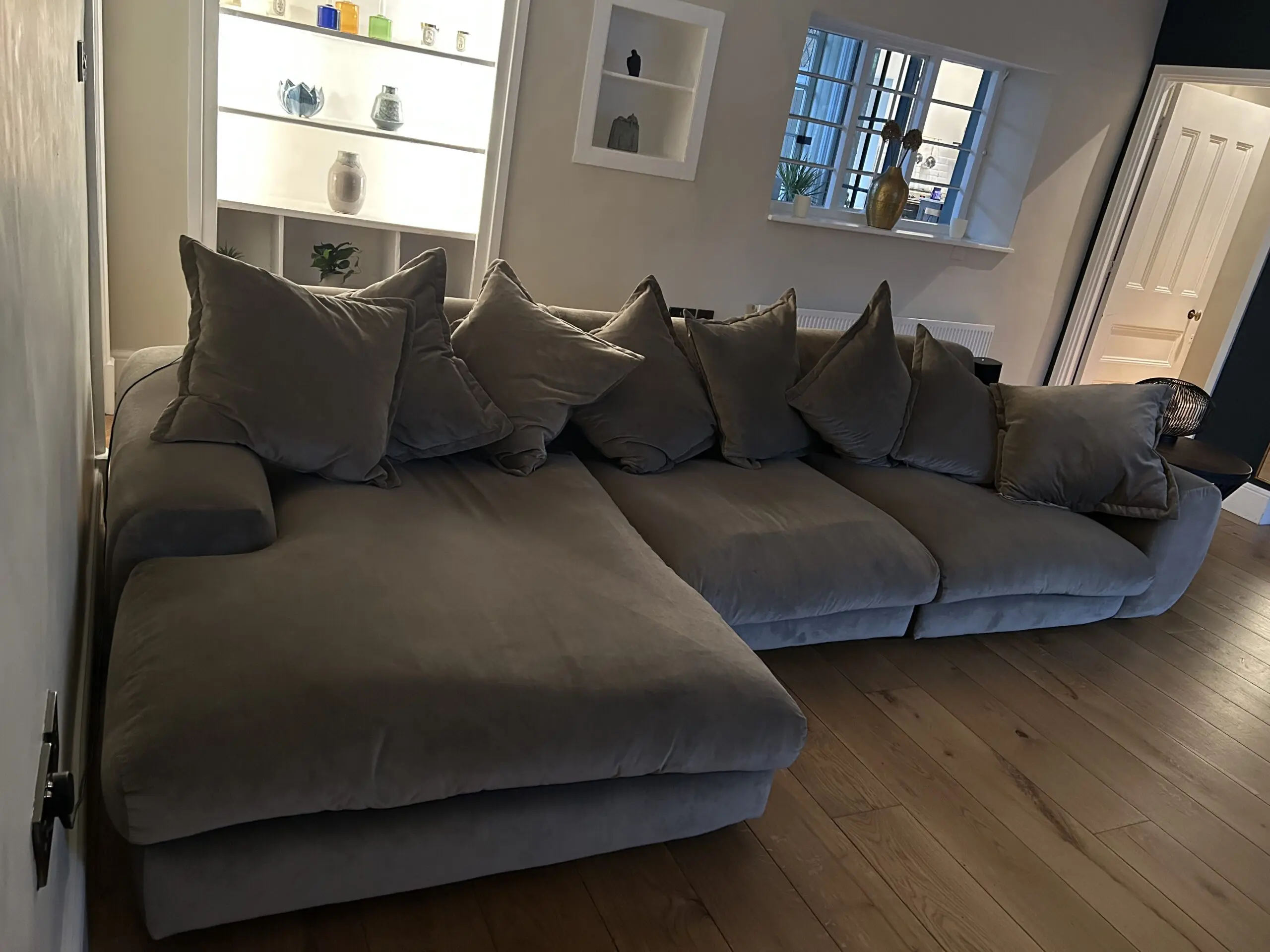 Spacious and stylish 4-seater loaf sofa with chaise which cost over £4000 new, perfect for relaxing because of the deep seating.Kept in excellent condition, this sofa features comfortable cushioning, sturdy construction, and a modern design. The chaise provides extra comfort for lounging, making it ideal for families! Selling due to moving.