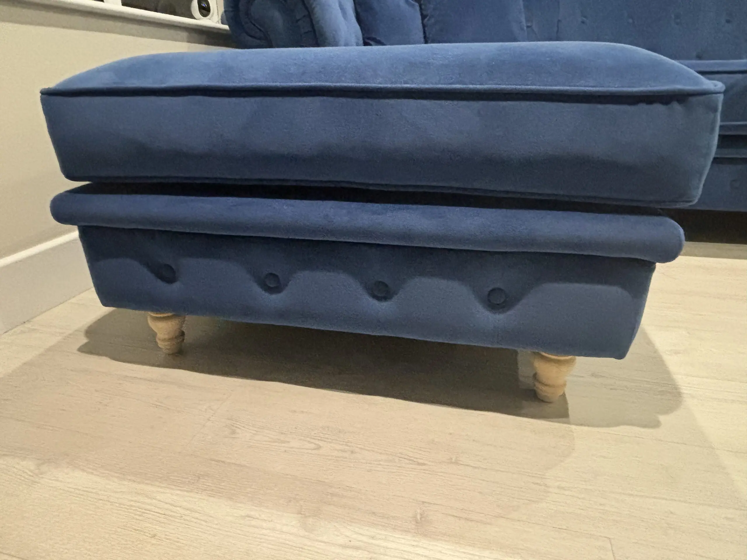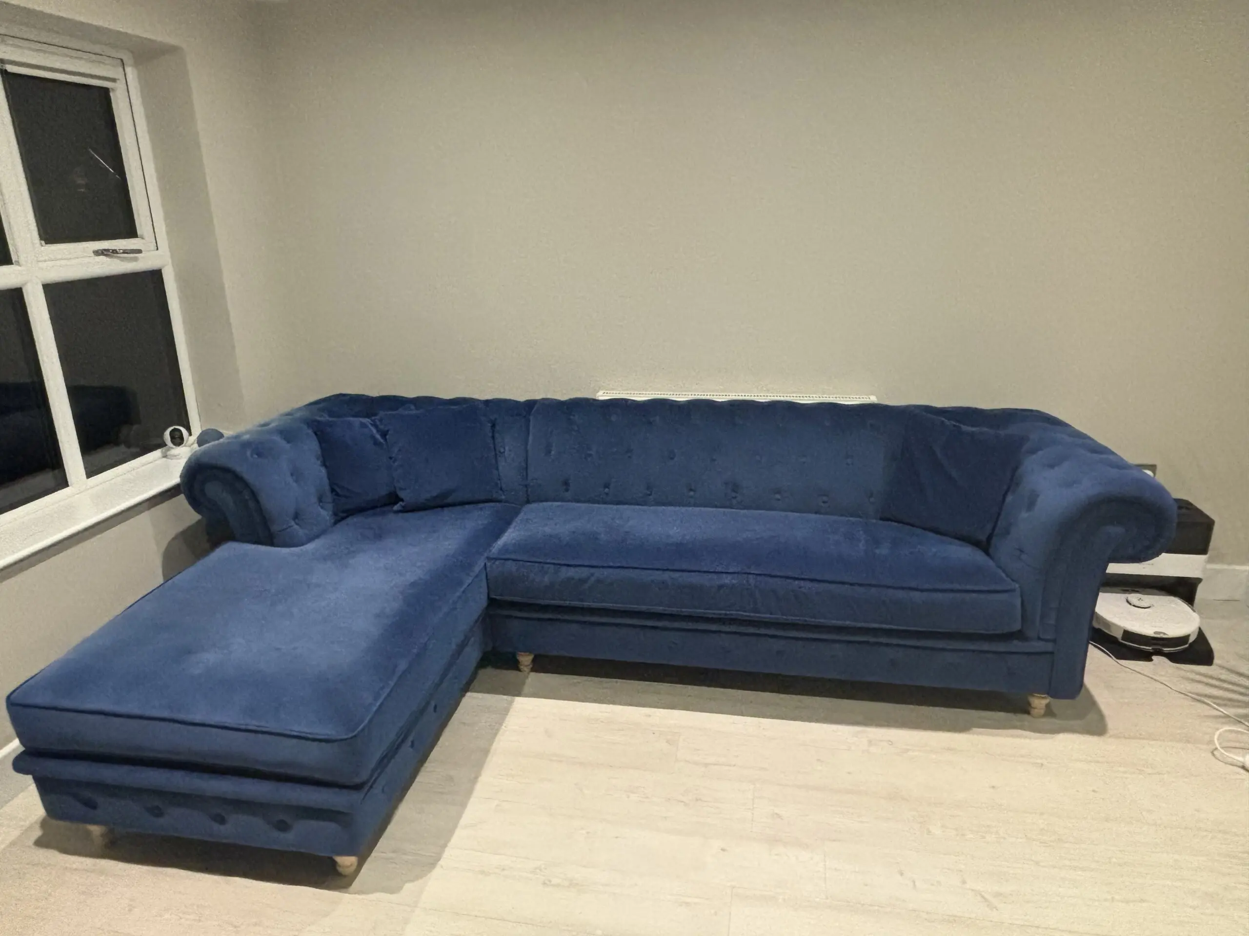 Beautiful and comfortable 4-seater left-hand facing chaise sofa from MADE. This sofa has been lightly used and kept in our snug, so it’s in excellent condition overall. The fabric is still in great shape, with just a small patch of light sun fading on one arm, barely noticeable unless you’re looking for it.