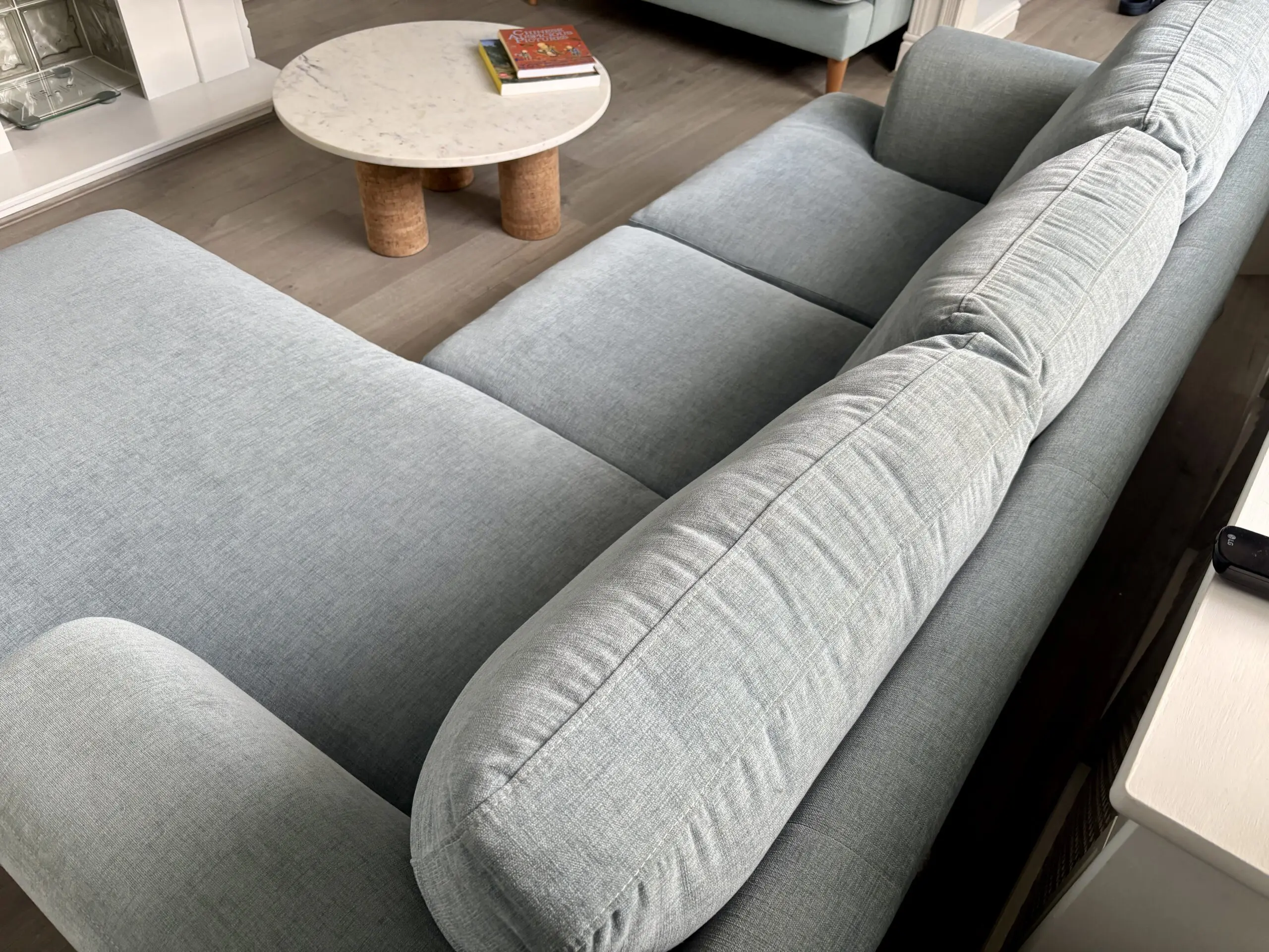 Next Stratus IV right hand corner sofa, 4 seaters. Color: stone blue