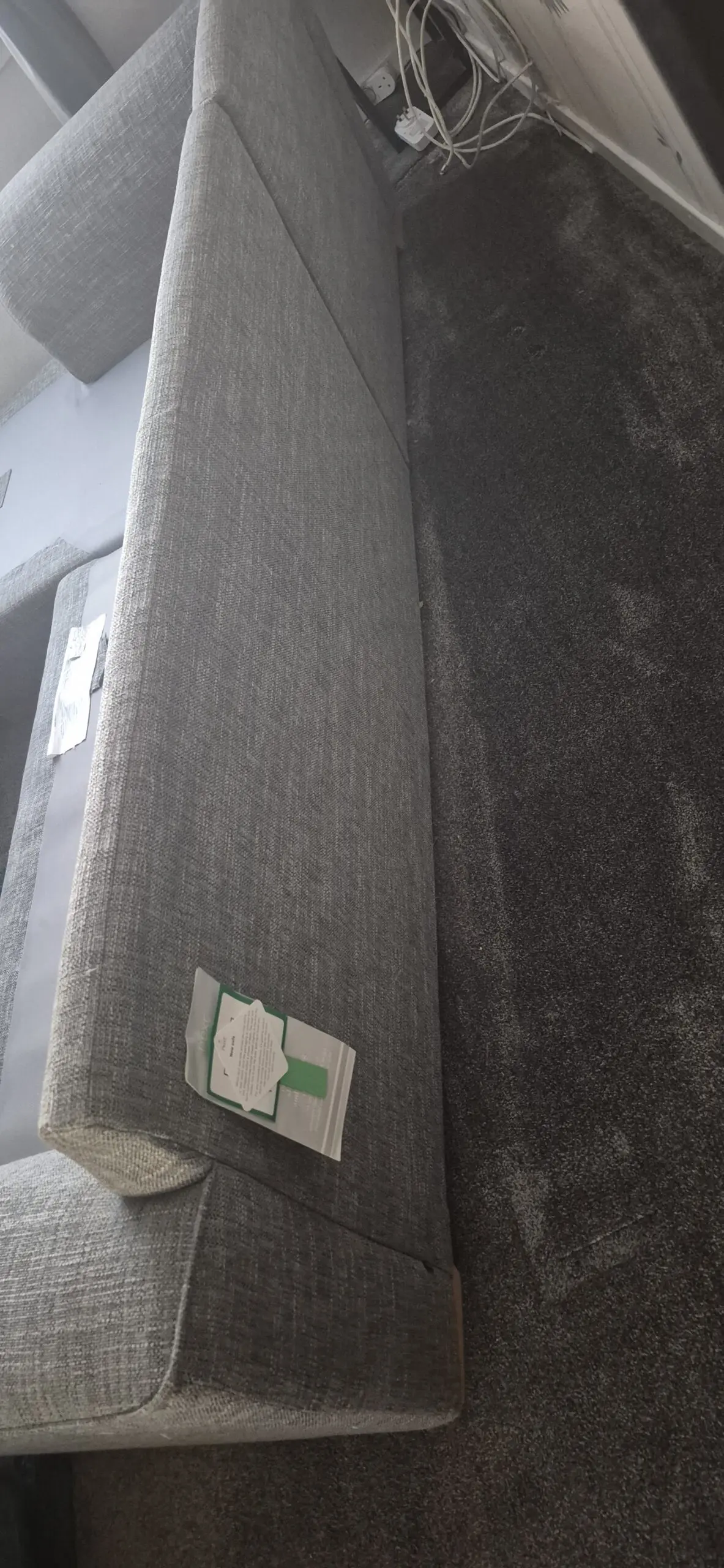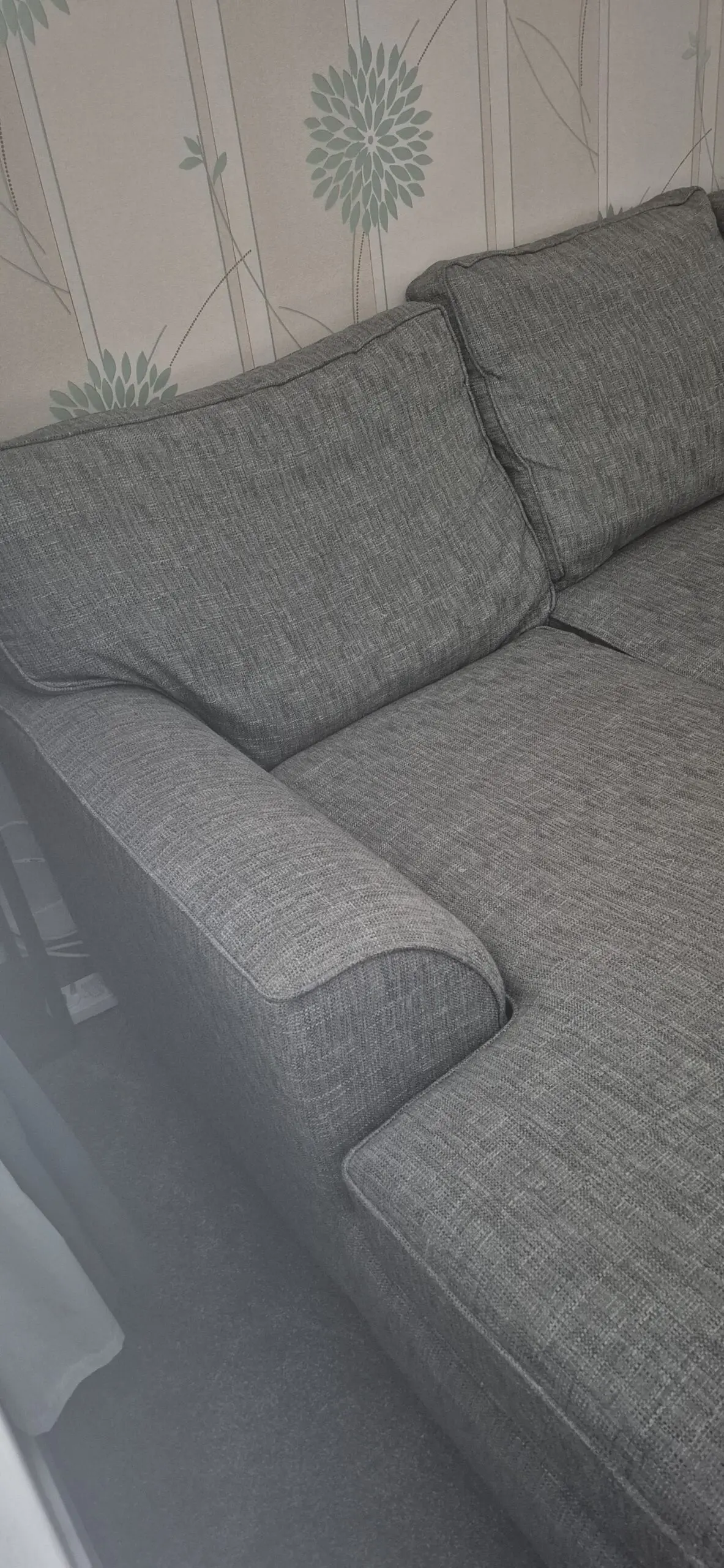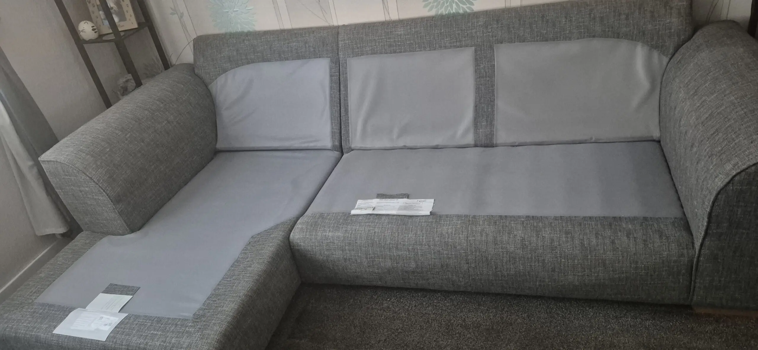 Large left hand chaise sofa in 2 sections, joined by brackets to avoid moving