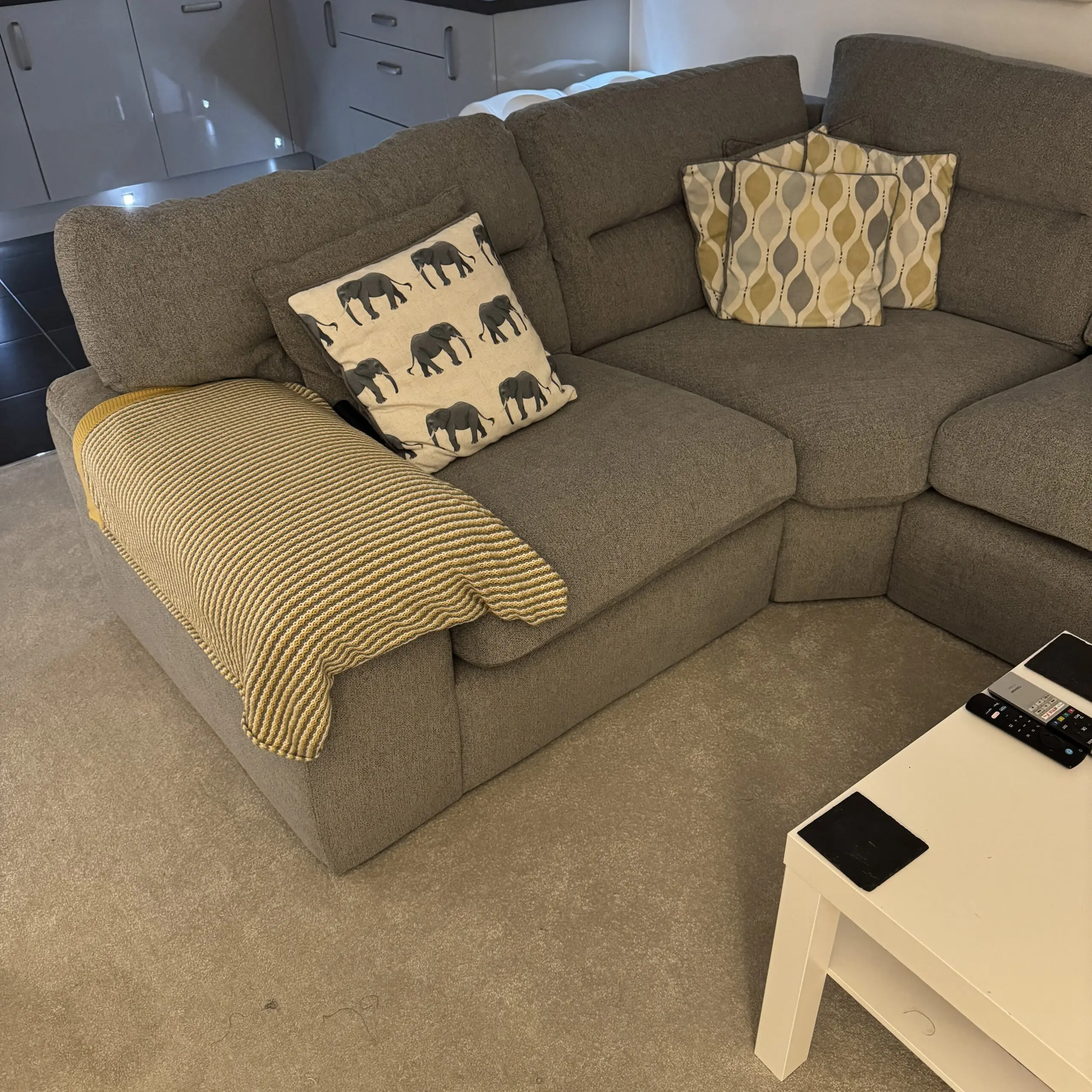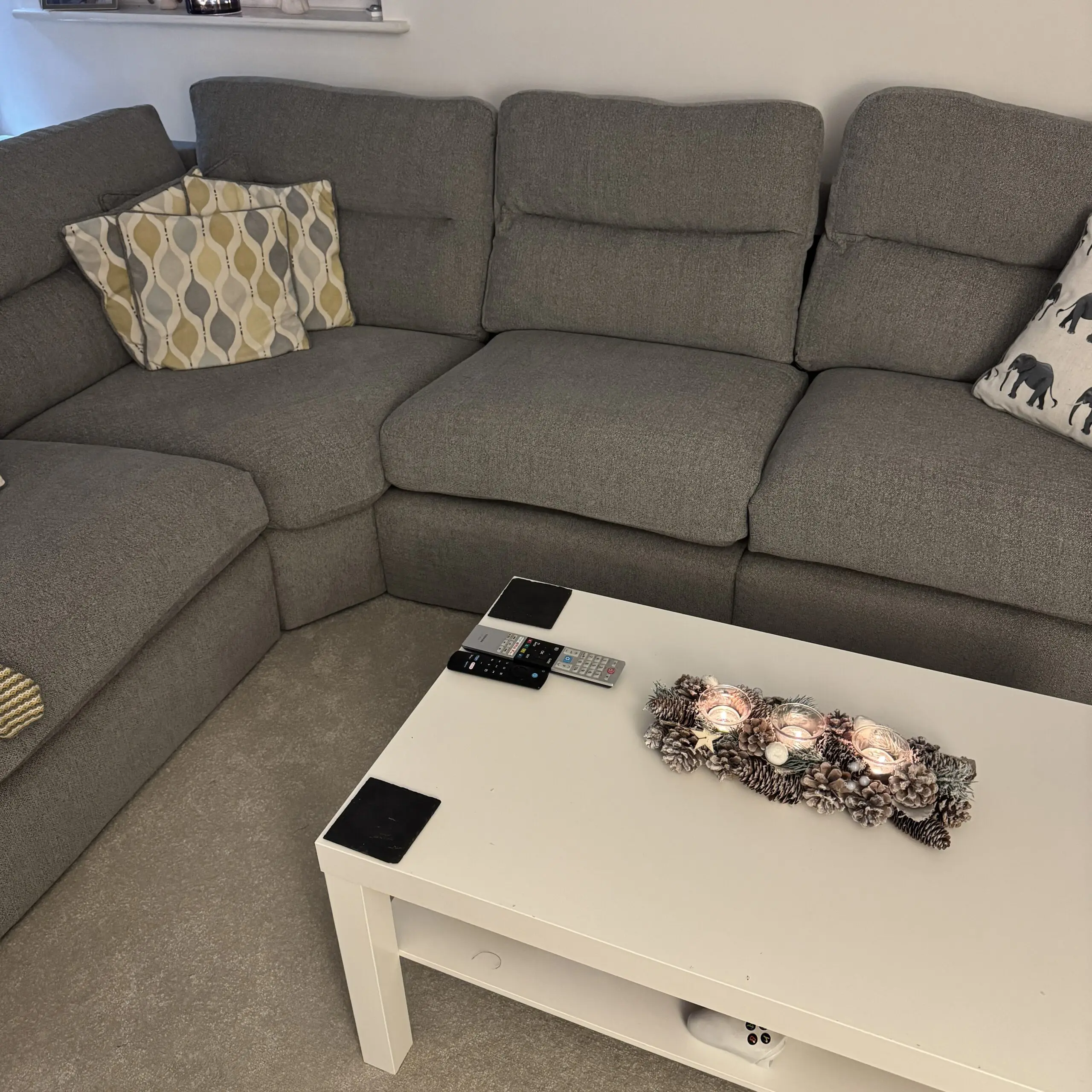 Here we have a 4 seater oak furniture land sofa in grey, very good condition to say it’s 5 years old, regularly cleaned and hoovered and from a pet free home. Slight rip in arm where a knife was dropped on it that was protected by the blanket to prevent it getting any worse, could easily be repaired see pictures attached.