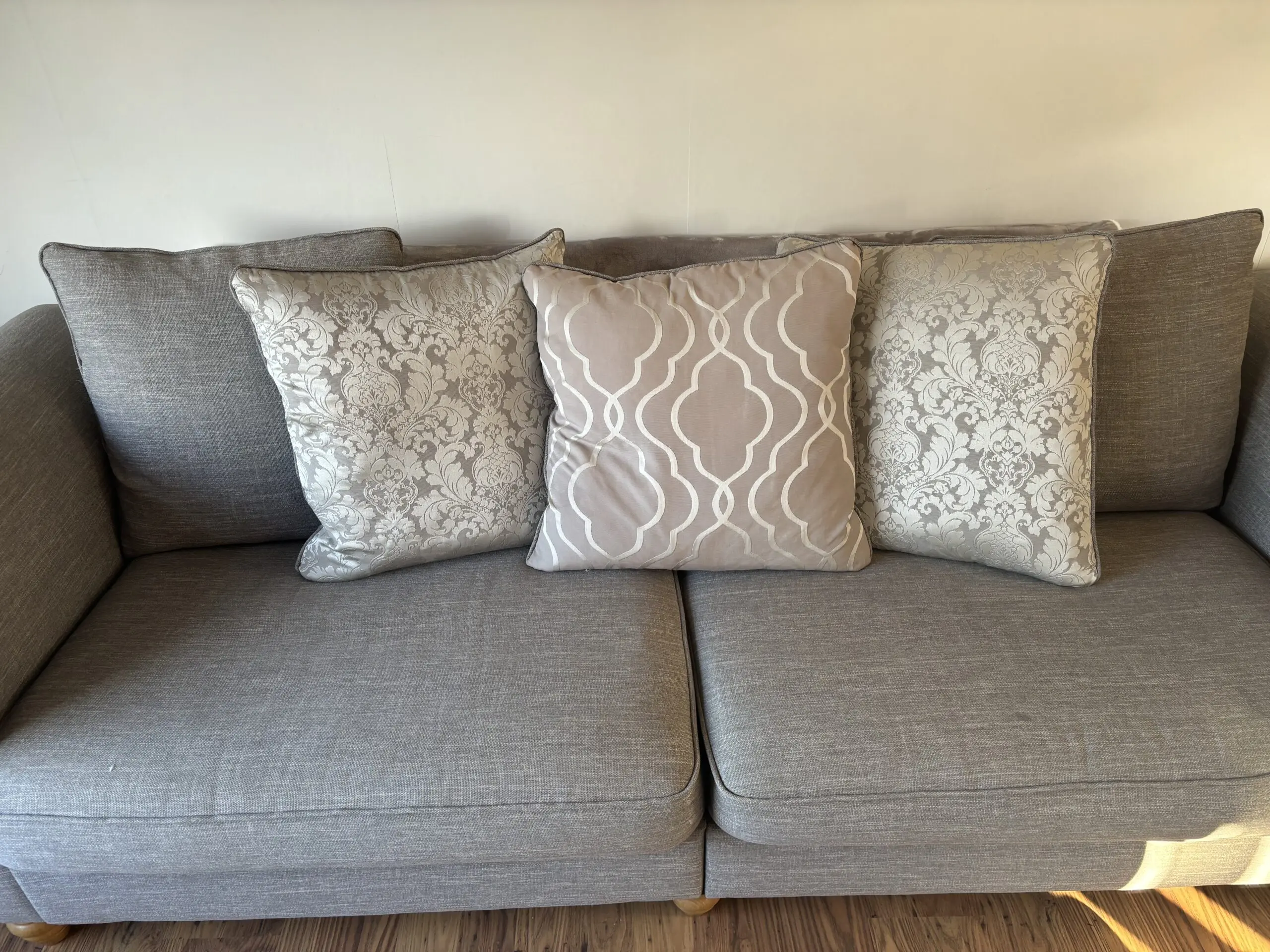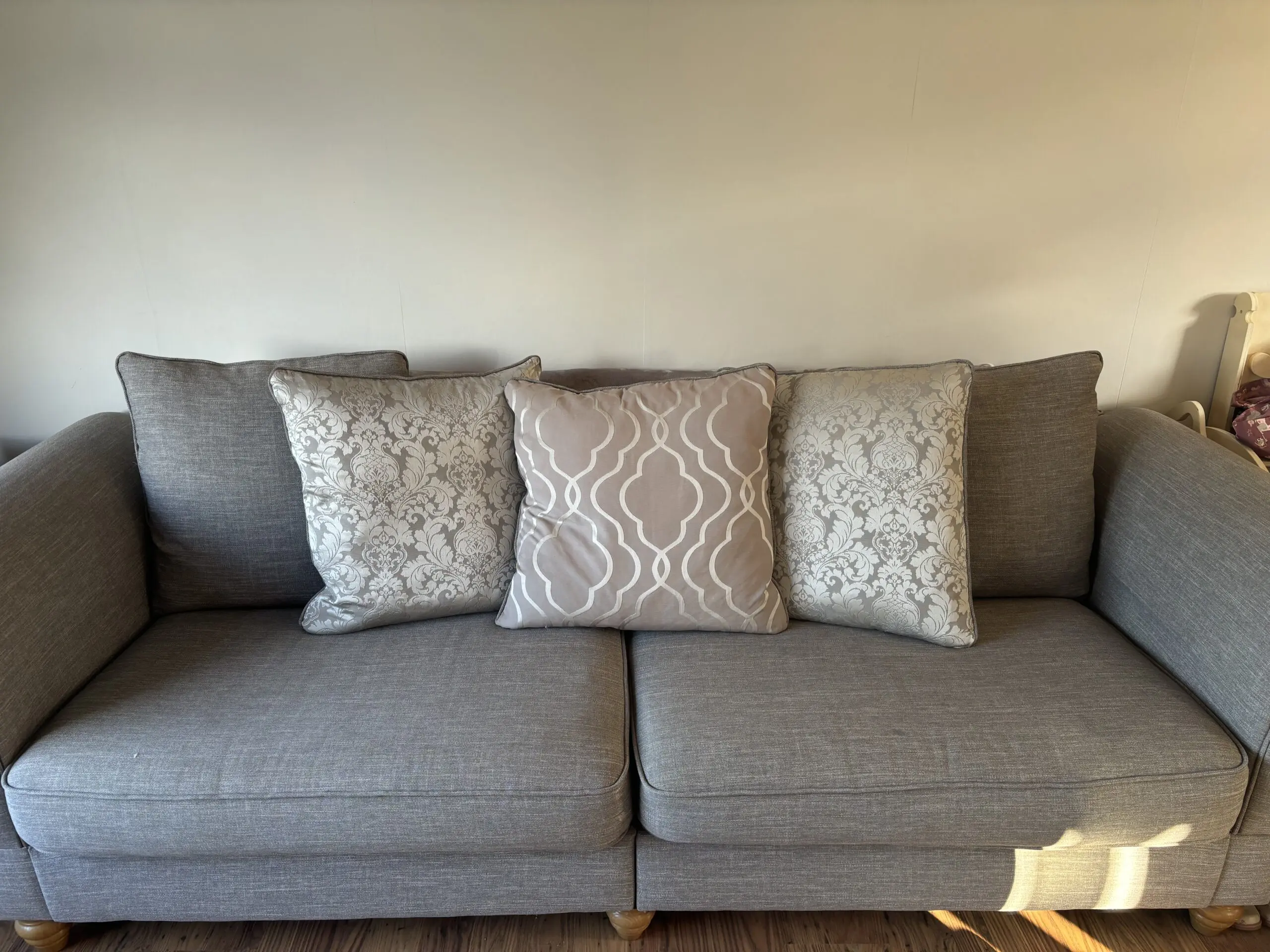 Dorchester 4 Seater Pillow Back Sofa in Civic Smoke with Silver Scatters. 8 years old but still like new. We are only selling the sofa as we are getting a corner sofa donated to use from a family member.