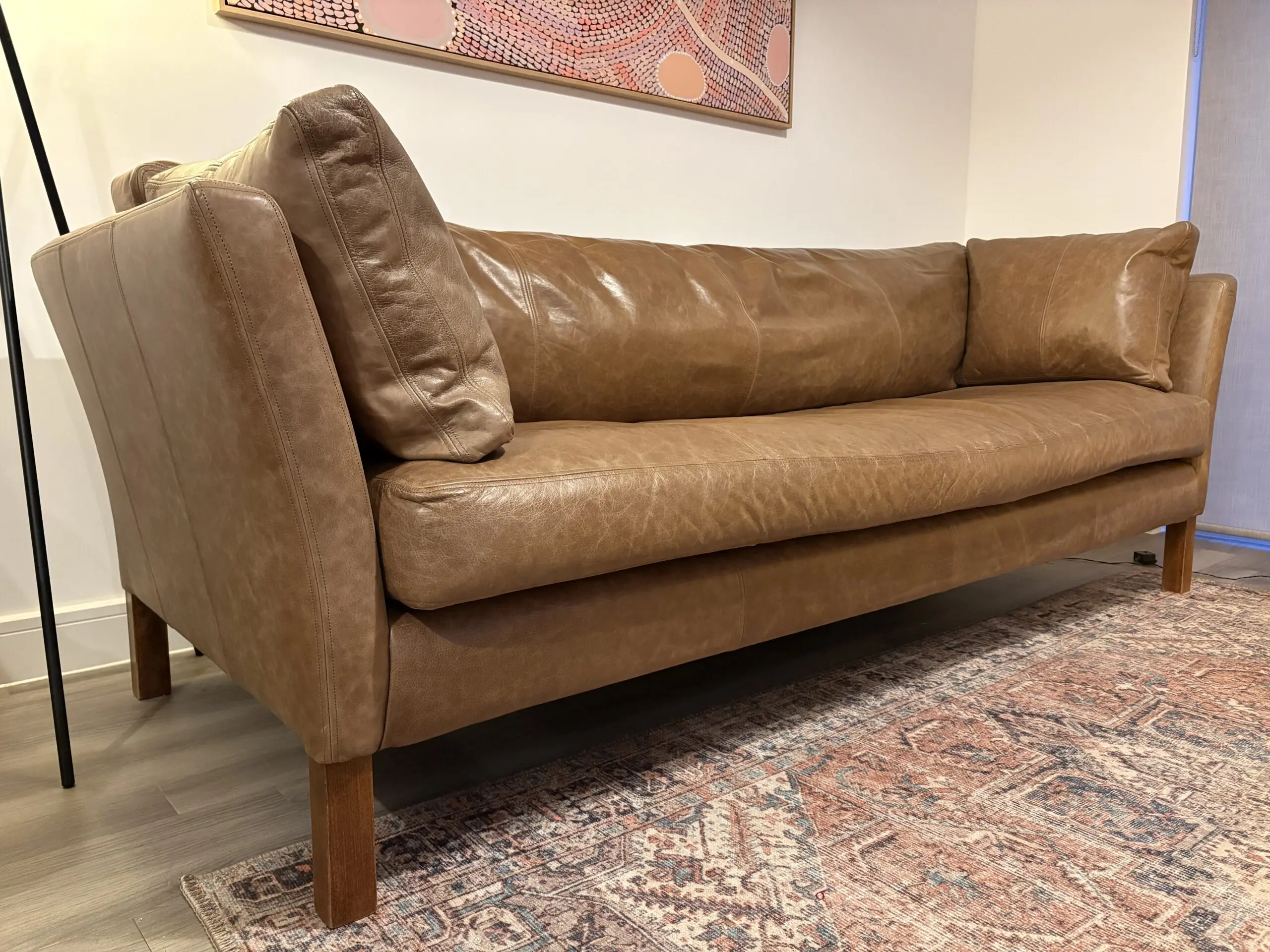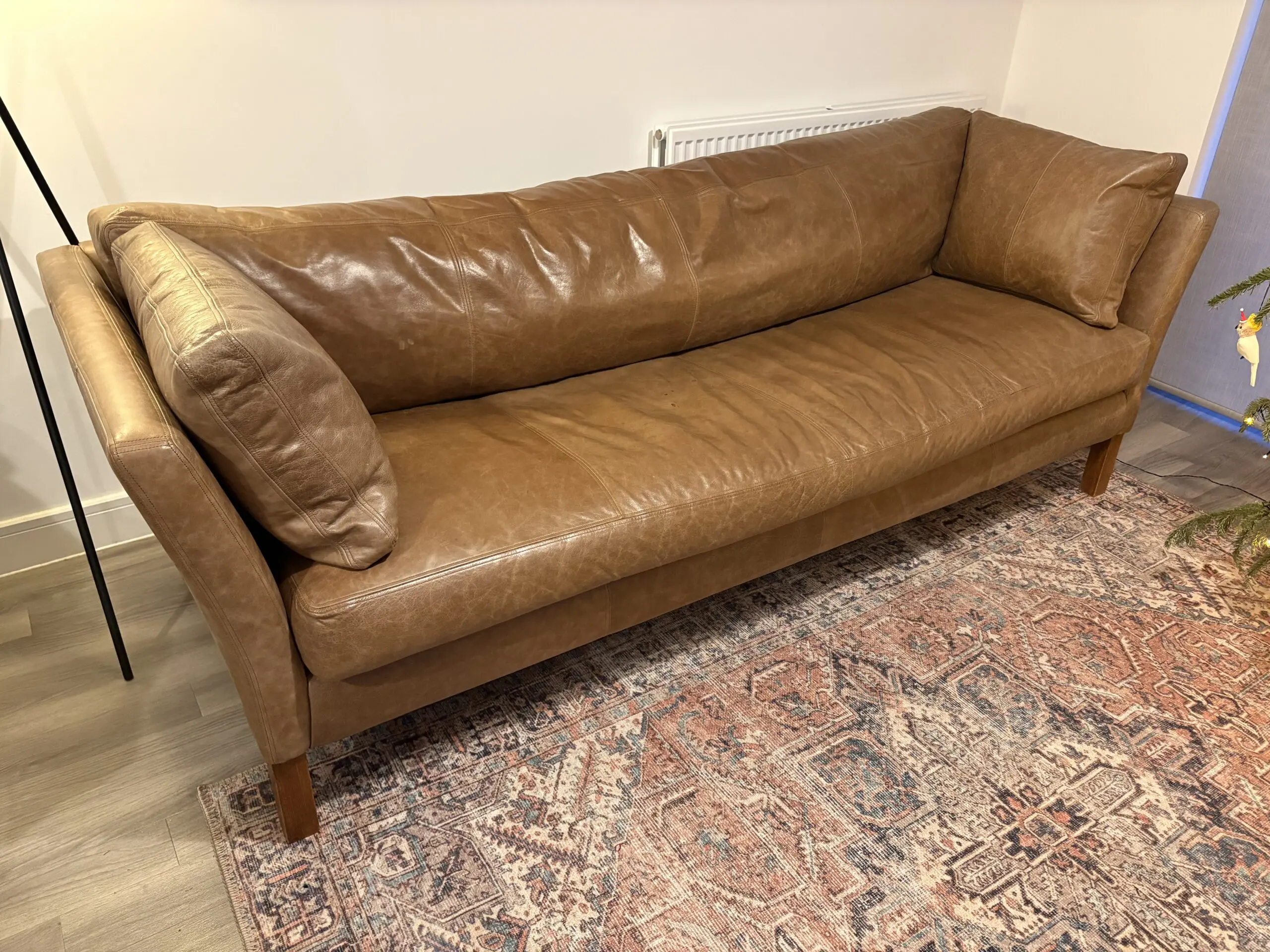 A well-made, British-crafted leather sofa with years of life left, offered at a significant saving compared to buying new.