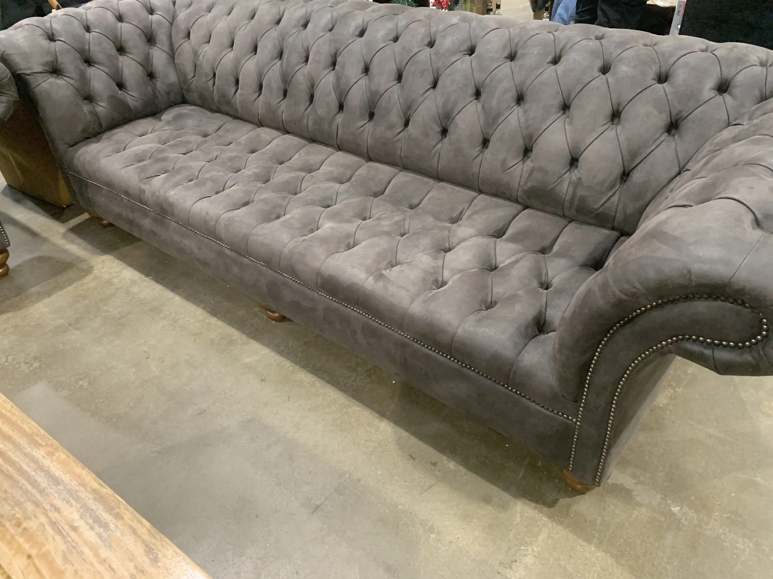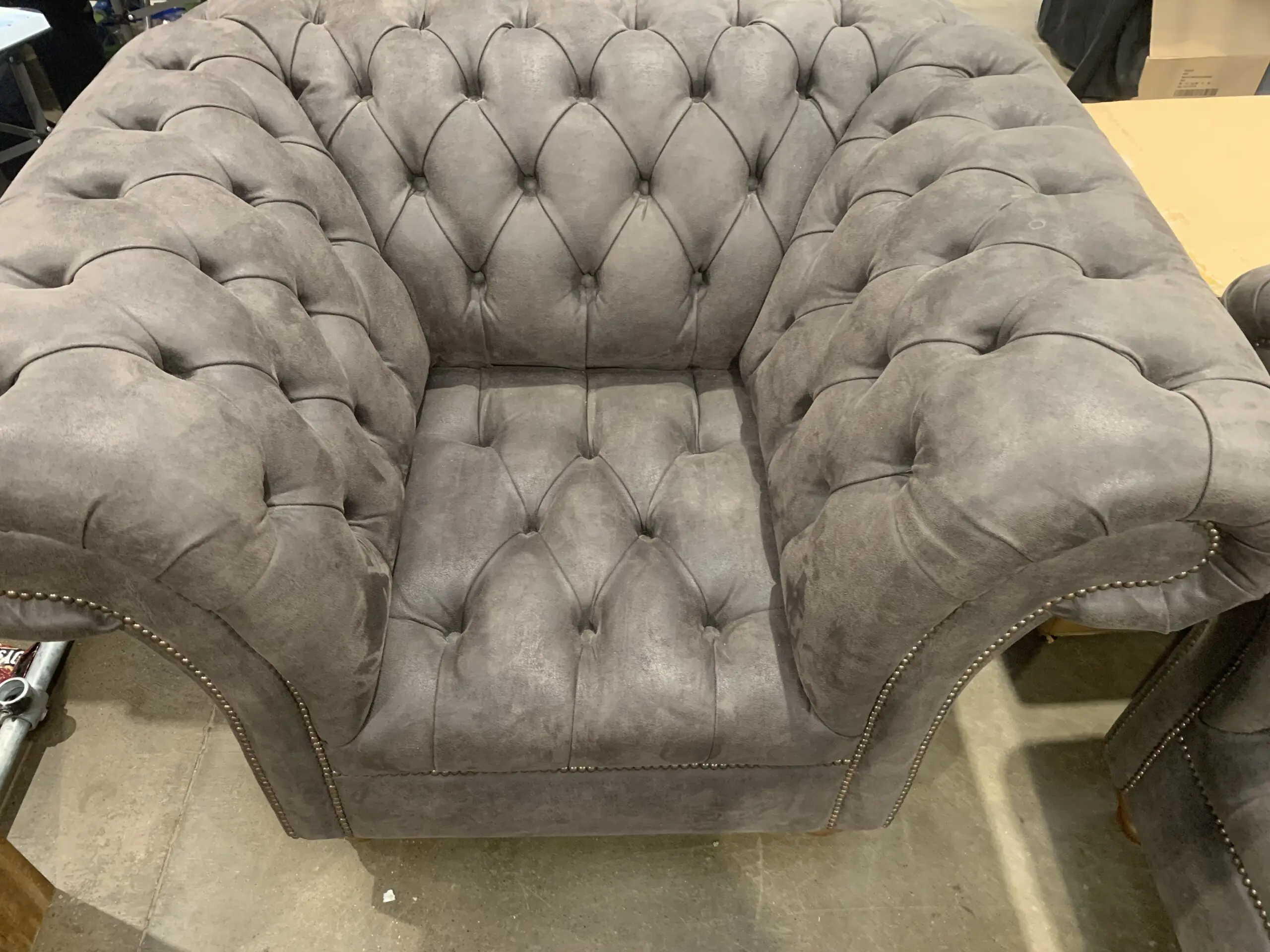 A Beautiful Hand Made Beech Frame Suede Leather 4 Seater Sofa And Single Chair Button Seat These Pieces Have Had Very Little Use Only Selling Because Of House Move Forces Sale Cost Over £4000