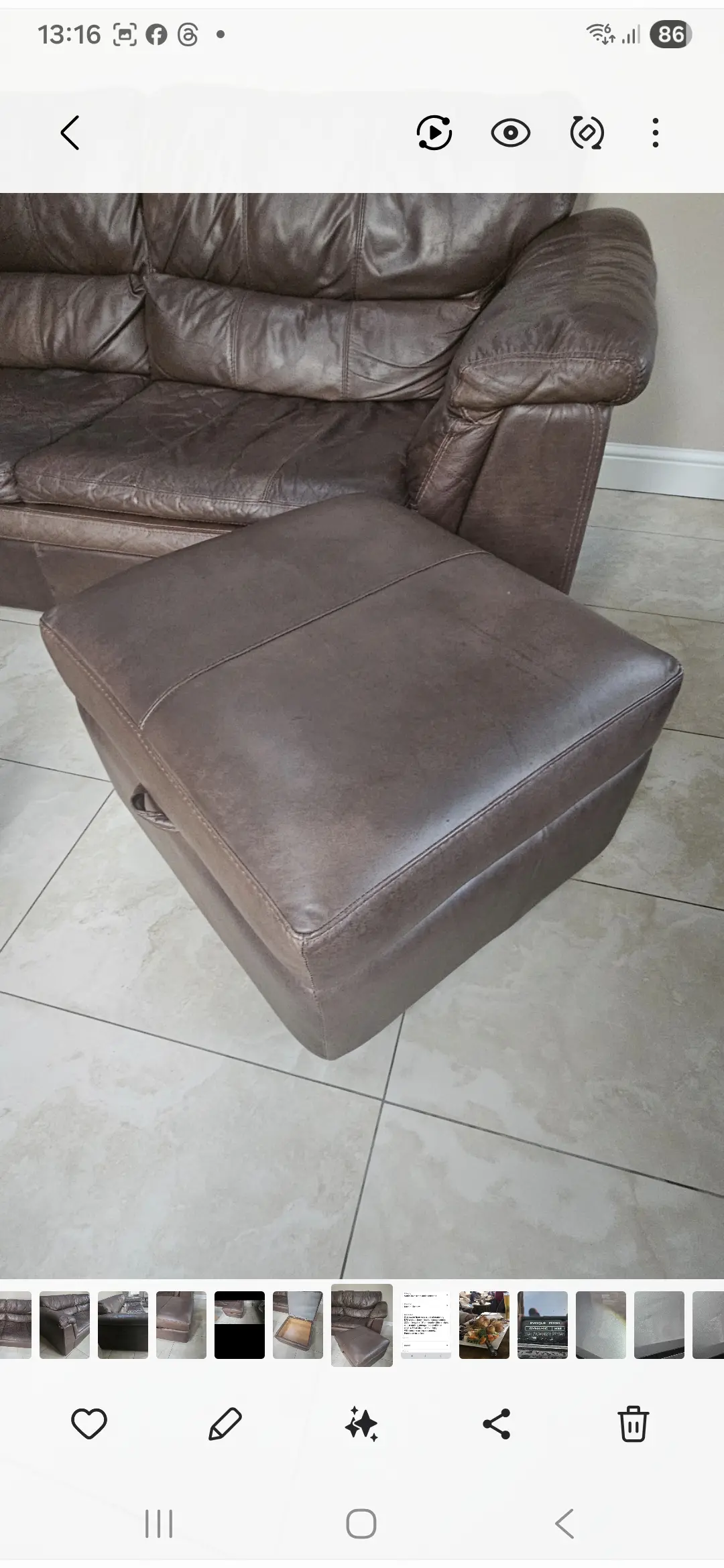 A matching pair DFS antique brown leather settees with match footstool