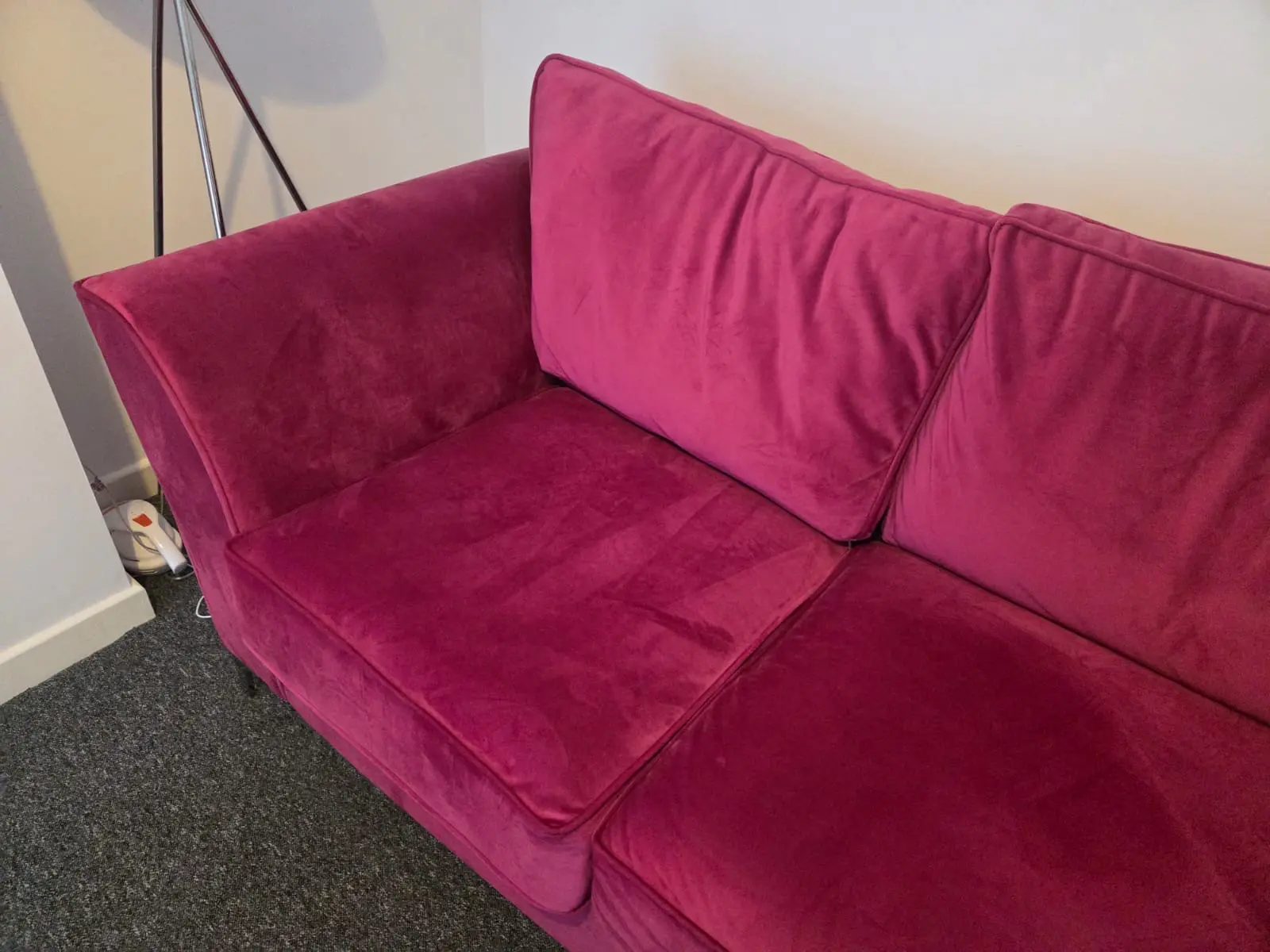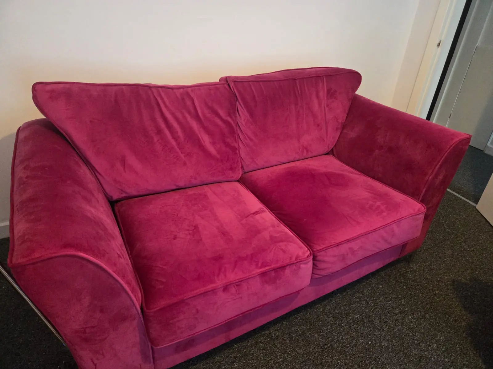 Beautiful pink sofas , very comfortable, not really used , no marks , pet free home , used for approx 3 months as moving into different house and too big to fit